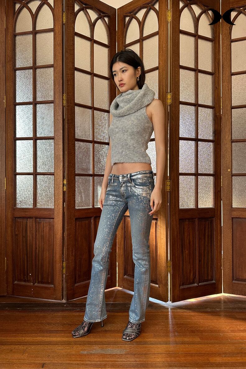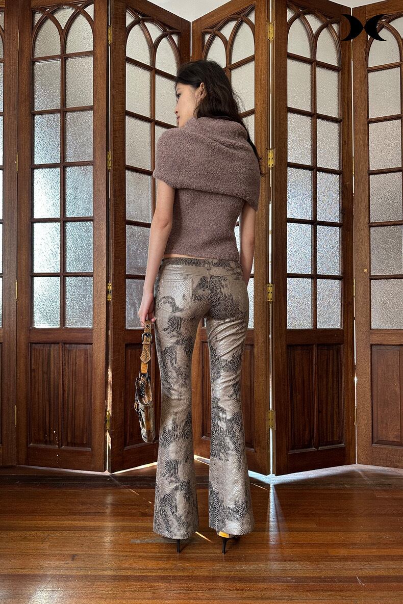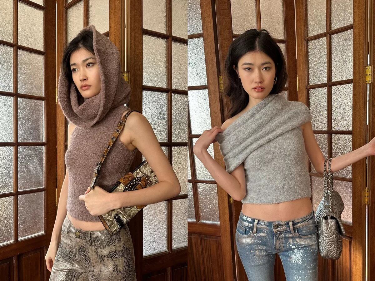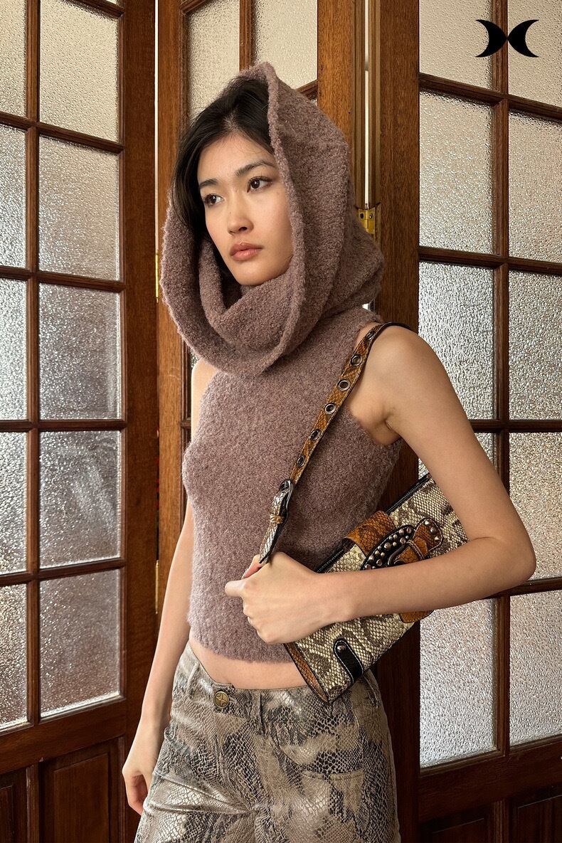 オフショルダー グレー 茶色 ハイネック セーター トップス ブラウス