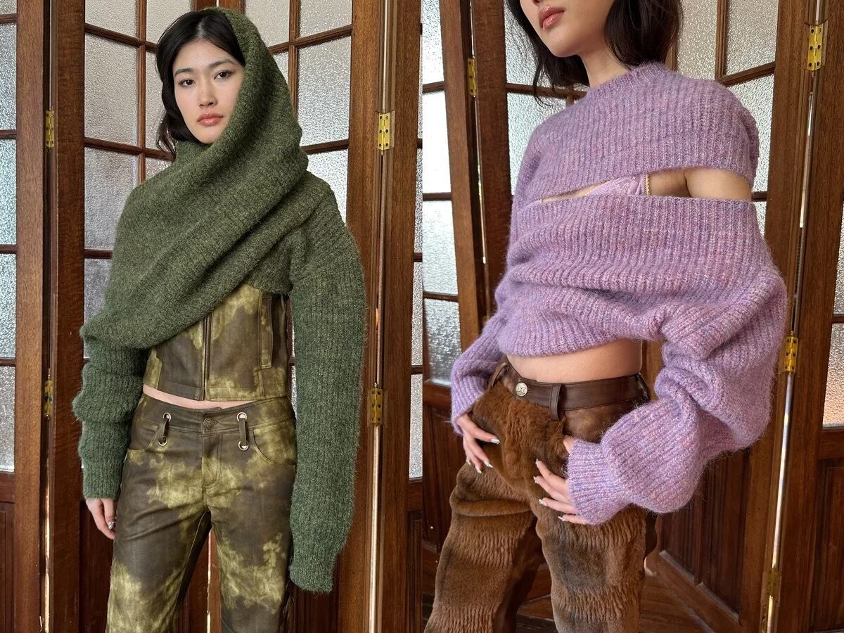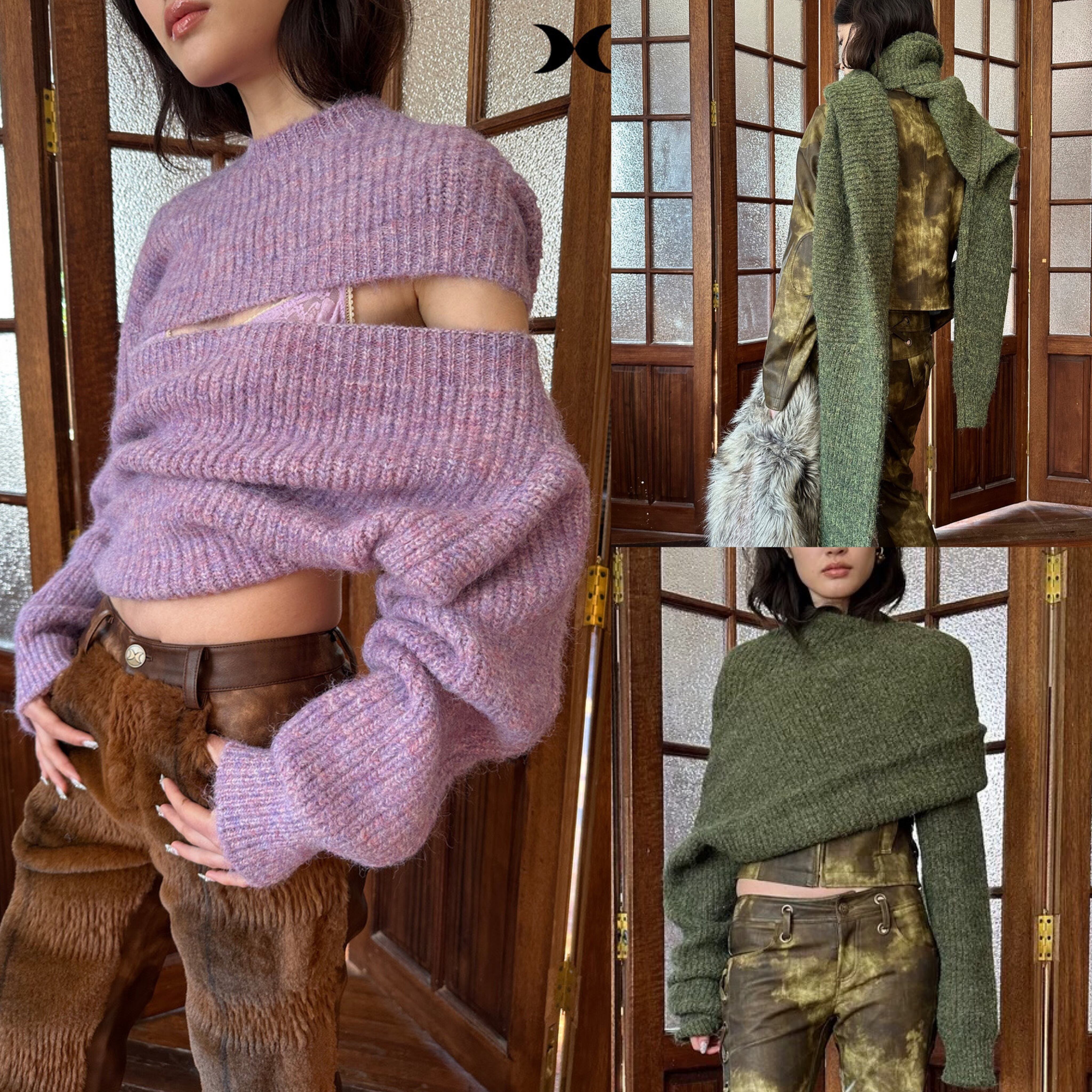 セーター オフショルダー ハイネック 紫 ピンク グリーン 緑 トップス セーター マフラー カーディガン
