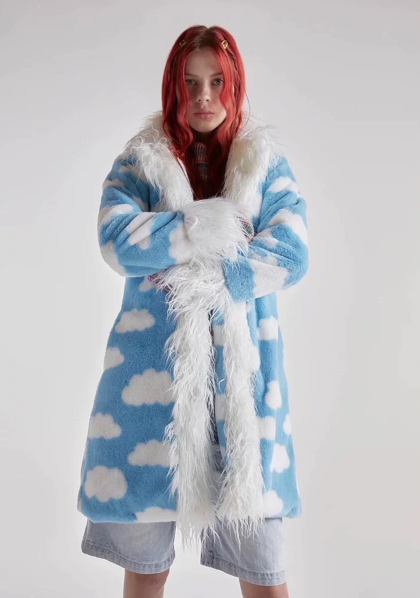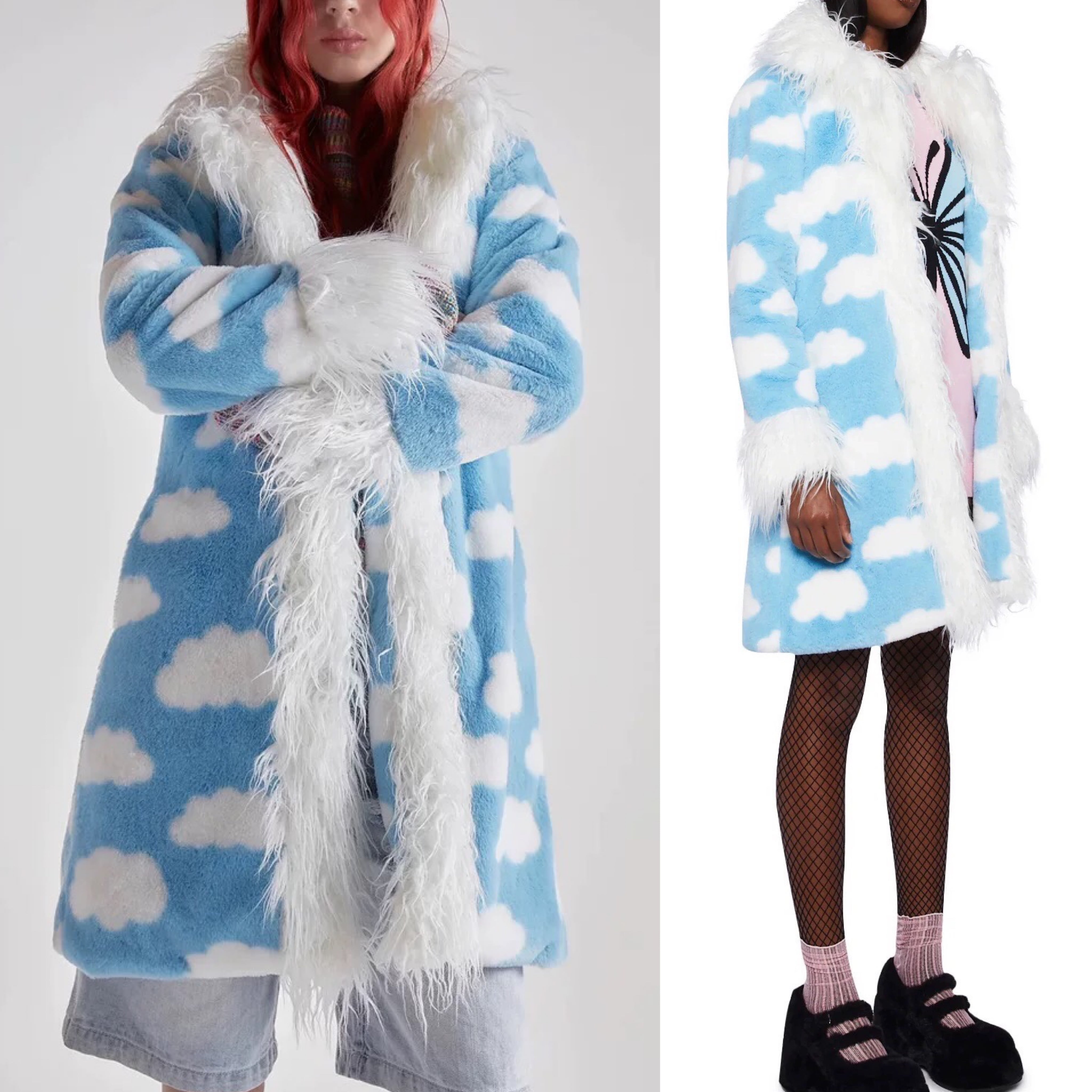 雲 空 水色 アウター ジャケット コート ファー 白 ワンピース ストリート