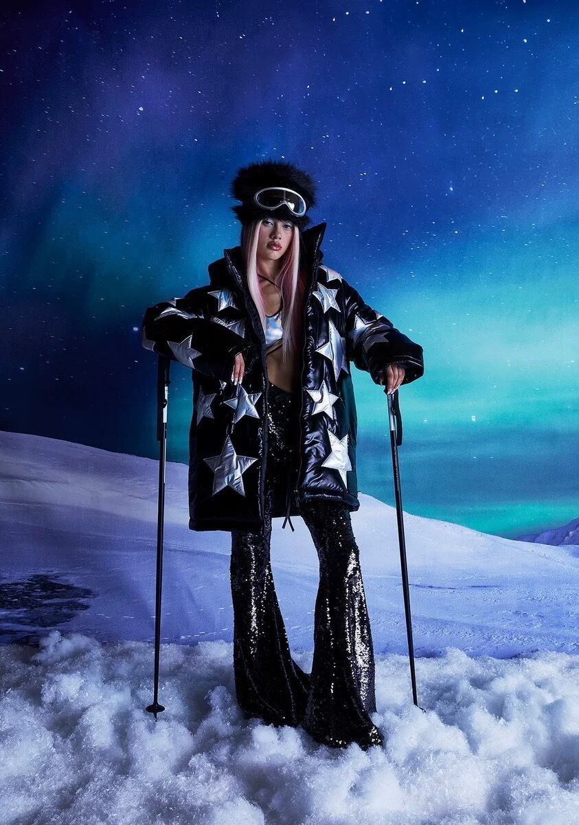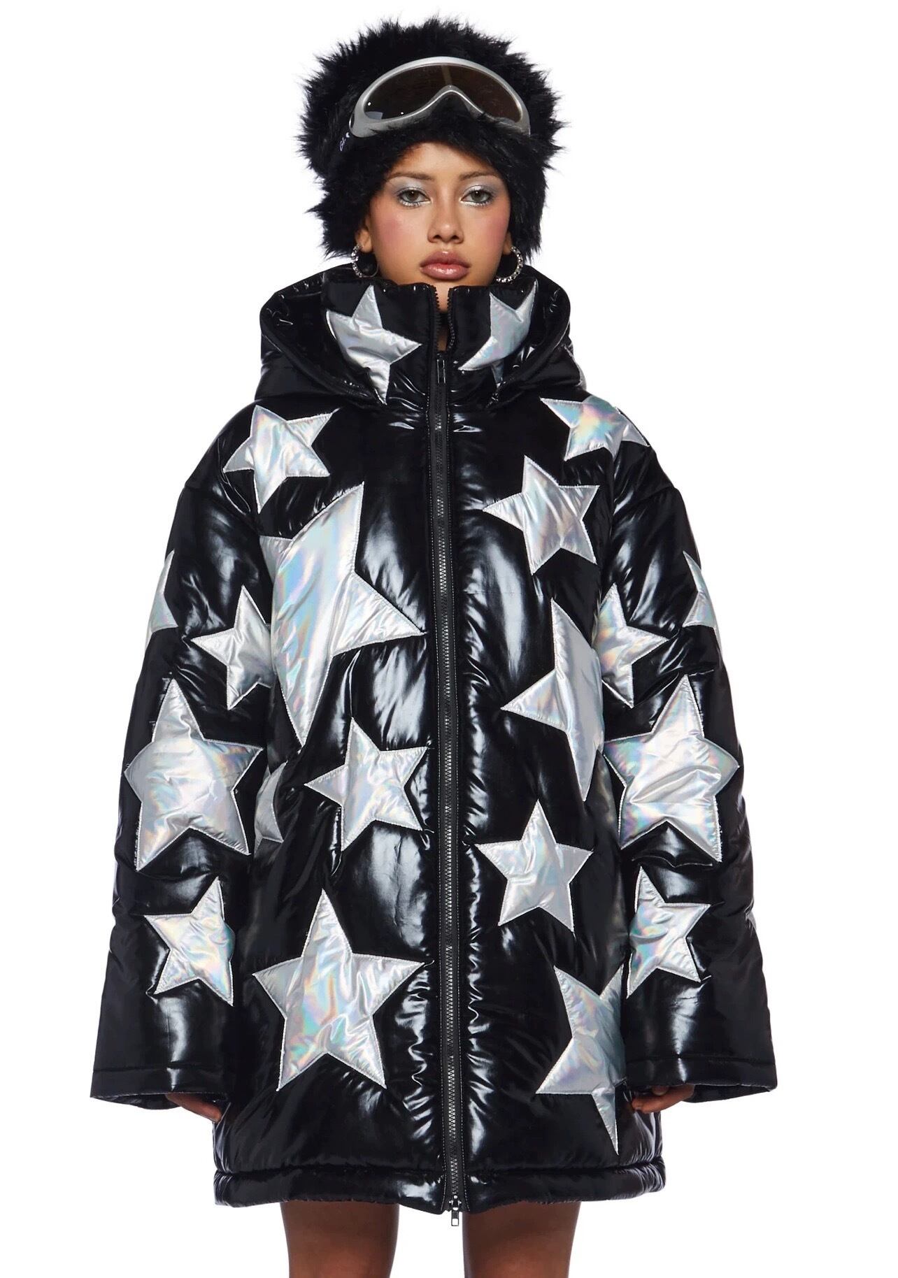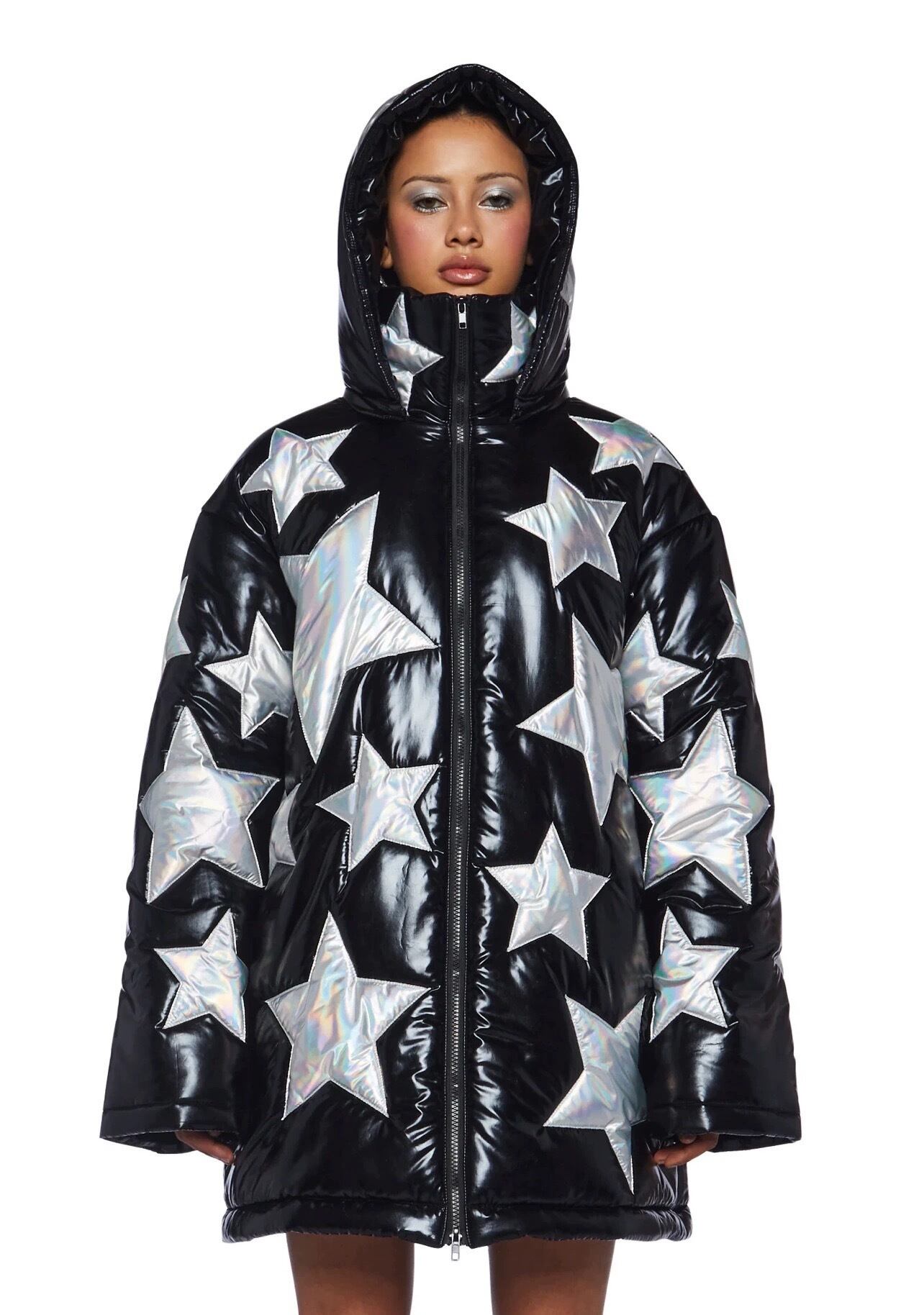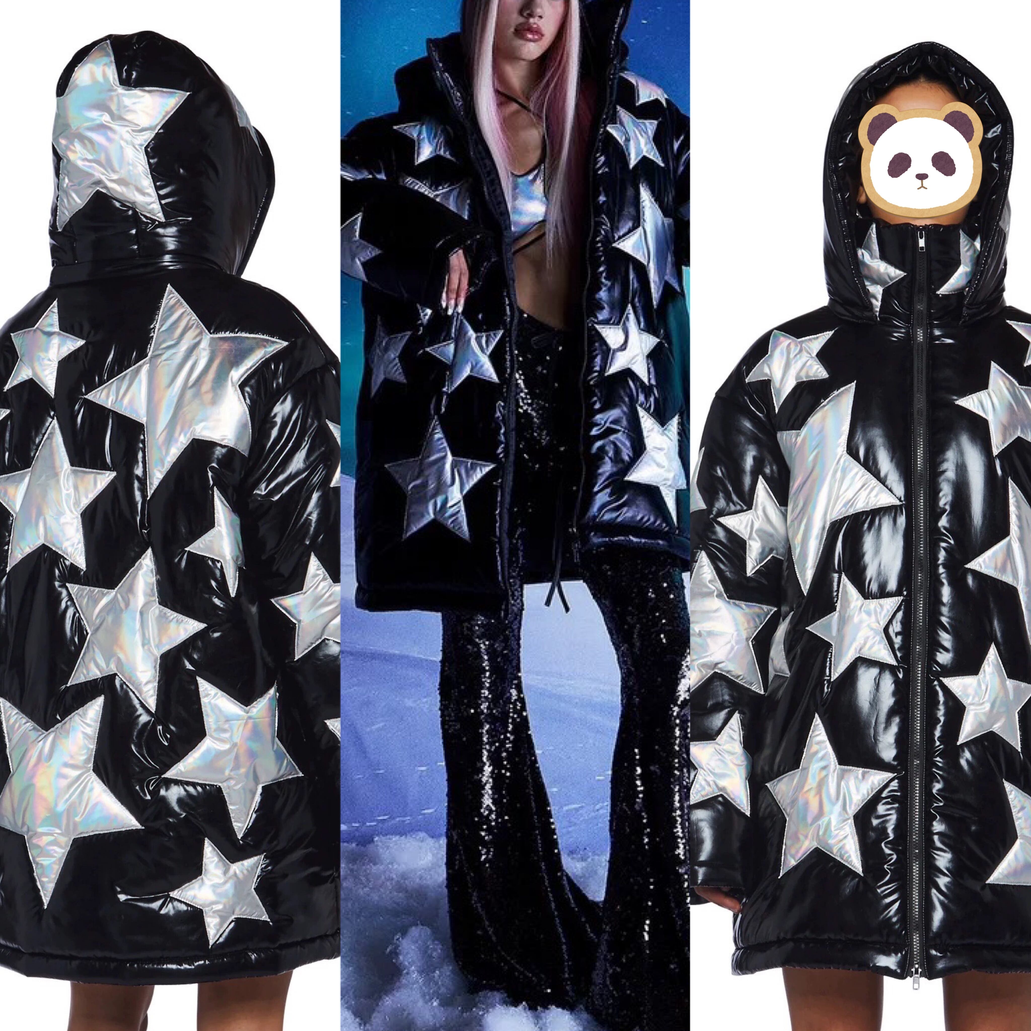 ダウン コート 星 スター シルバー 黒 アウター コート ジャケット ブルゾン フード パーカー