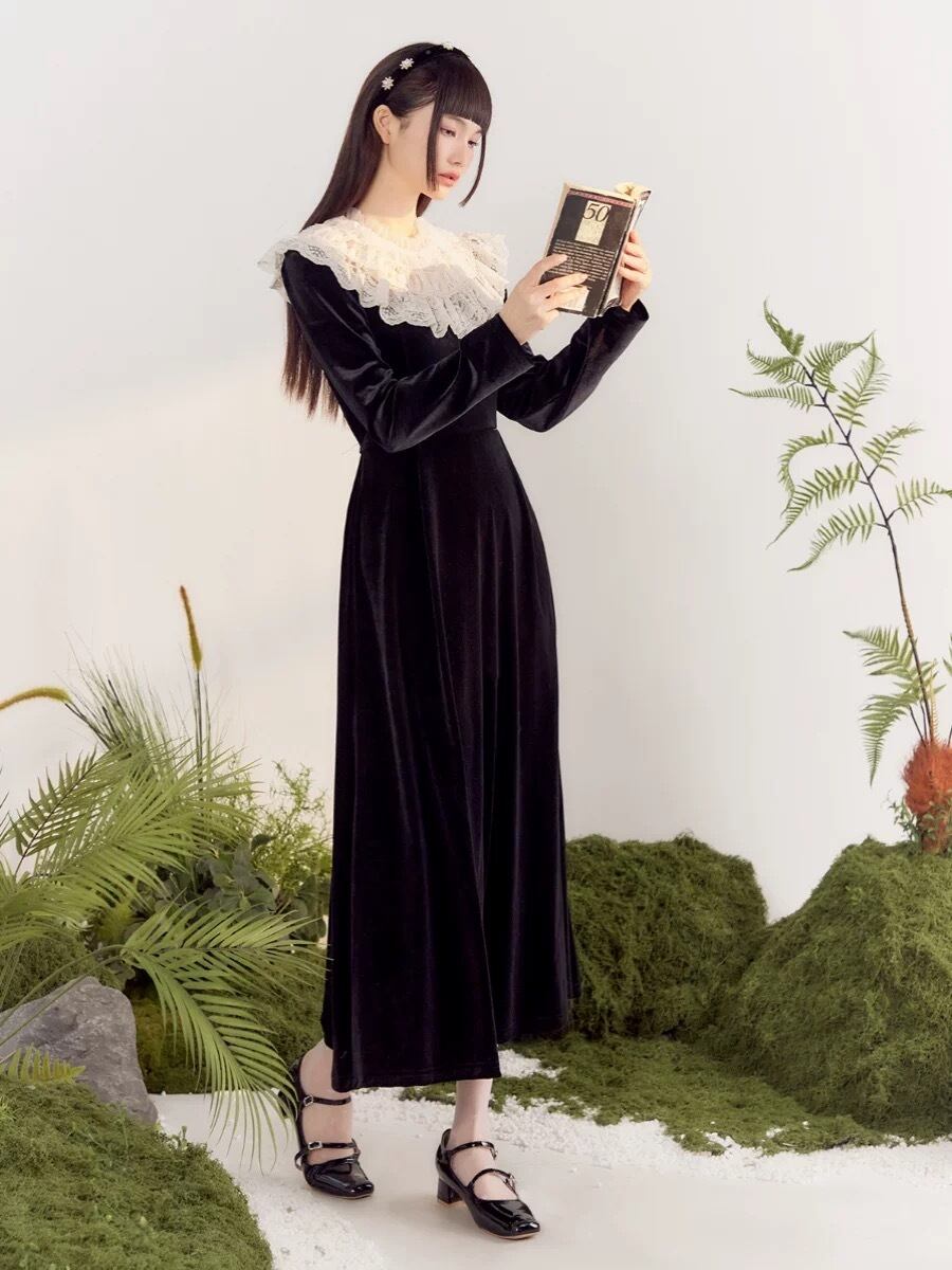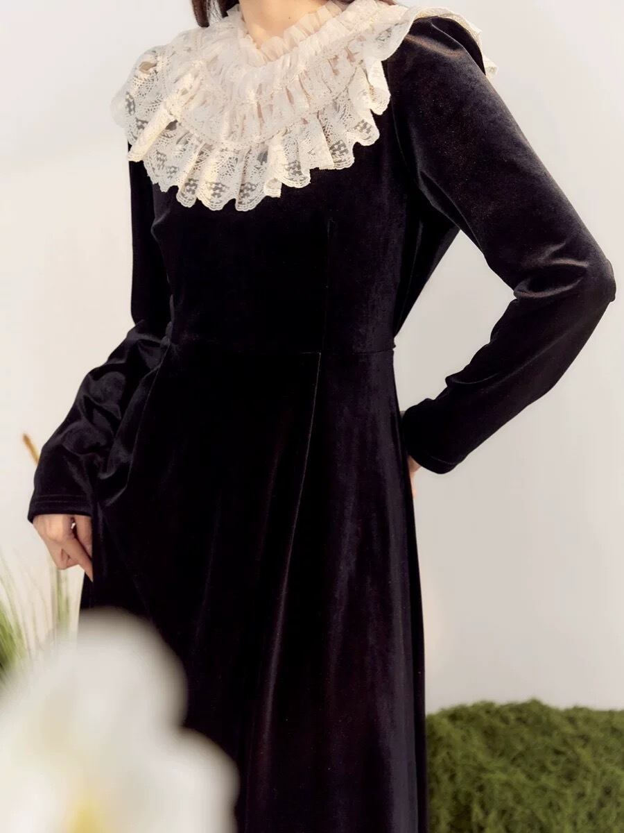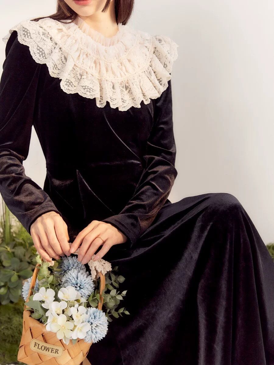 黒 エレガント ブラウス ワンピース ガーリー 姫 可愛い