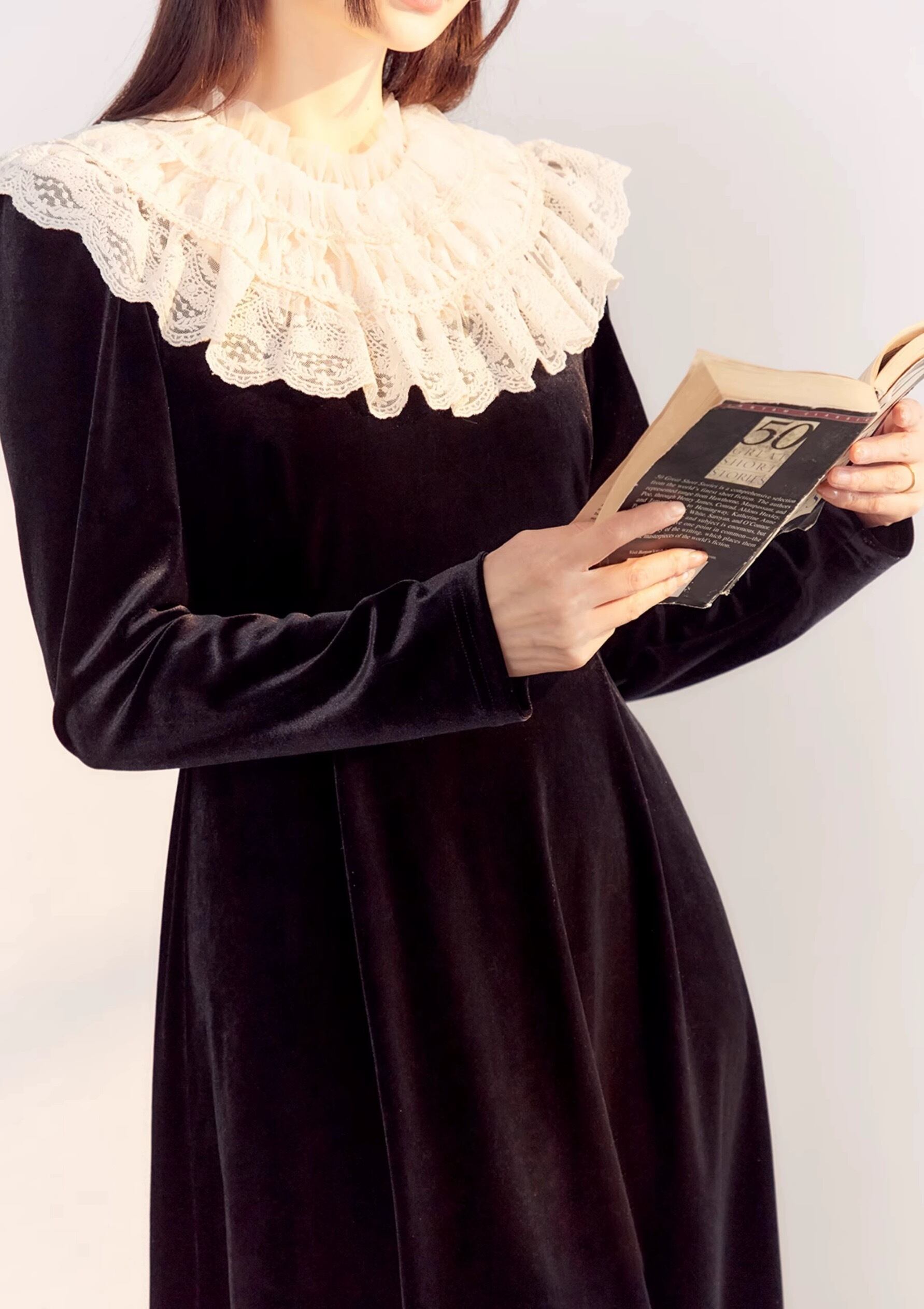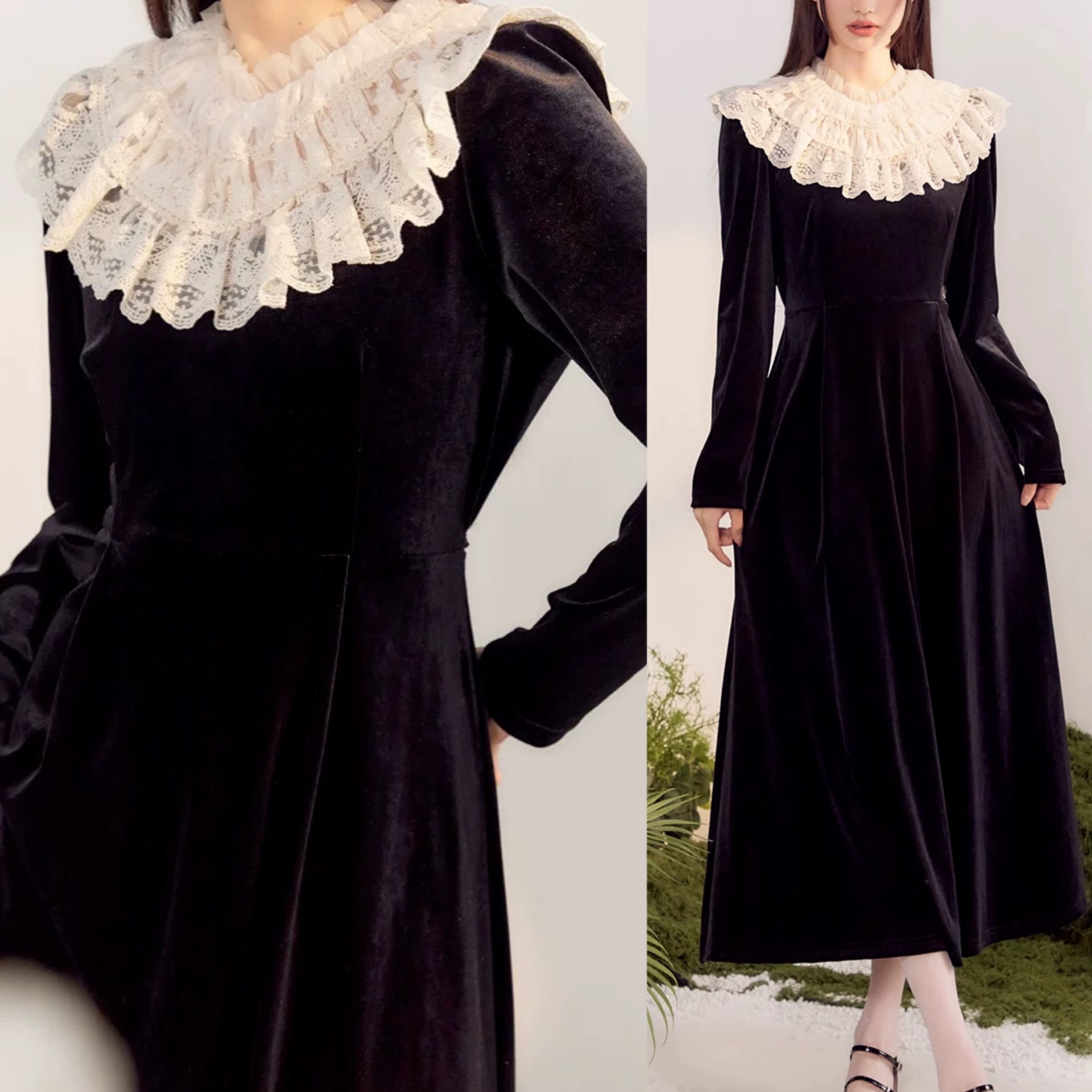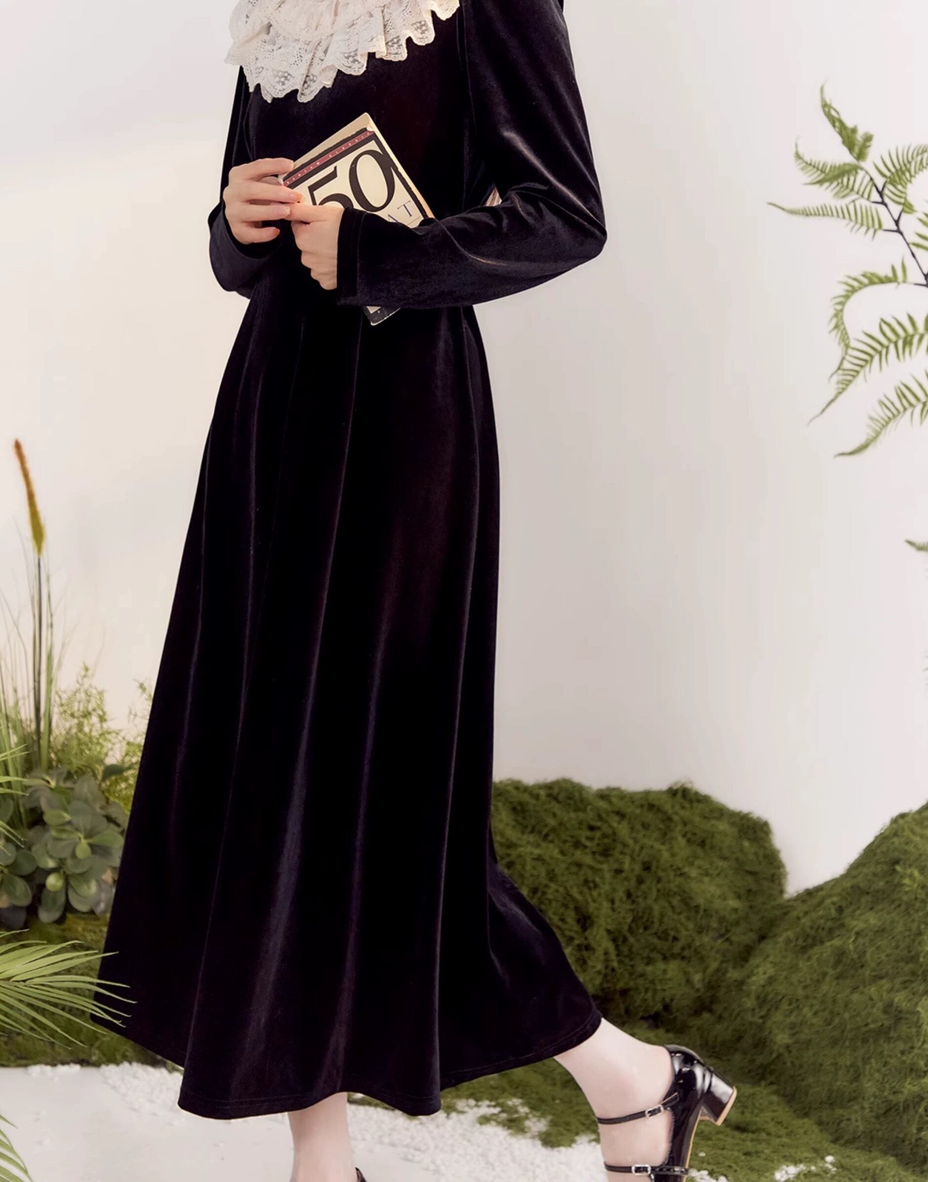 黒 エレガント ブラウス ワンピース ガーリー 姫 可愛い