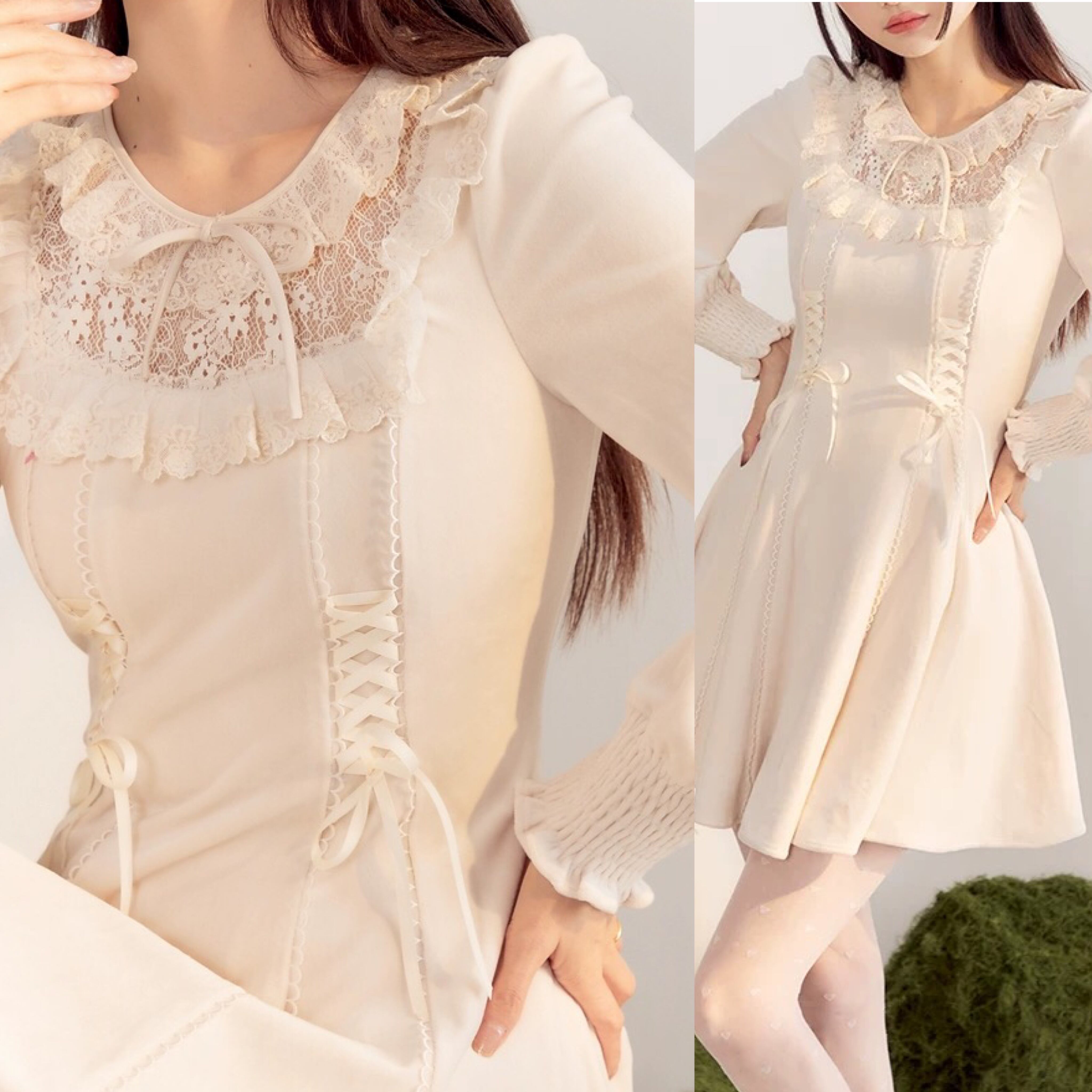 ワンピース エレガント リボン ブラウス お嬢様 ワンピース