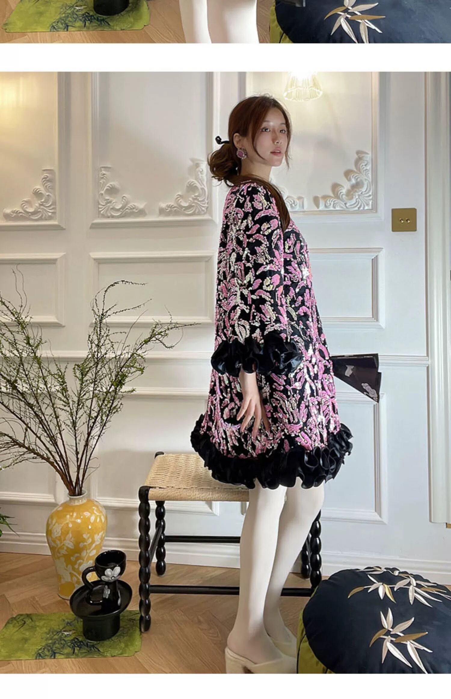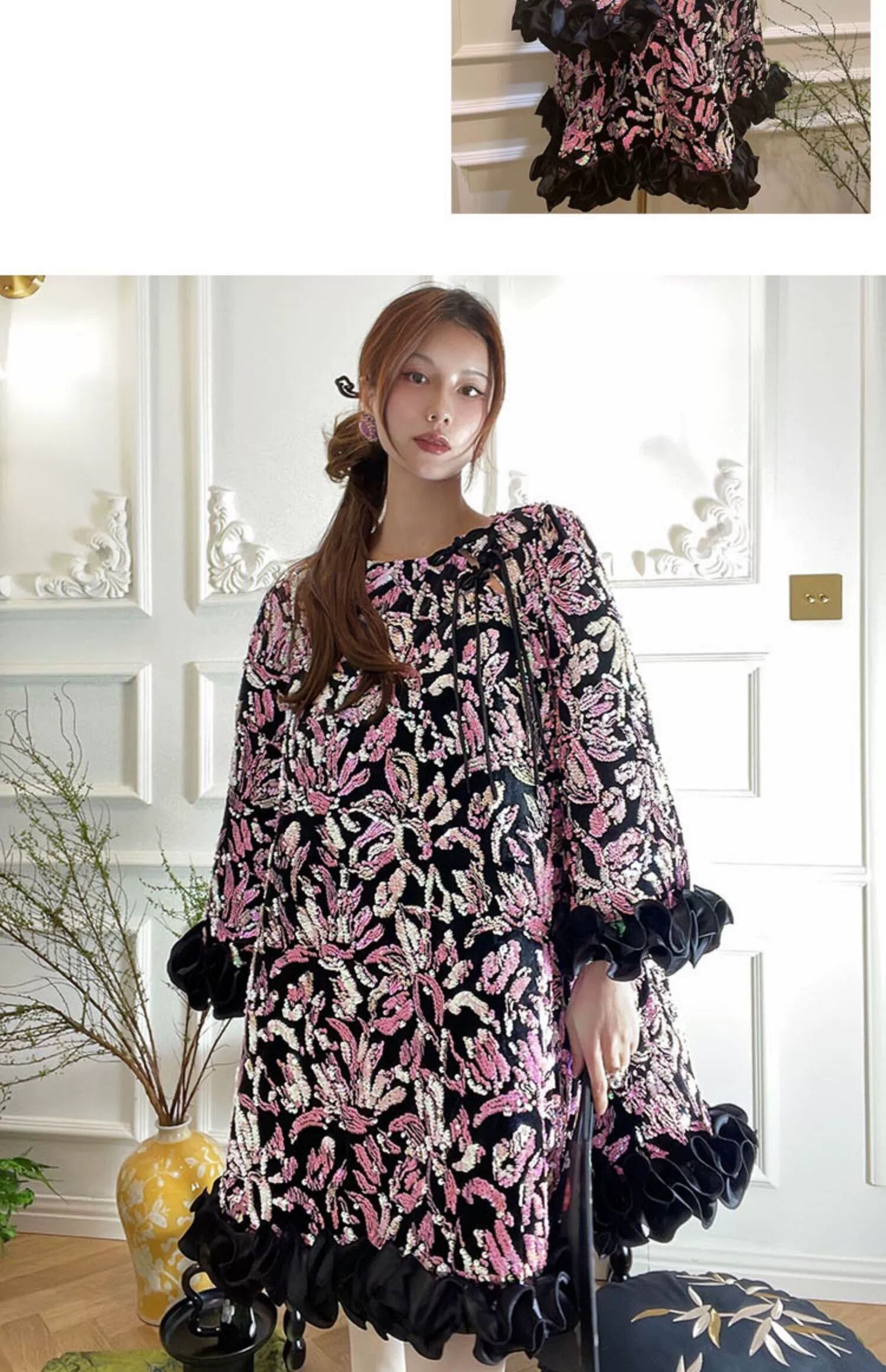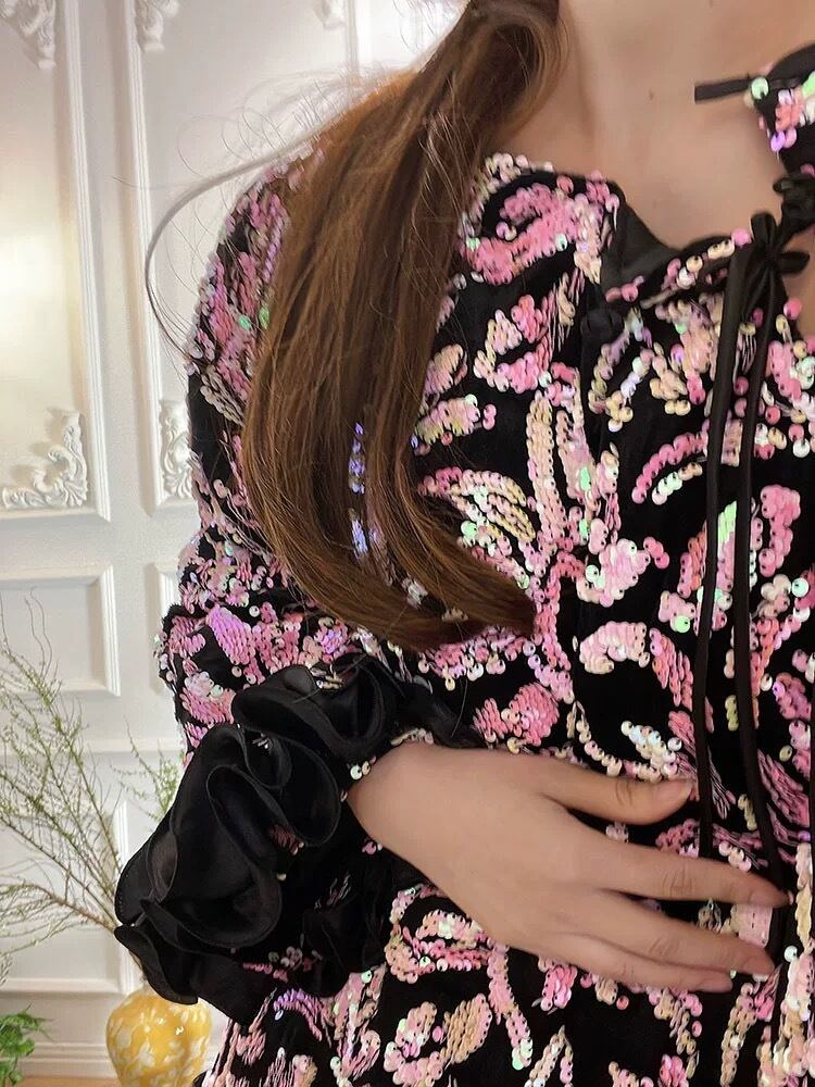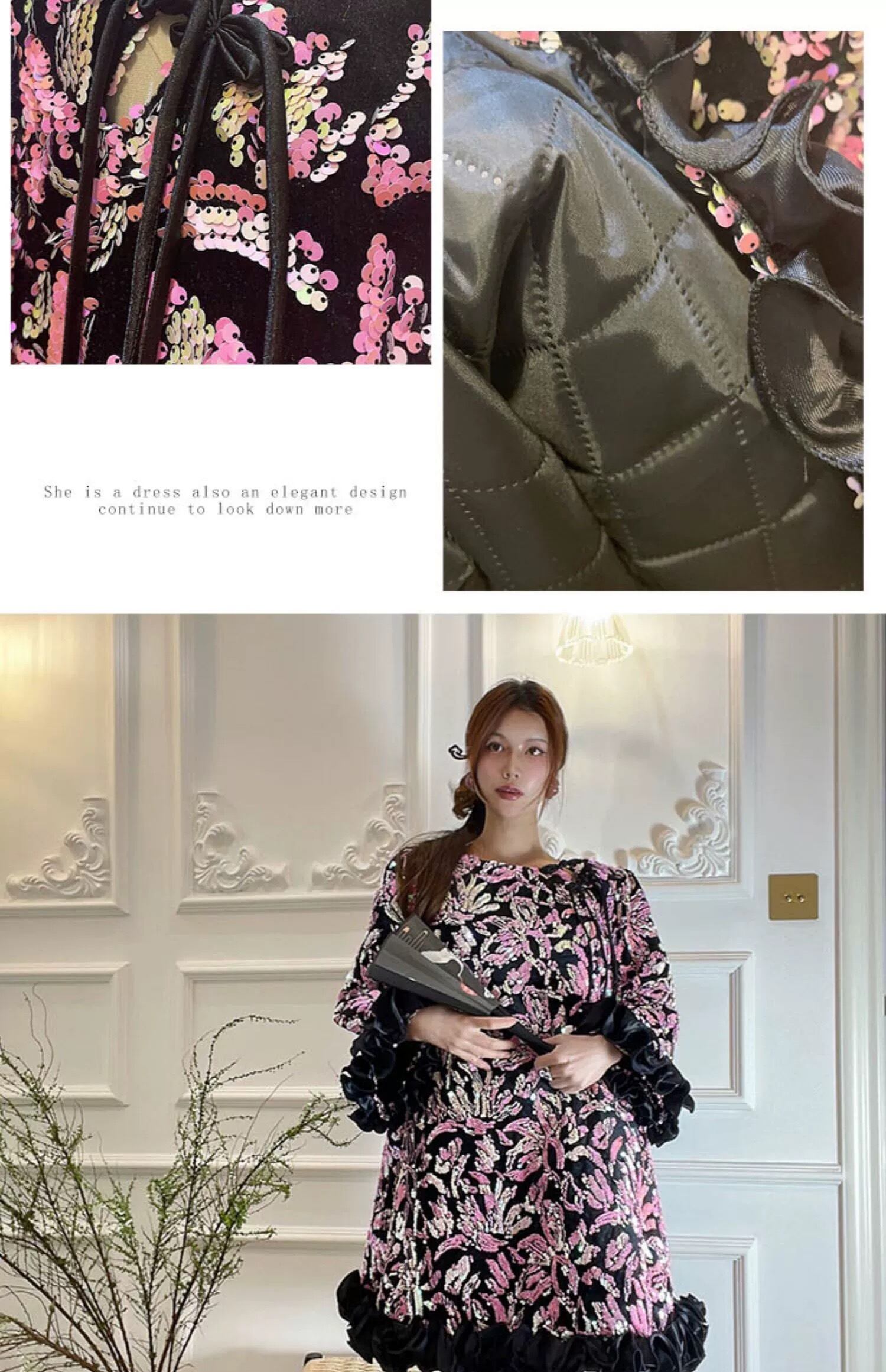 ワンピース スパンコール キラキラ ピンク 黒 ワンピース