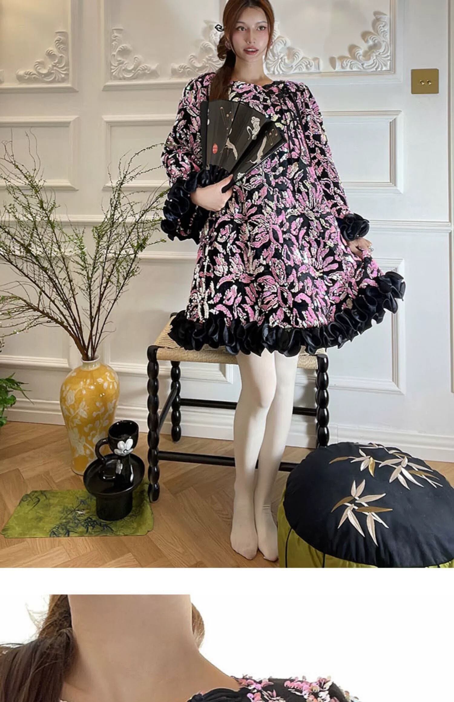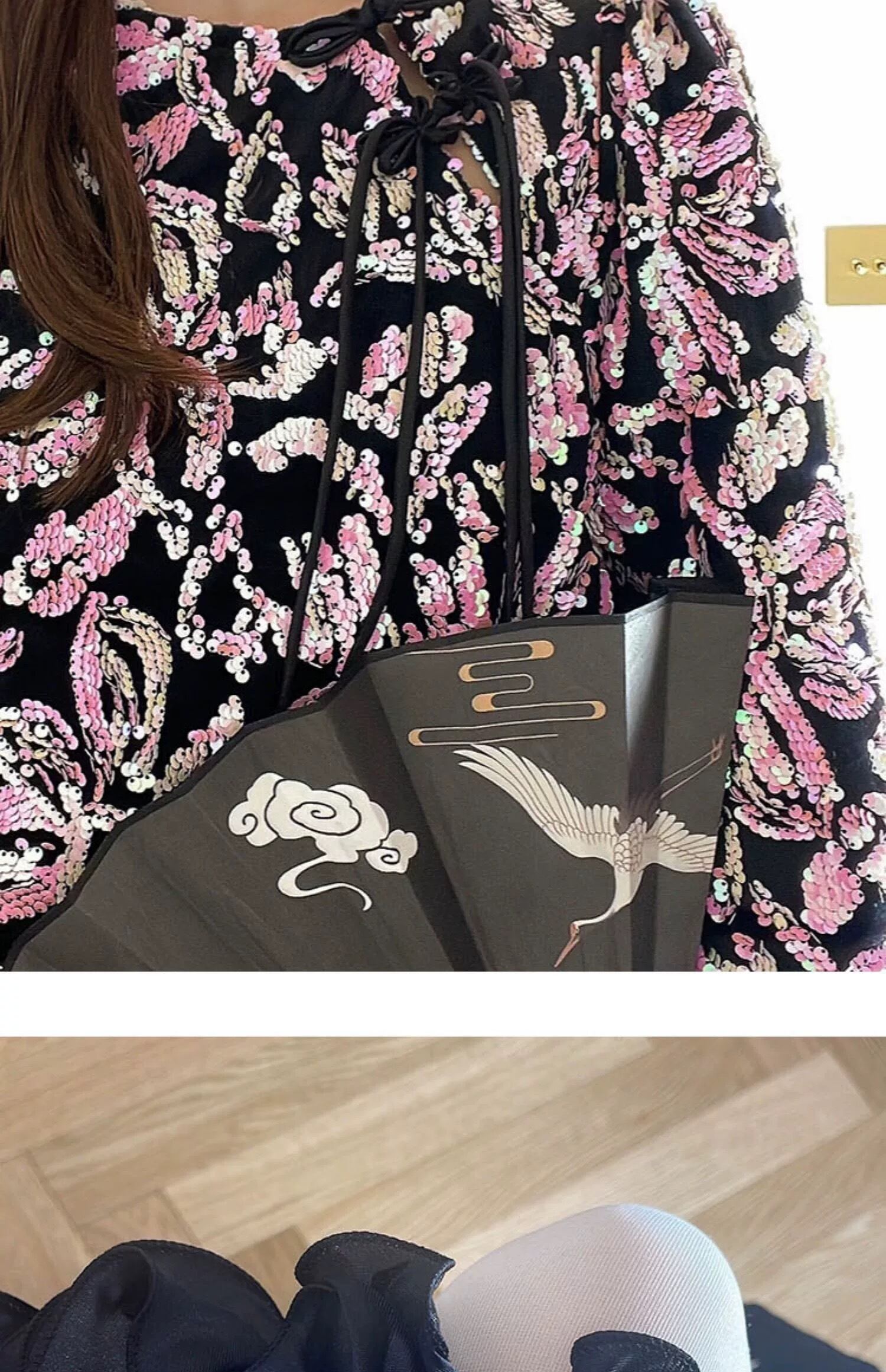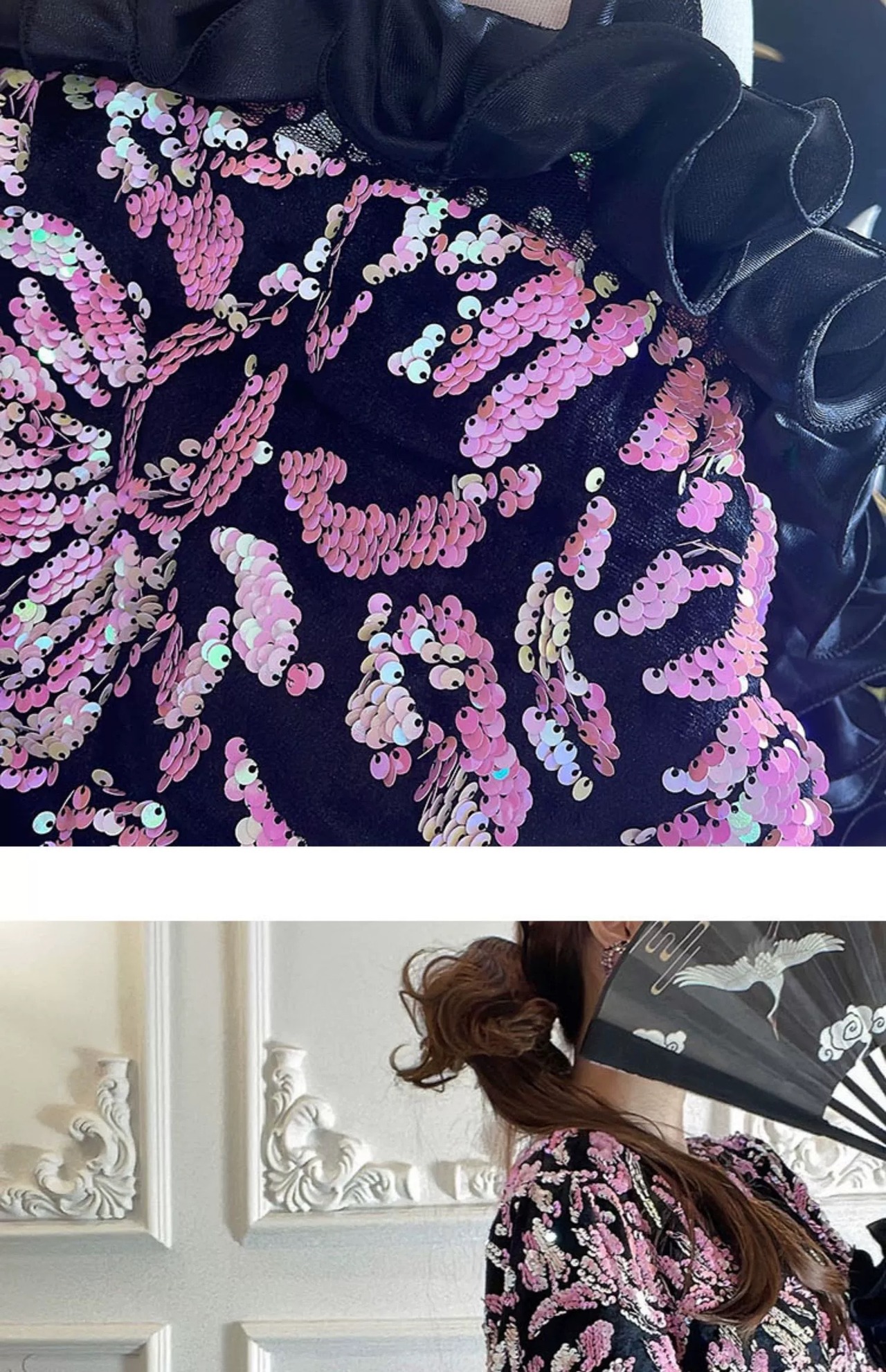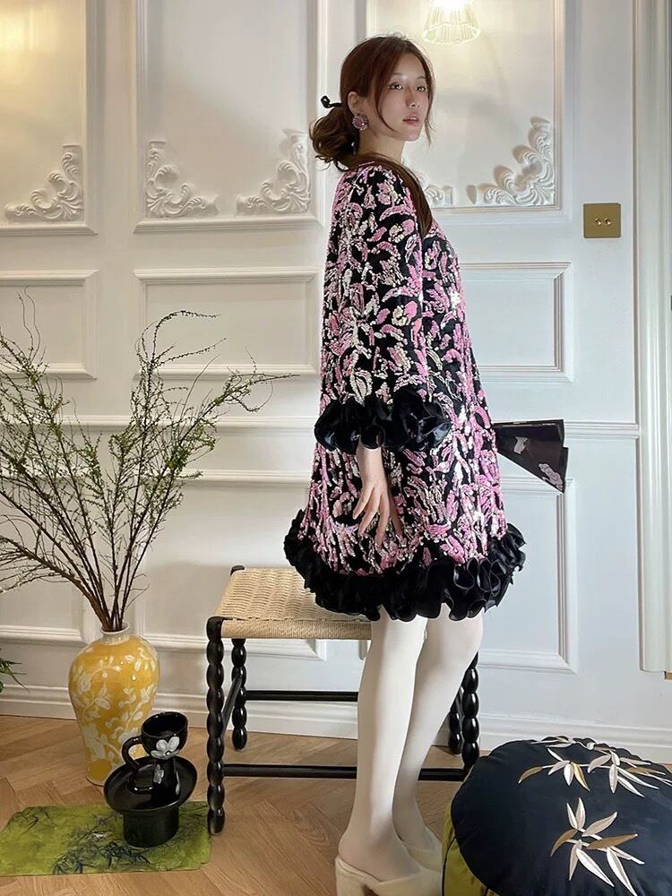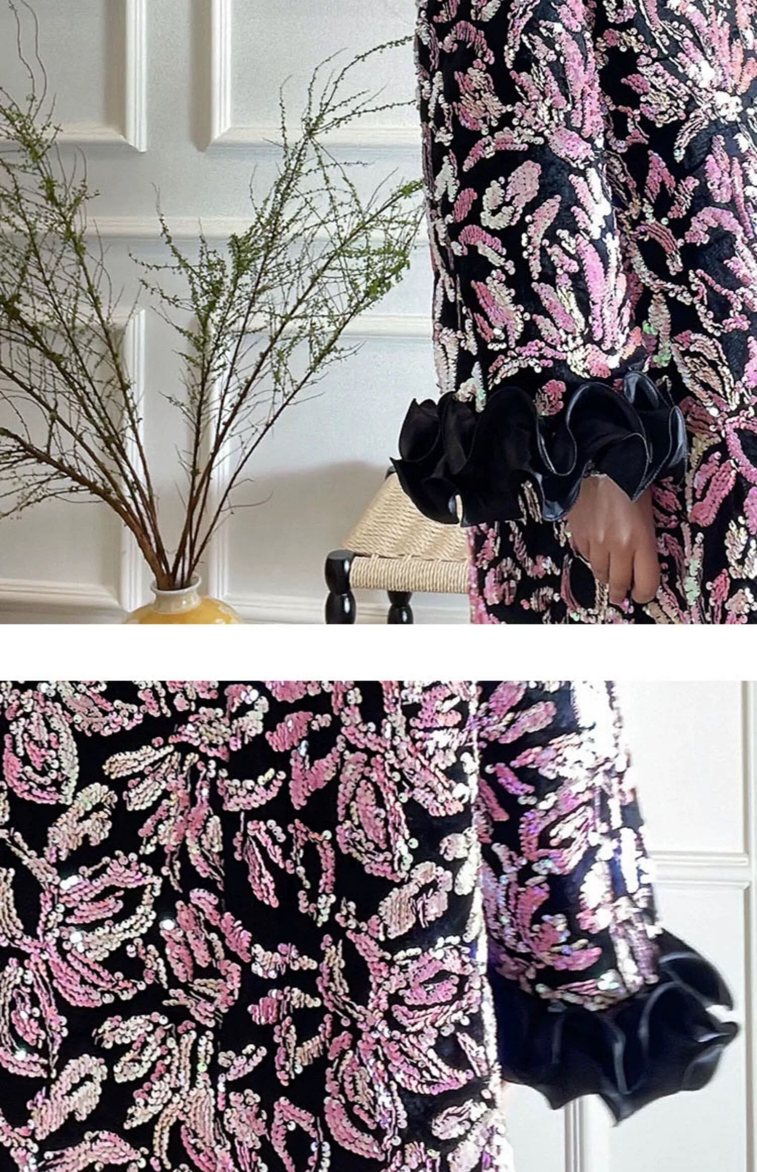 ワンピース スパンコール キラキラ ピンク 黒 ワンピース