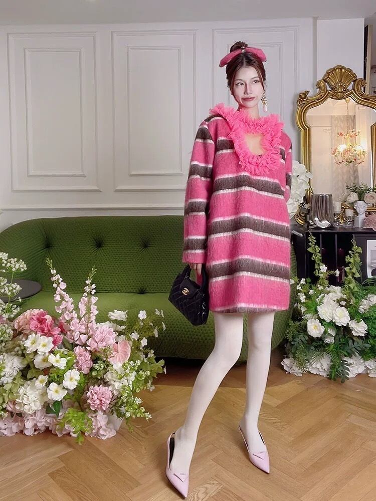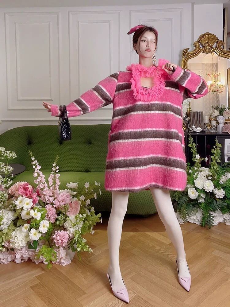 ワンピース ピンク ゆったり ガーリー ブラウス リボン