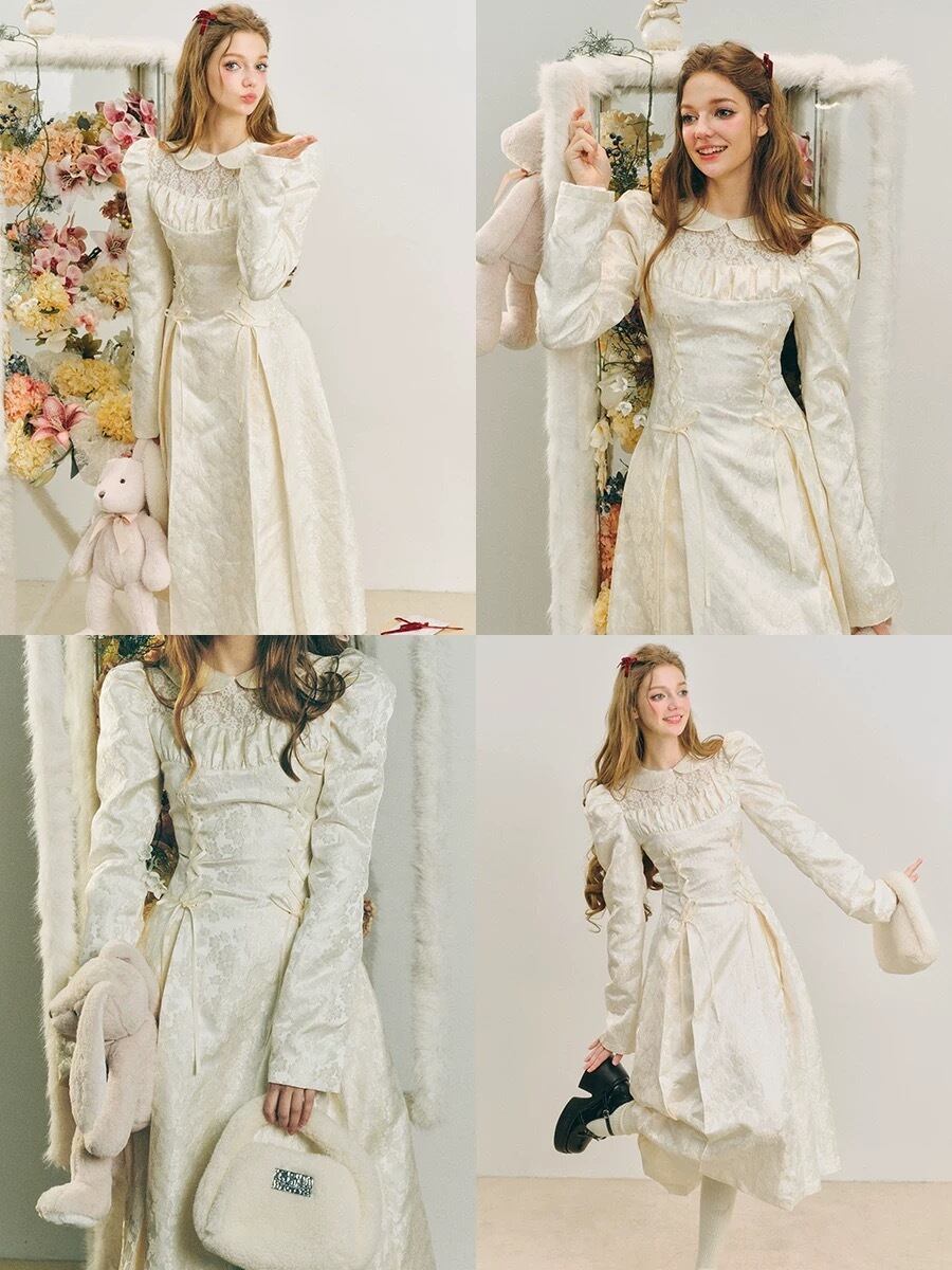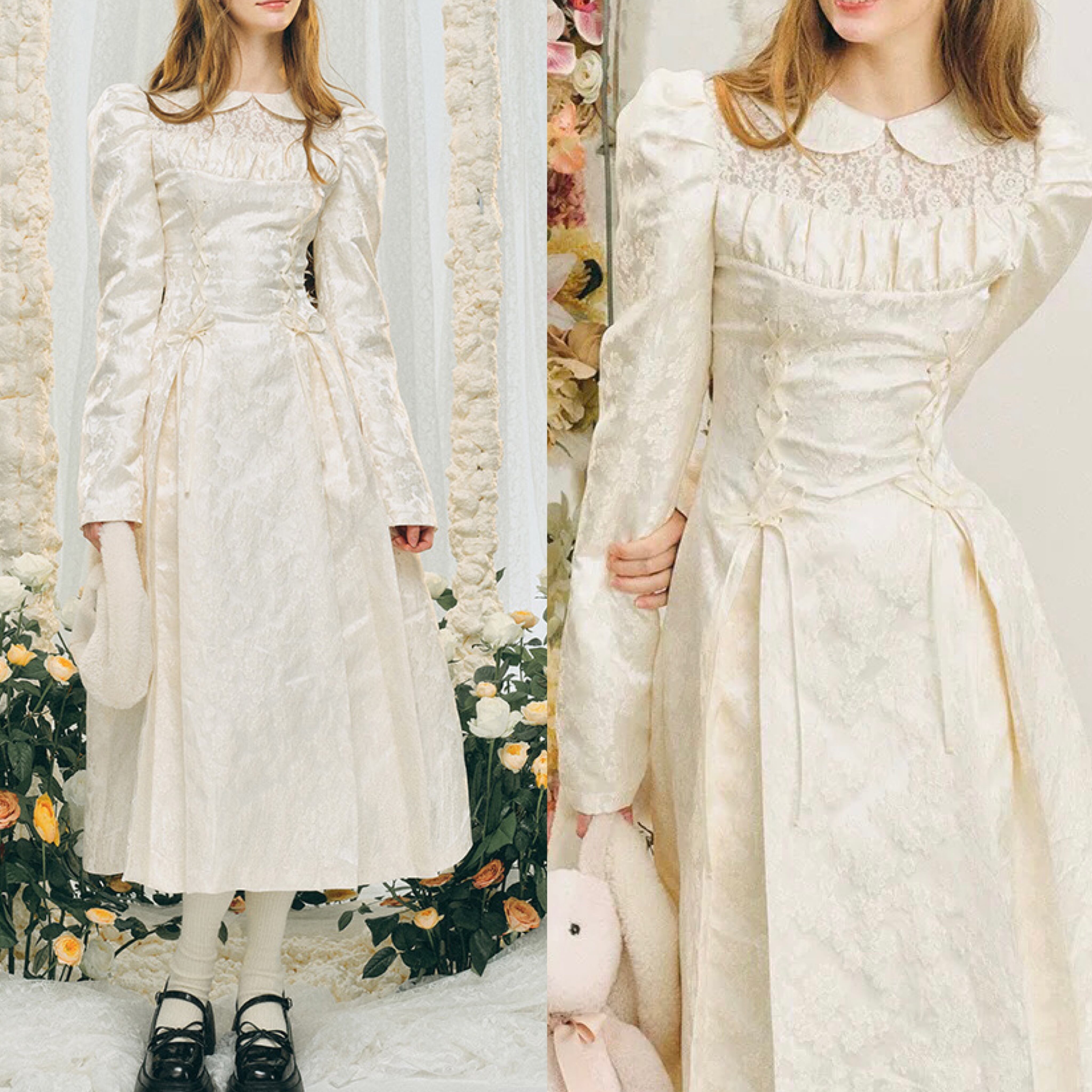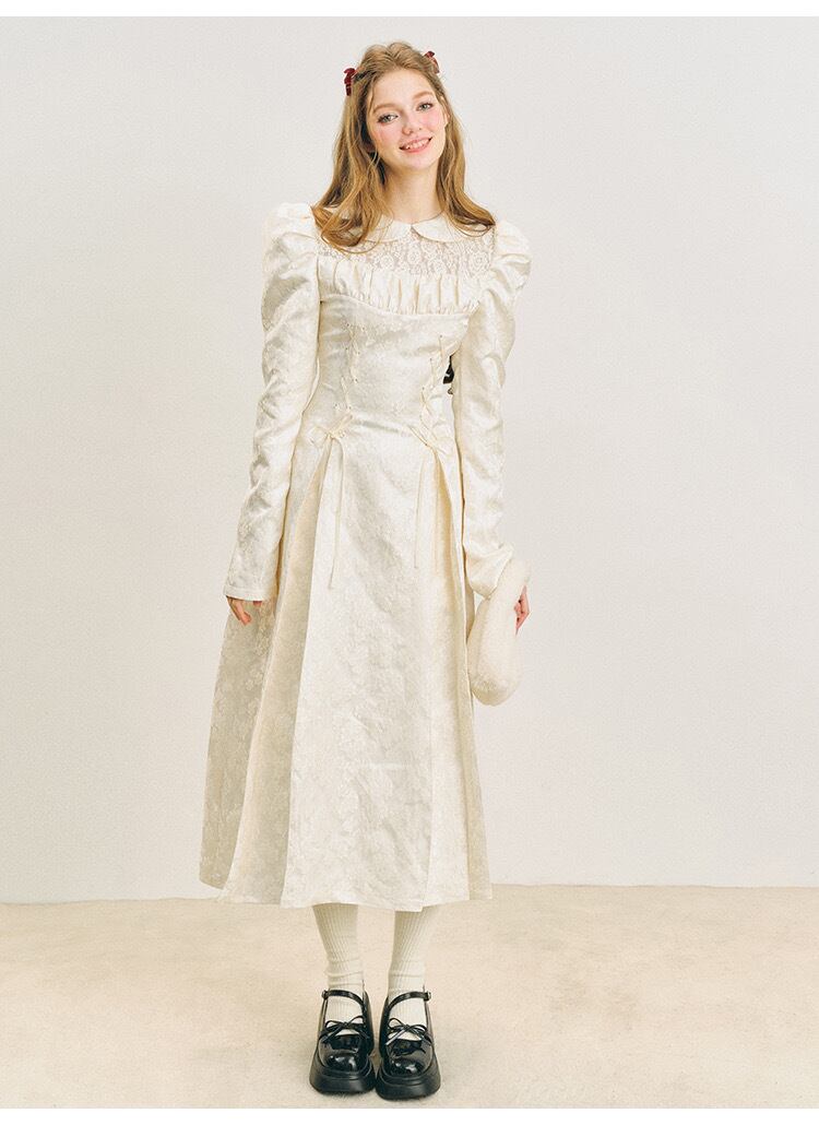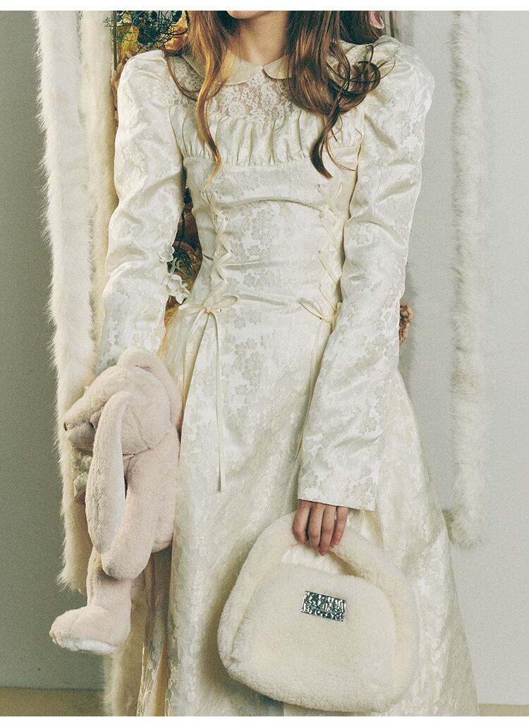 ホワイト ゆったり ワンピース リボン ガーリー エレガント ブラウス