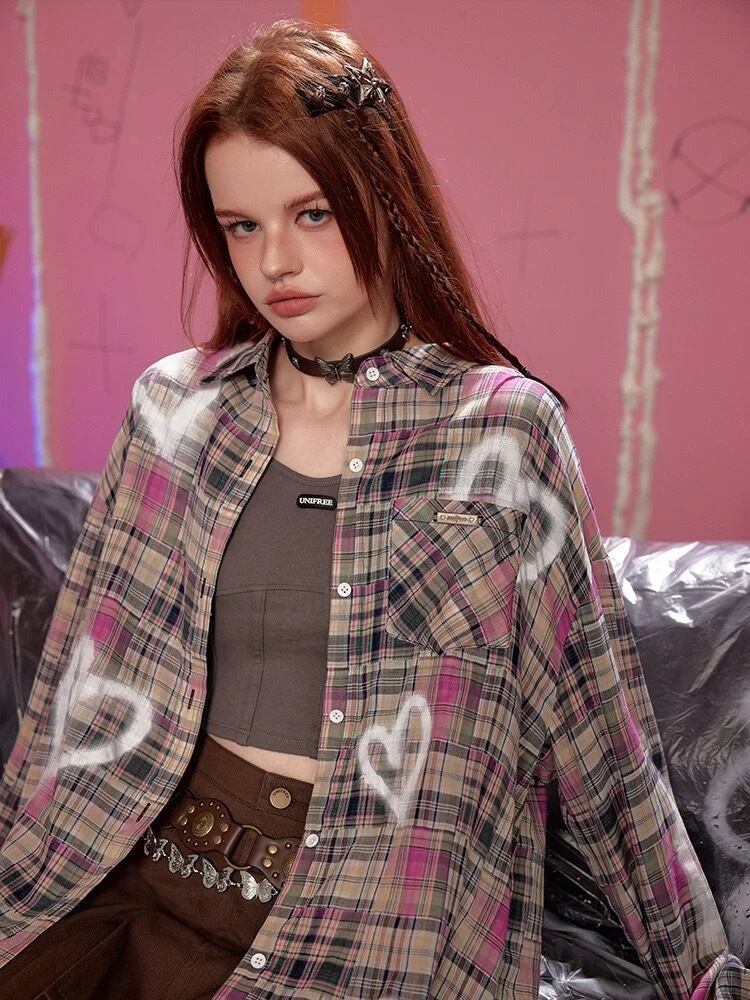 ブラウス チェック ピンク ベージュ シャツ トップス