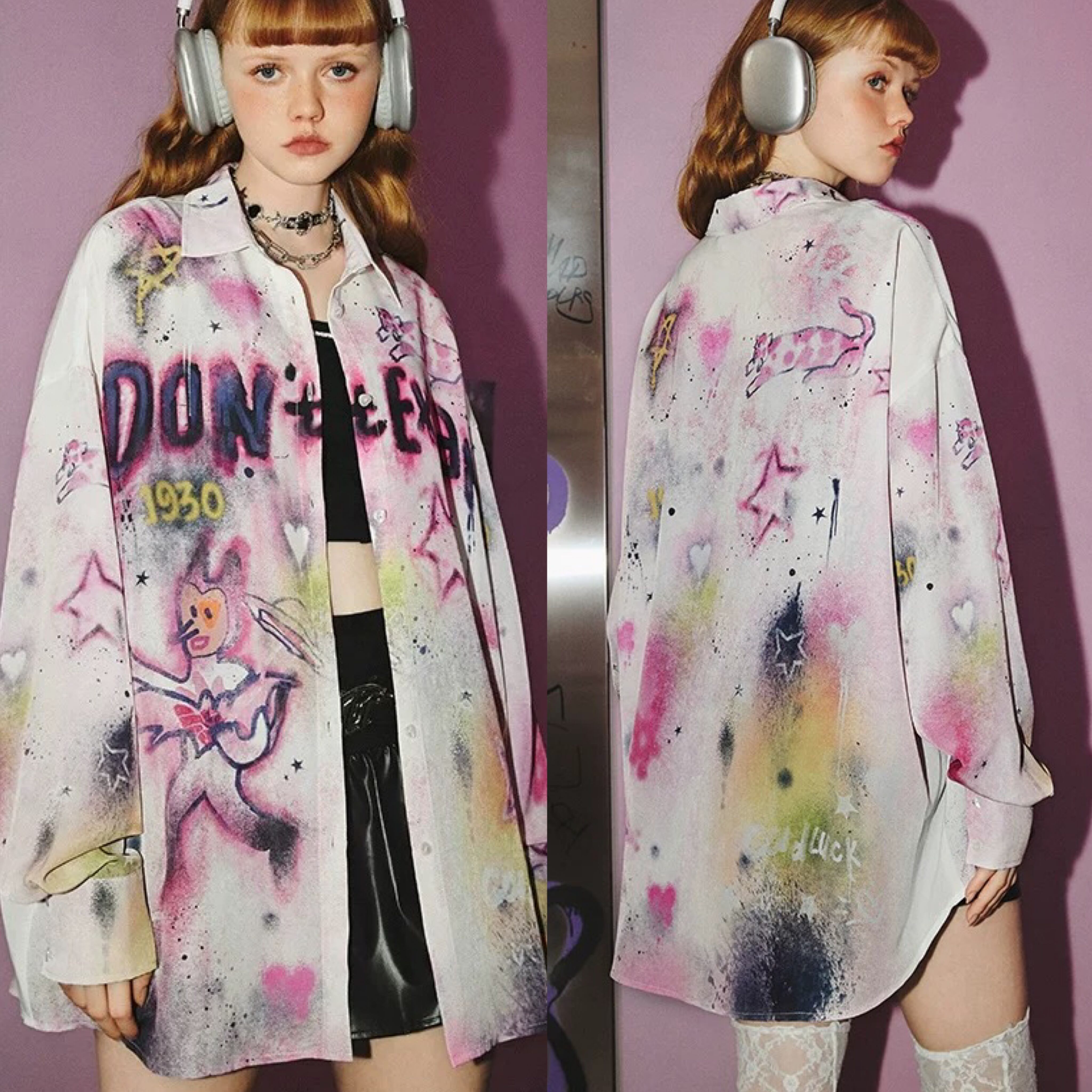 ブラウス カジュアル ストリート ピンク 黄色 可愛い 原宿 ワンピース シャツ ゆったり