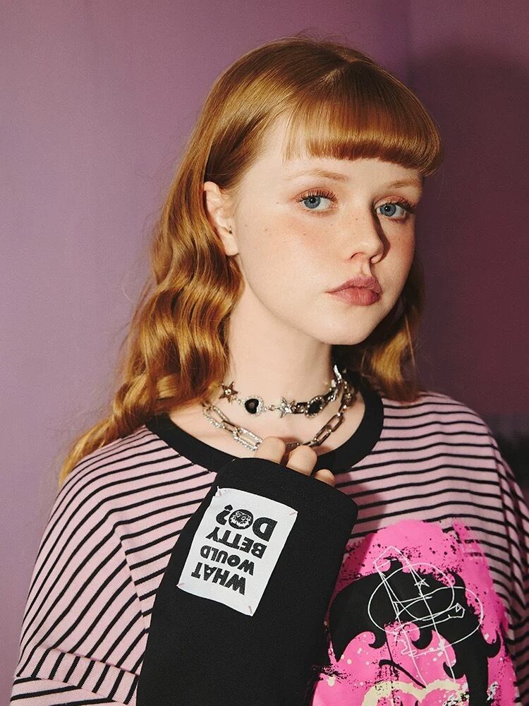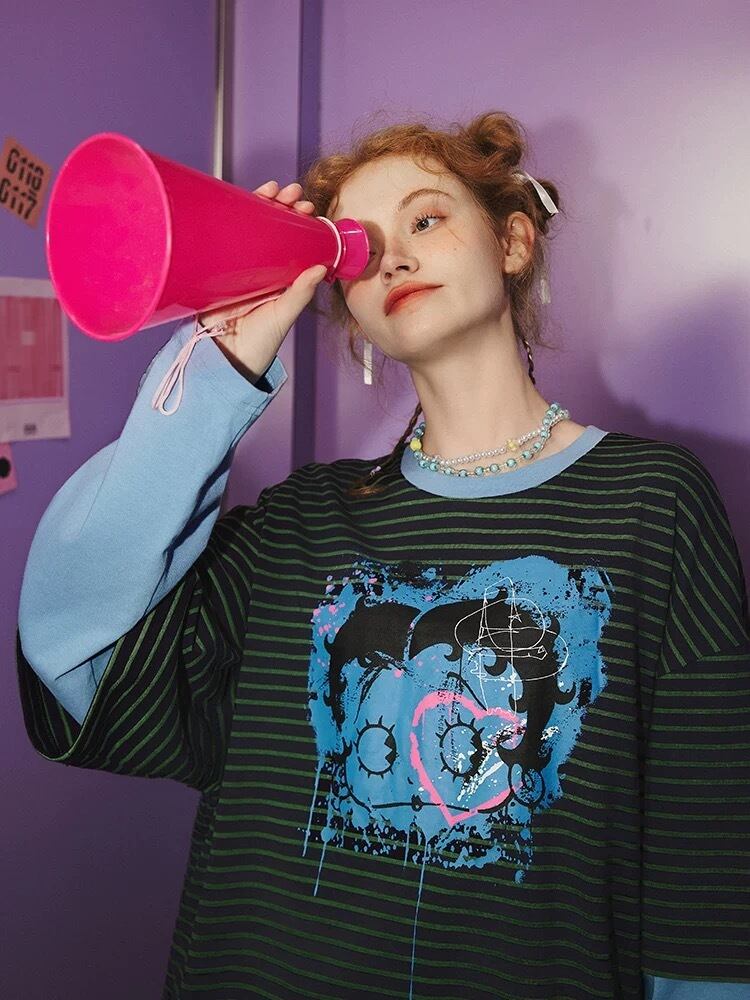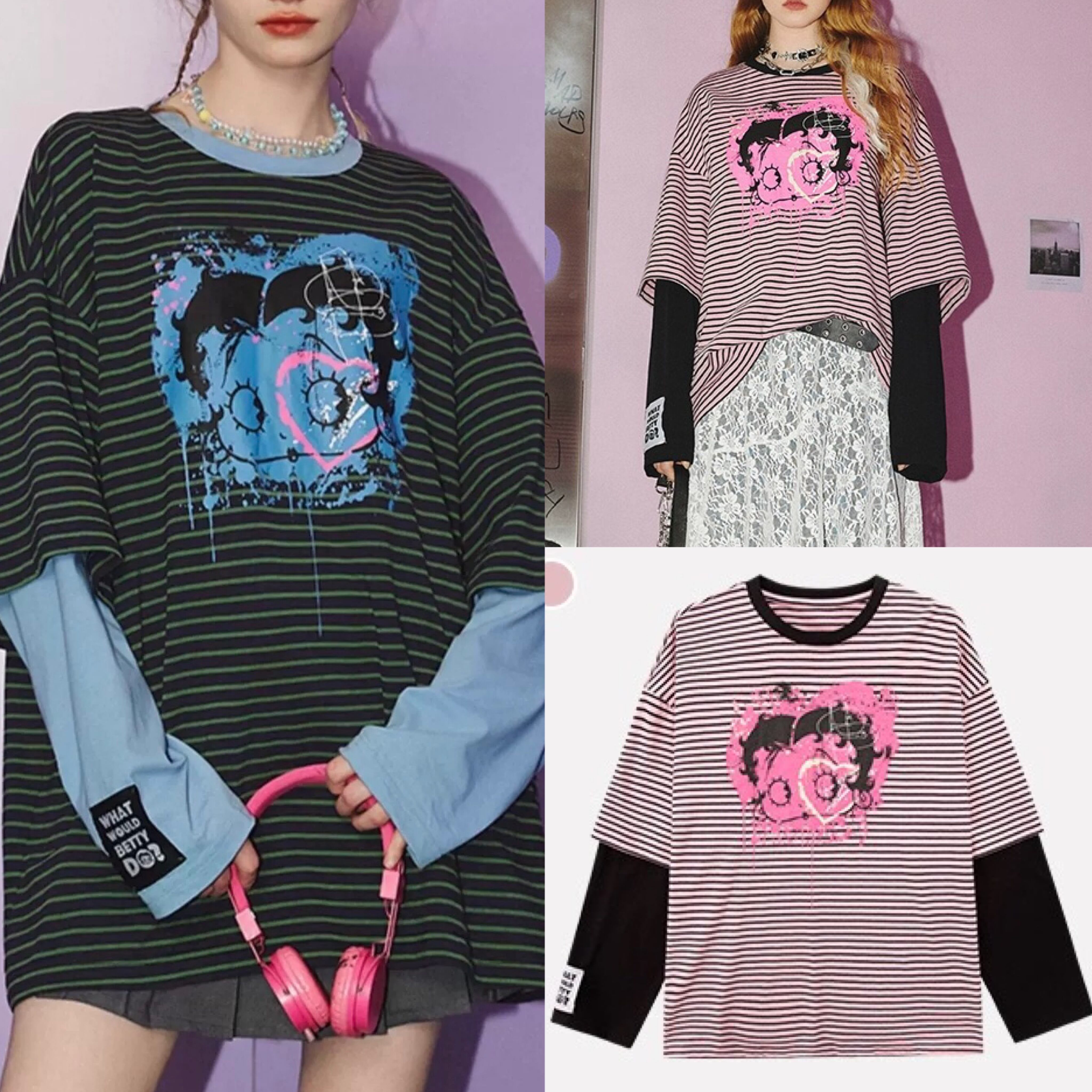 スウェット ピンク 水色 ボーダー カジュアル トレーナー ブラウス Tシャツ パーカー ハート 可愛い