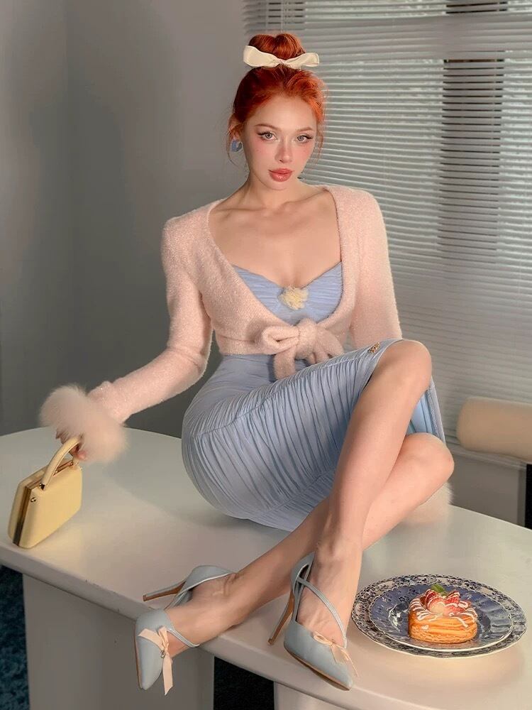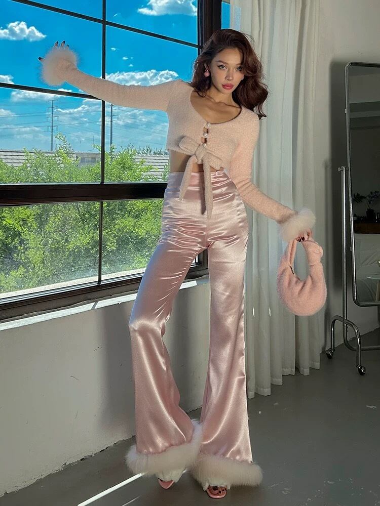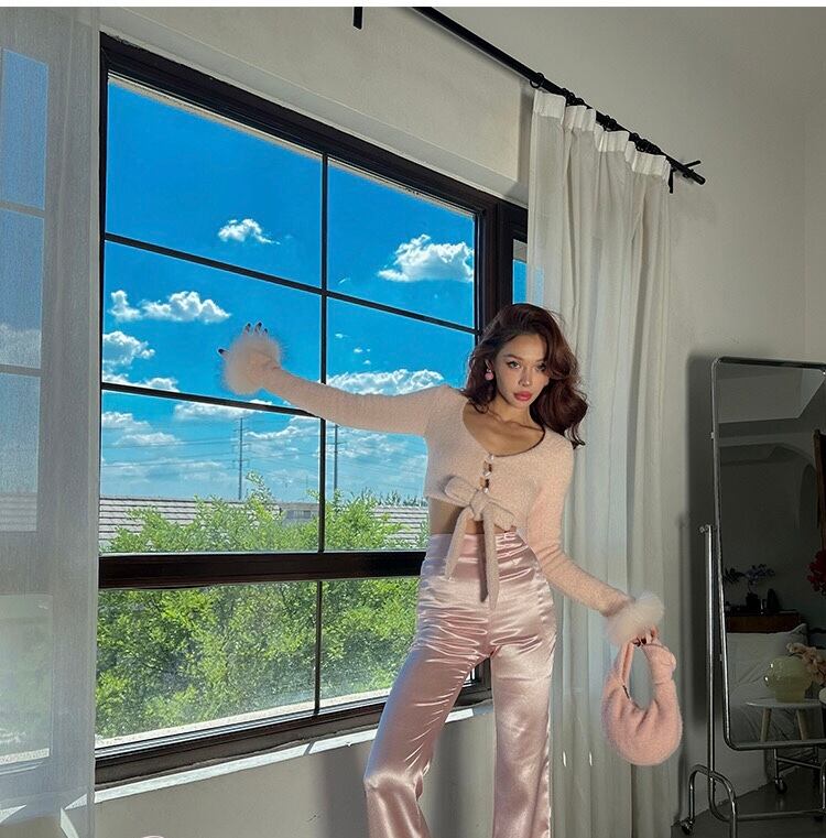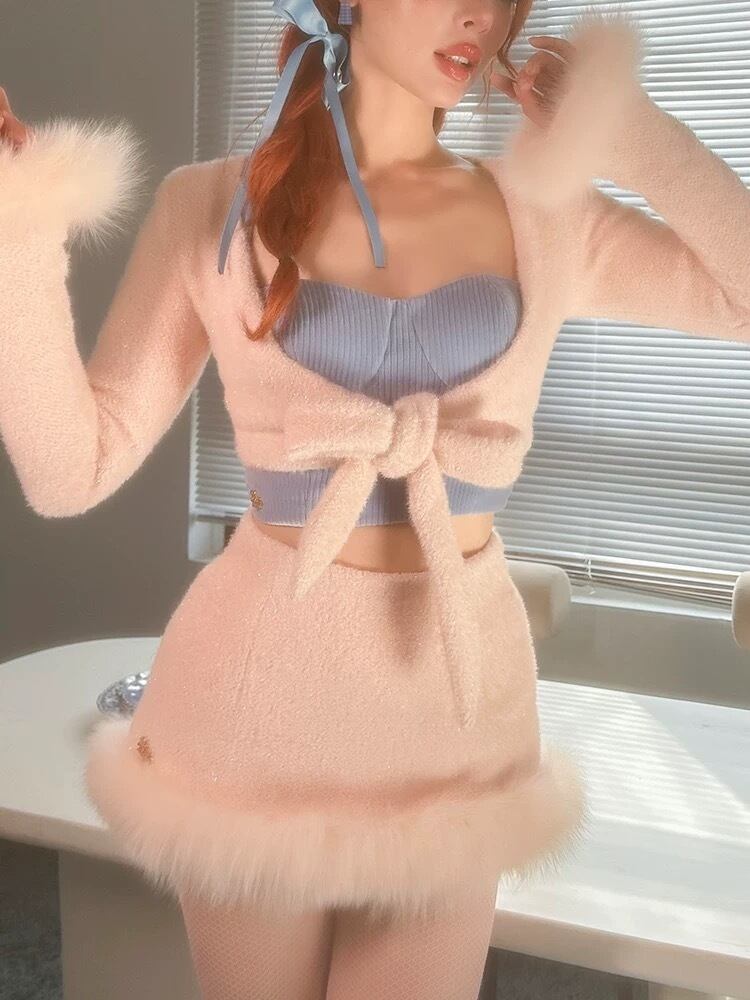 ピンク オレンジ スーツ リボン ボトムス ジャケット カーディガン ファー ミニスカート ファー