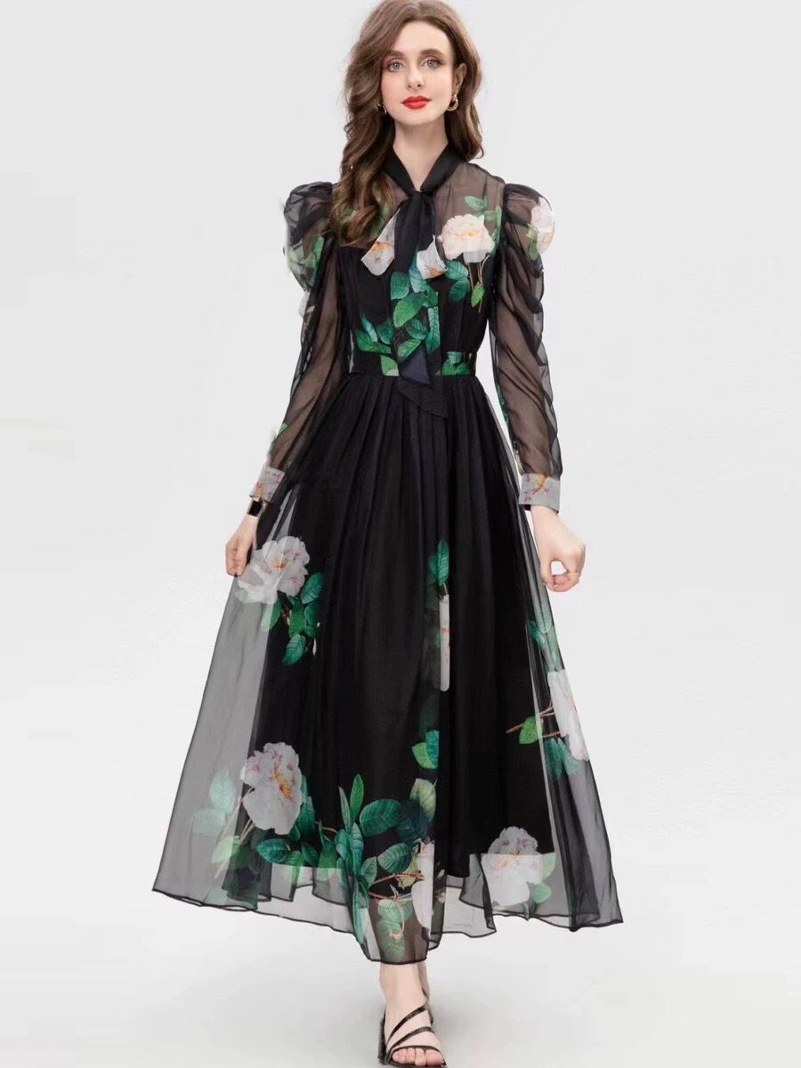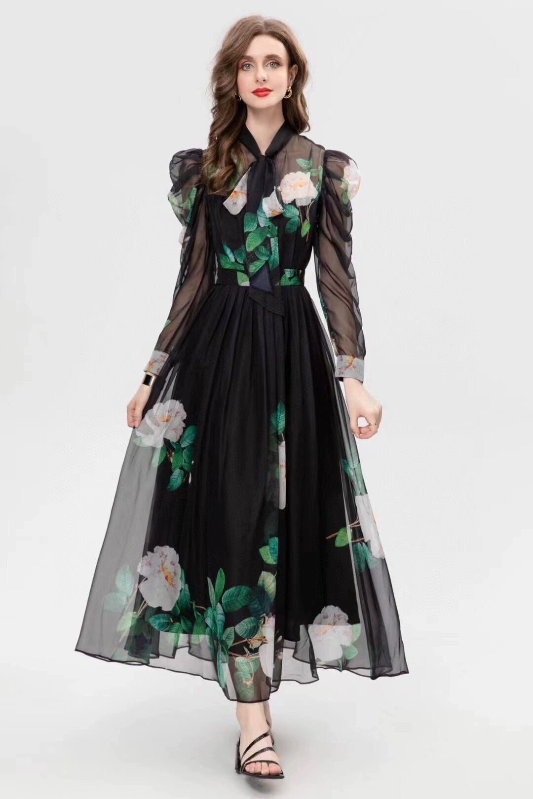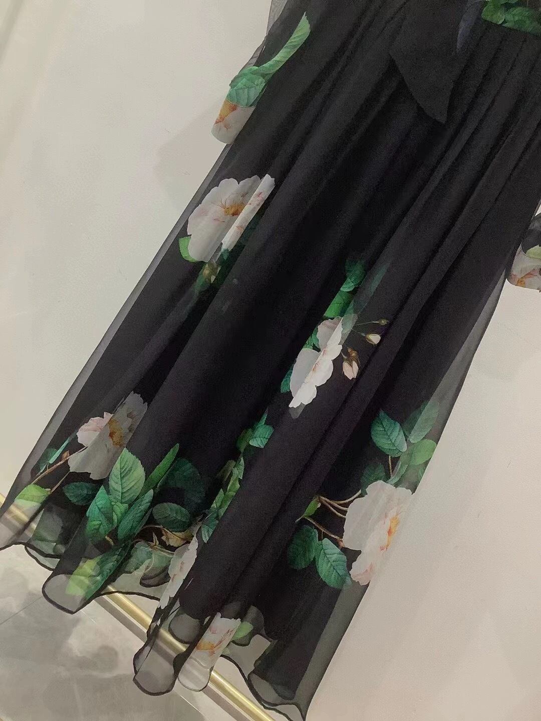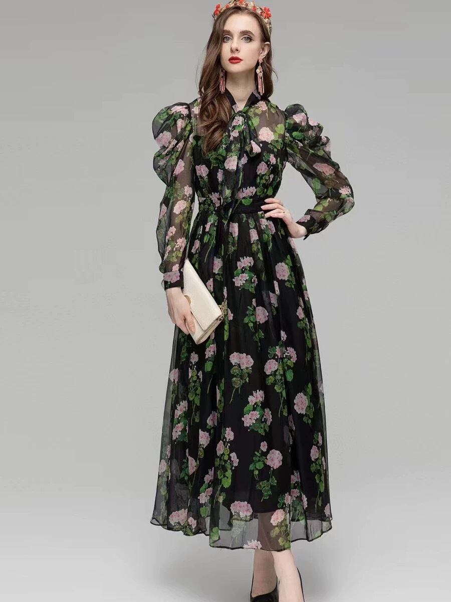 2XLまで❣️】ワンピース 花柄 フラワー エレガント 可愛い 黒 花柄