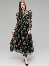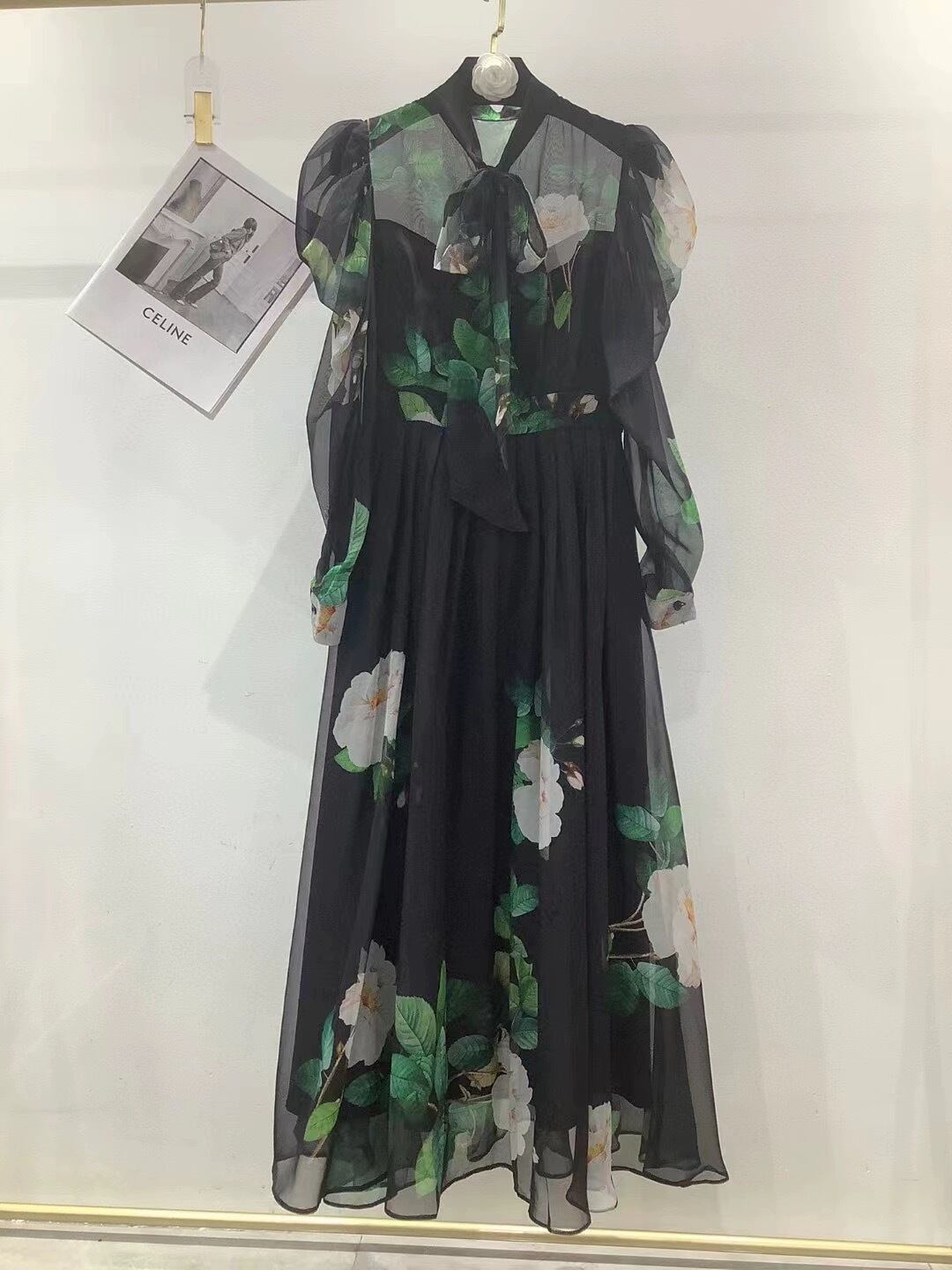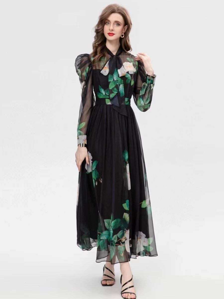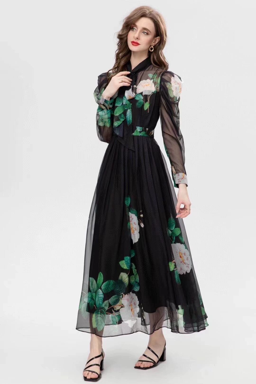 2XLまで❣️】ワンピース 花柄 フラワー エレガント 可愛い 黒 花柄