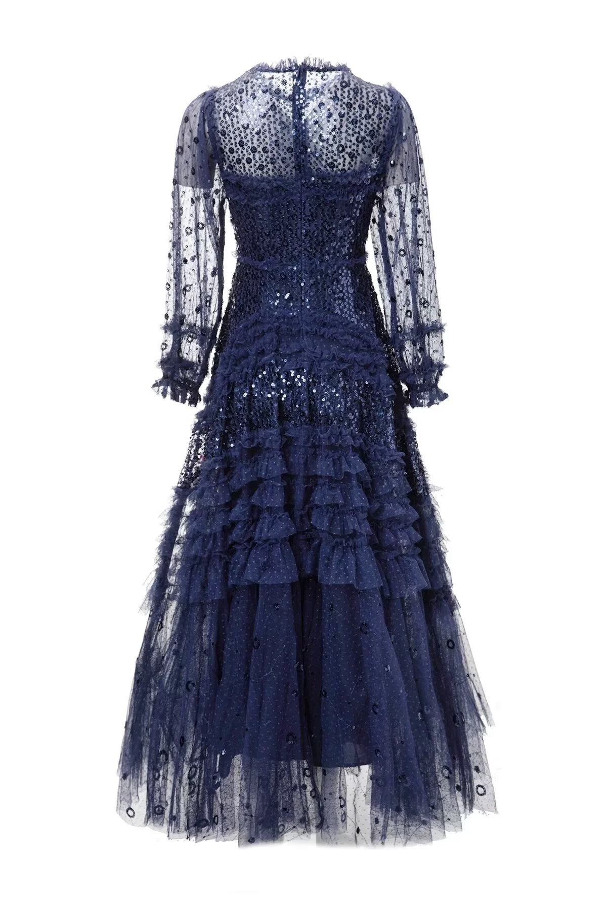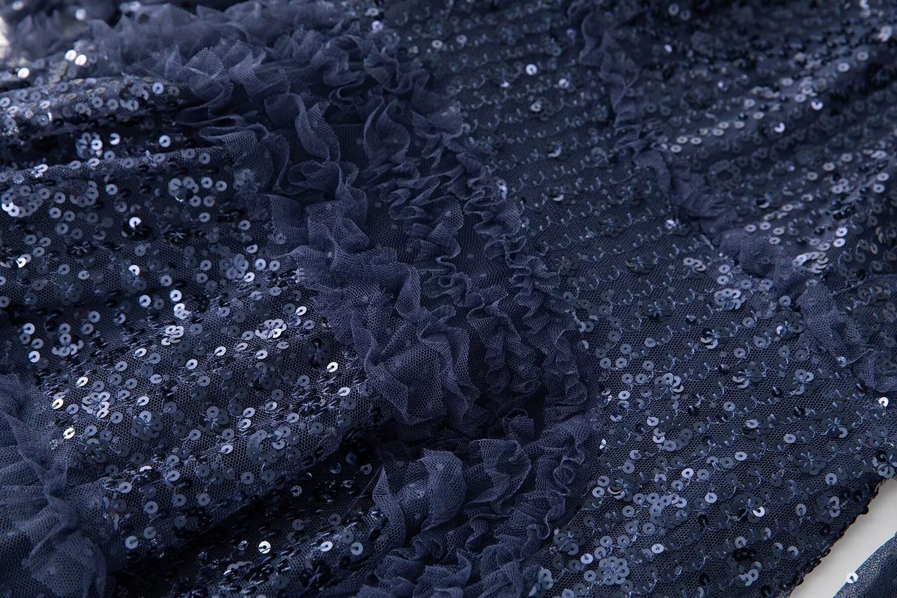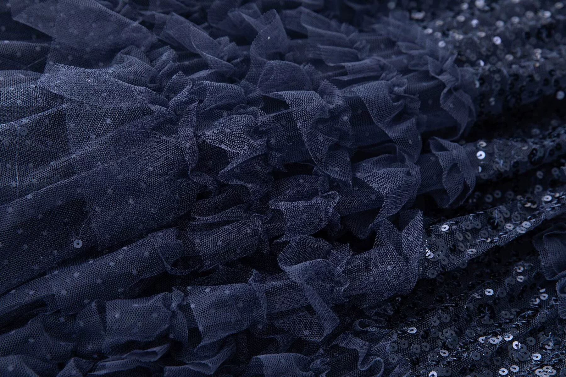 ネイビー ワンピース キラキラ スパンコール ラインストーン シースルー ブラウス スカート ワンピース ドレス XL