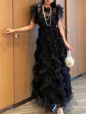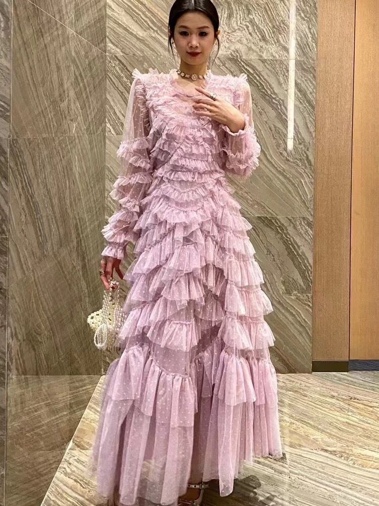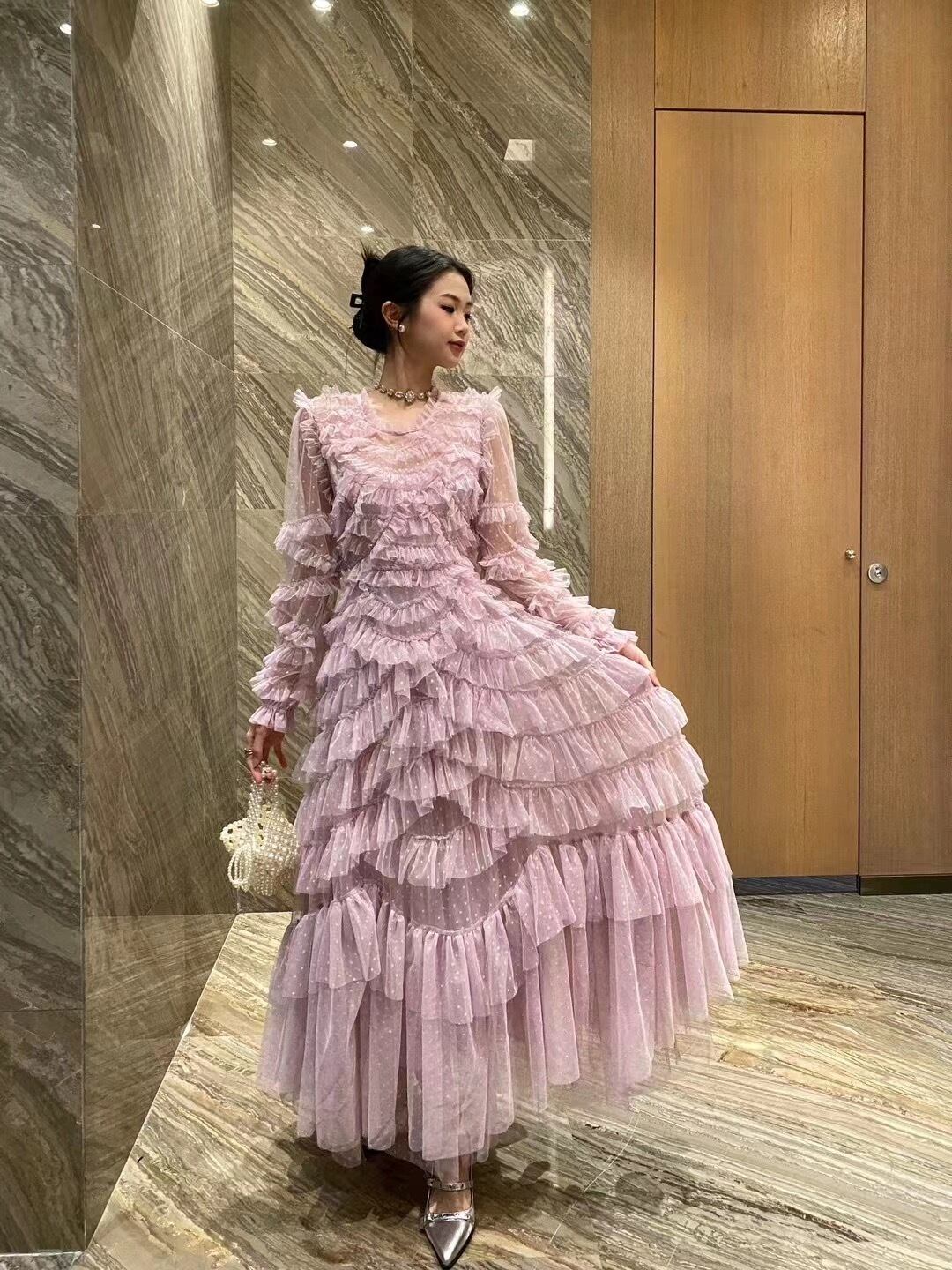 ワンピース ピンク 紫 白 ドレス ブラウス スカート エレガント XL パーティー マキシ ワンピース フリル