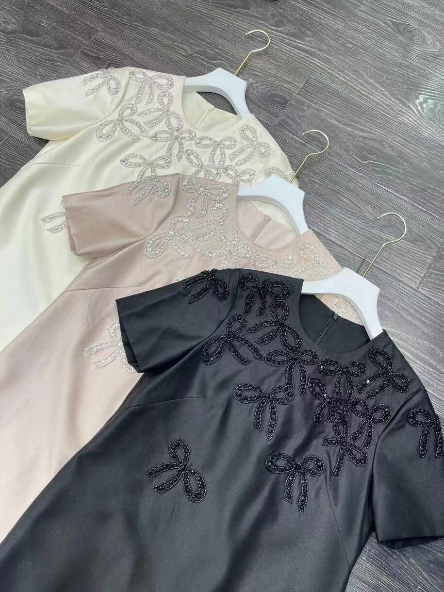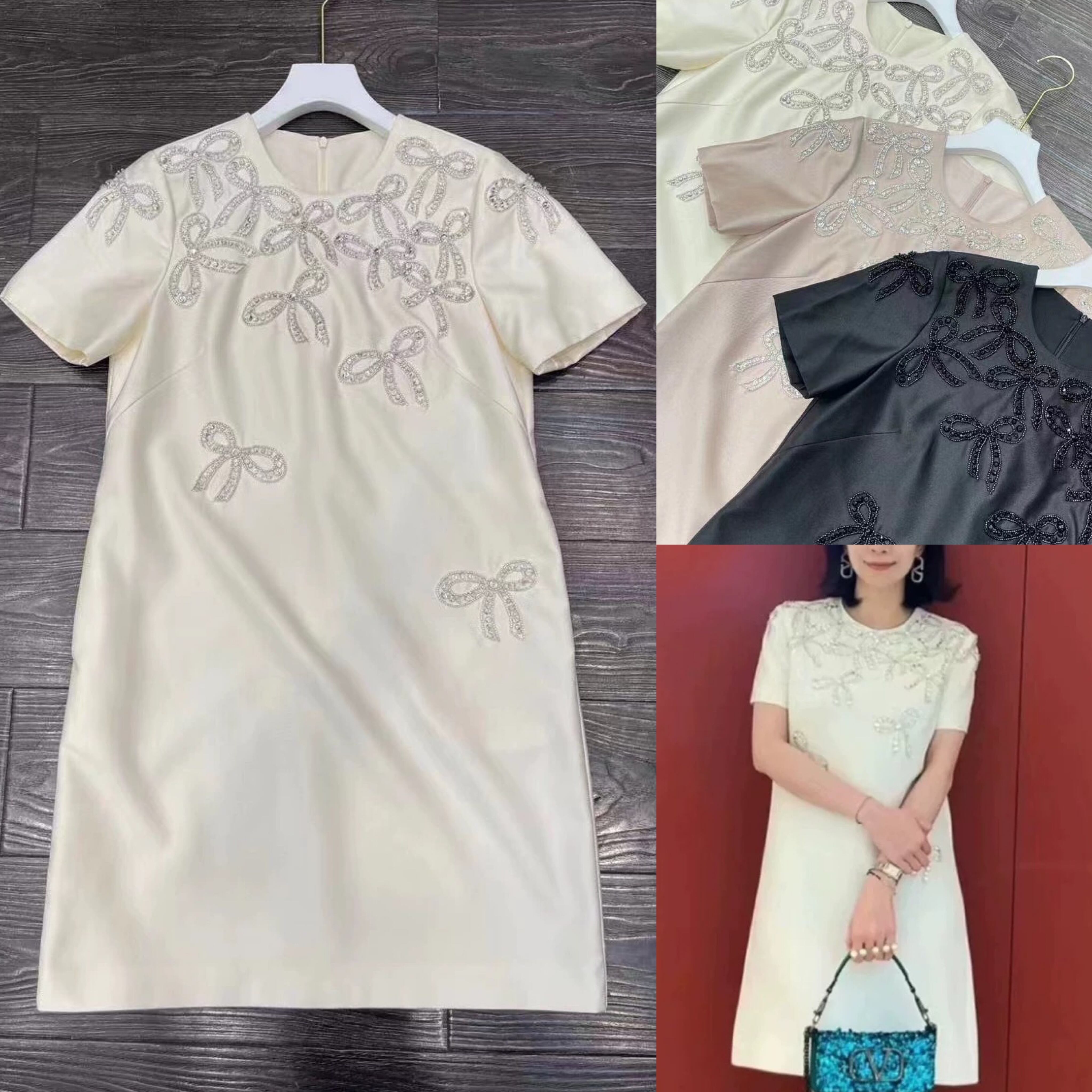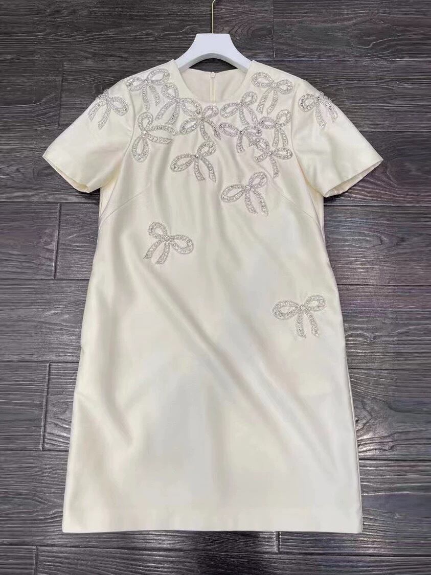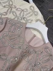 ワンピース ベージュ ピンク 白 リボン ラインストーン キラキラ デコレーション 白 ワンピース ドレス XL