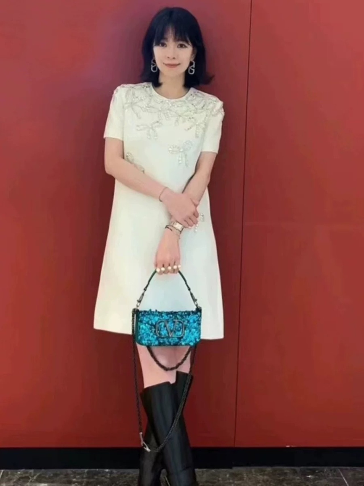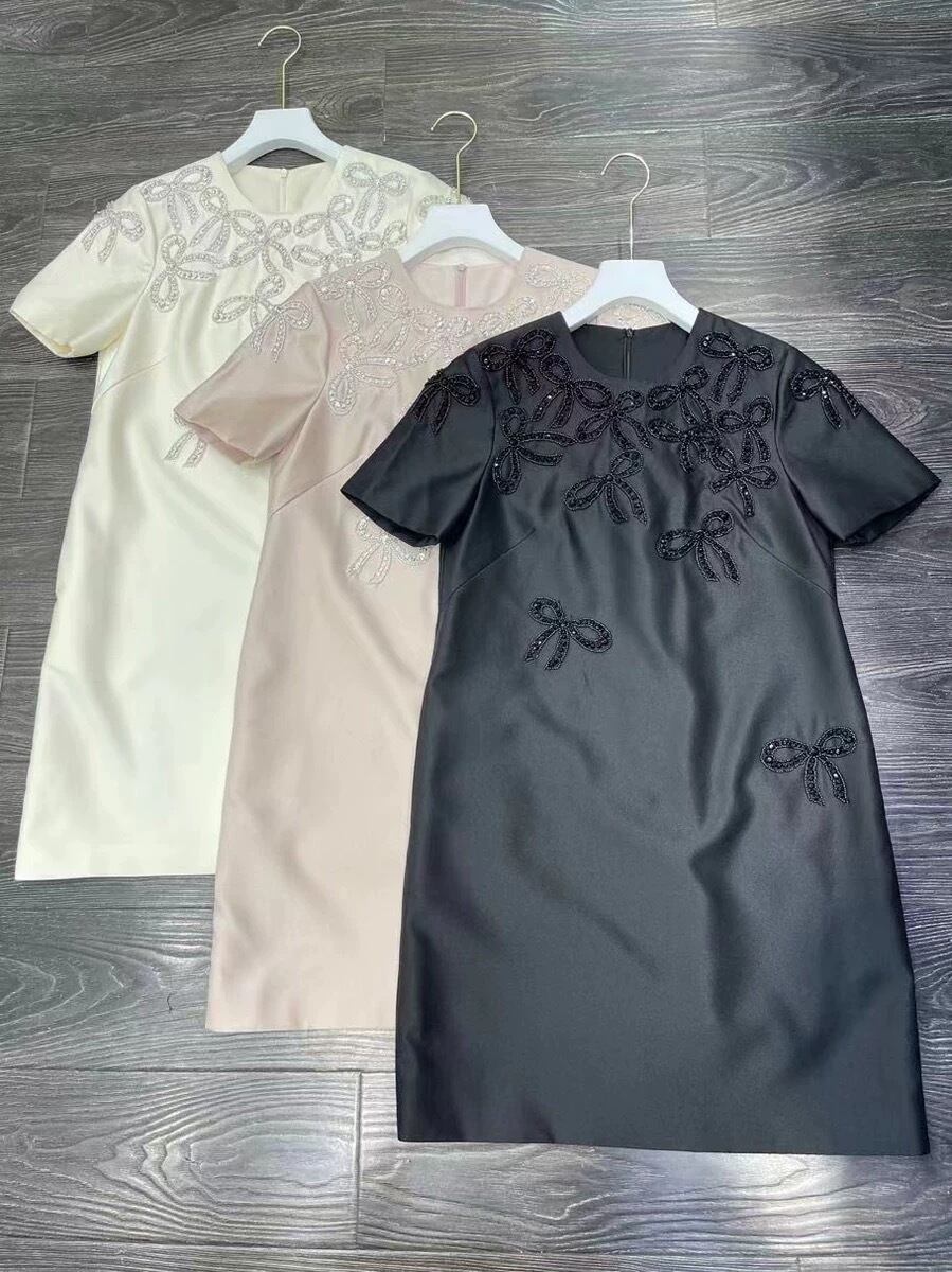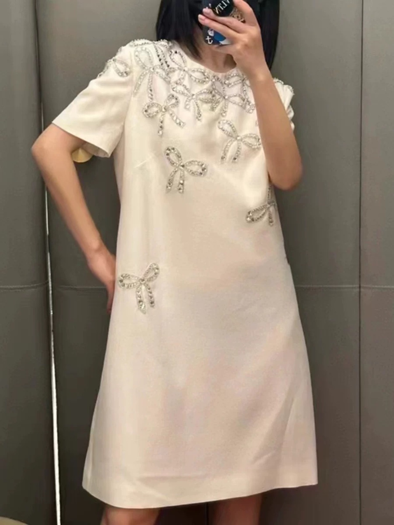 ワンピース ベージュ ピンク 白 リボン ラインストーン キラキラ デコレーション 白 ワンピース ドレス XL