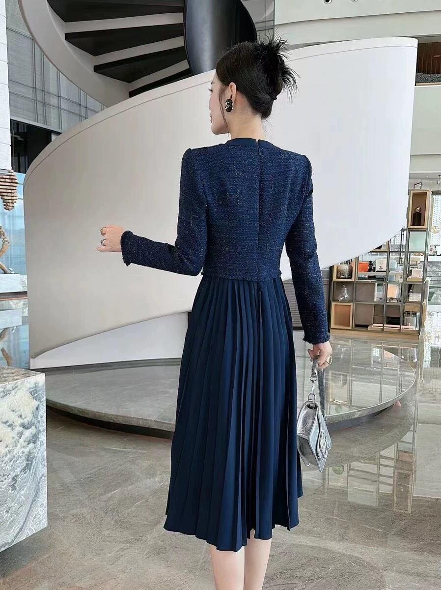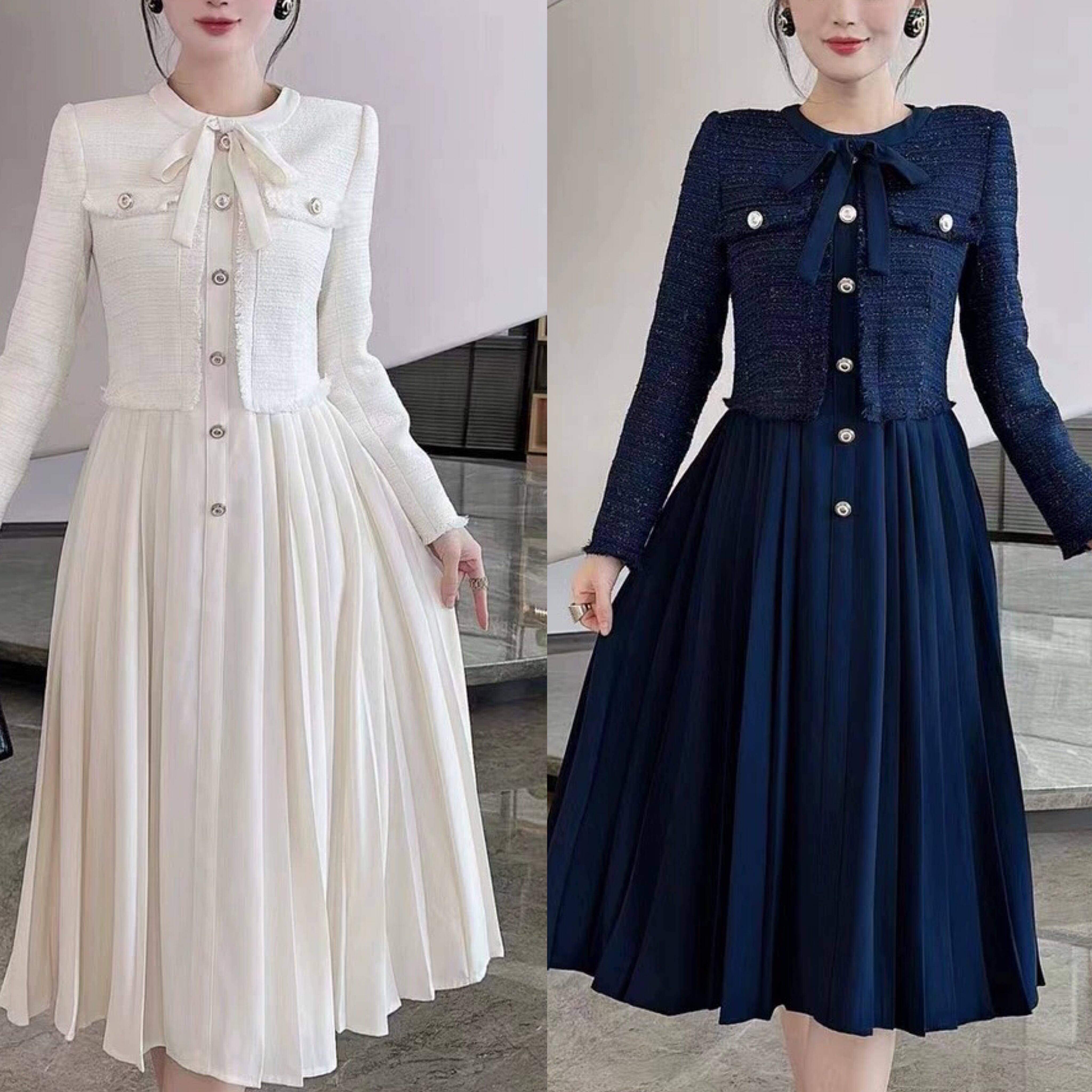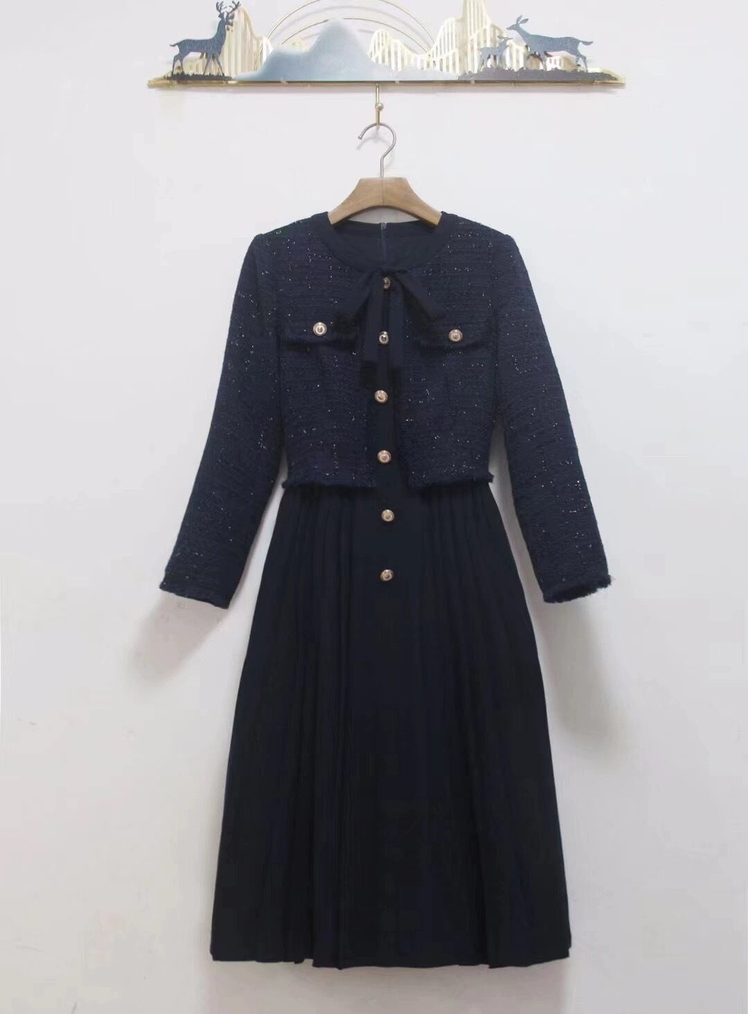ワンピース リボン エレガント 黒 ネイビー プリーツ スーツ