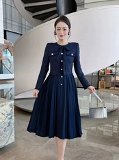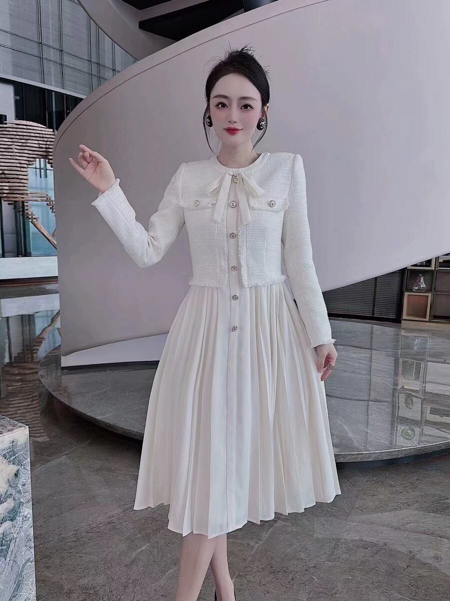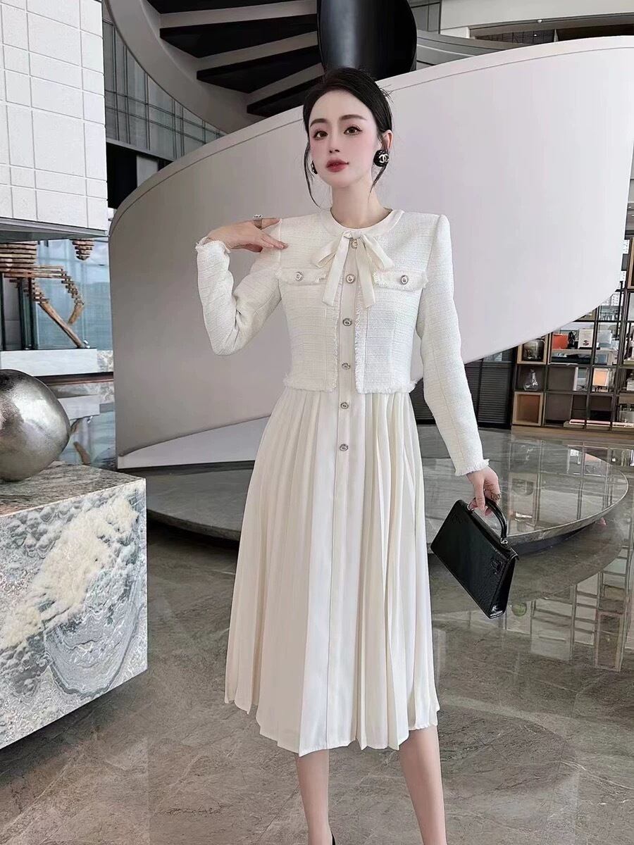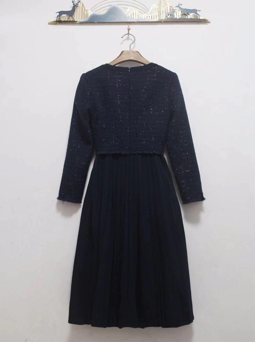 ワンピース リボン エレガント 黒 ネイビー プリーツ スーツ
