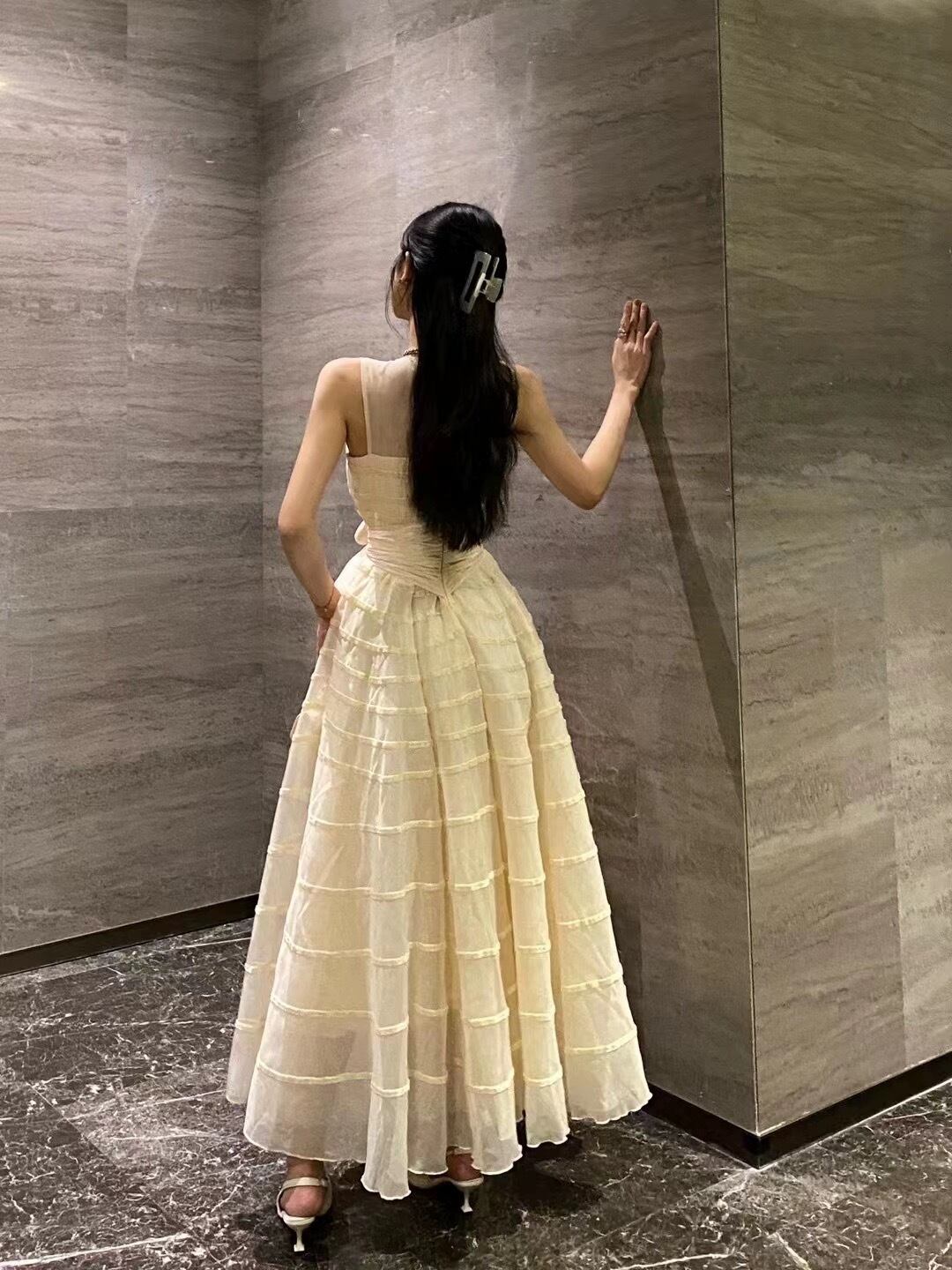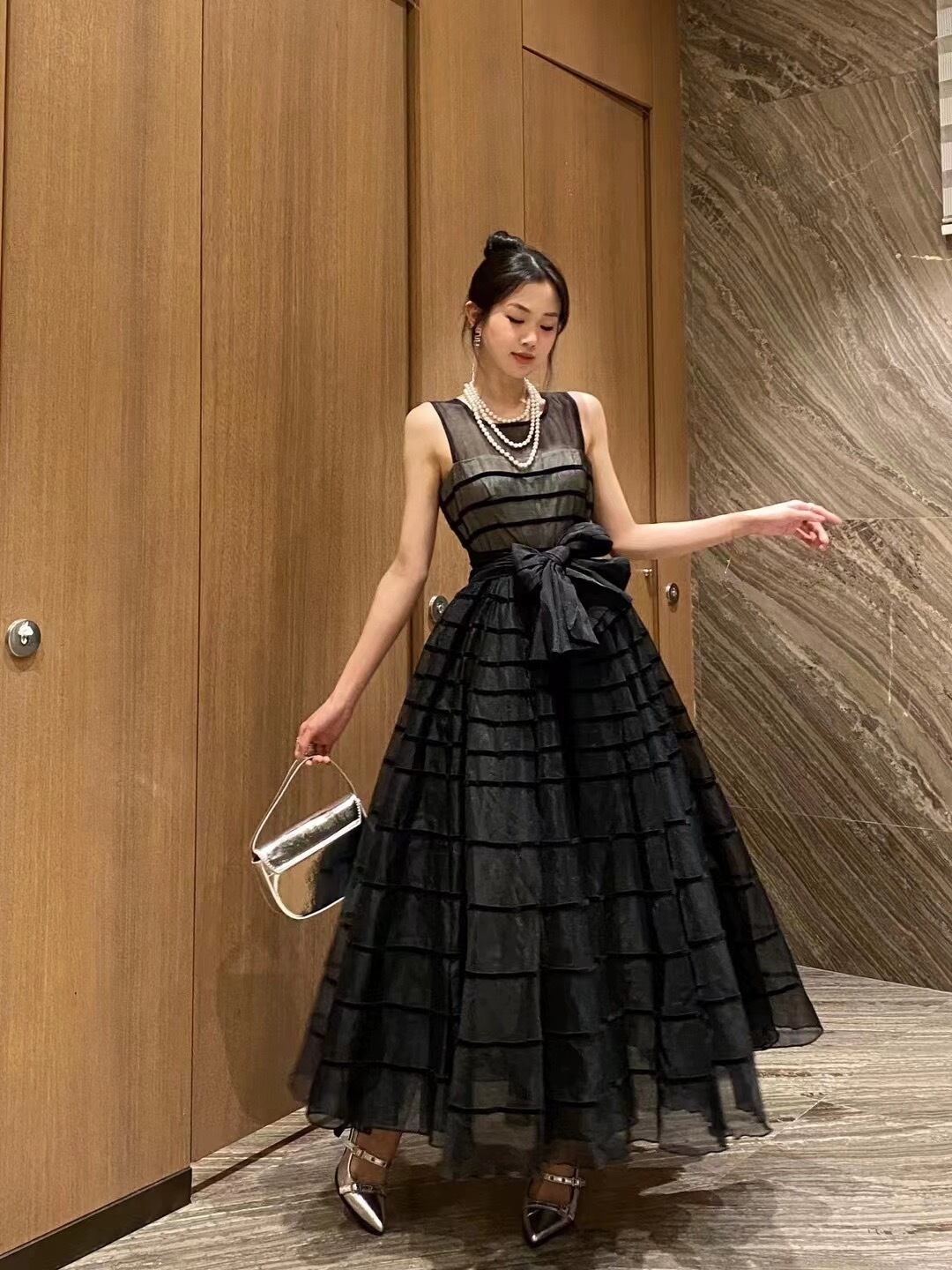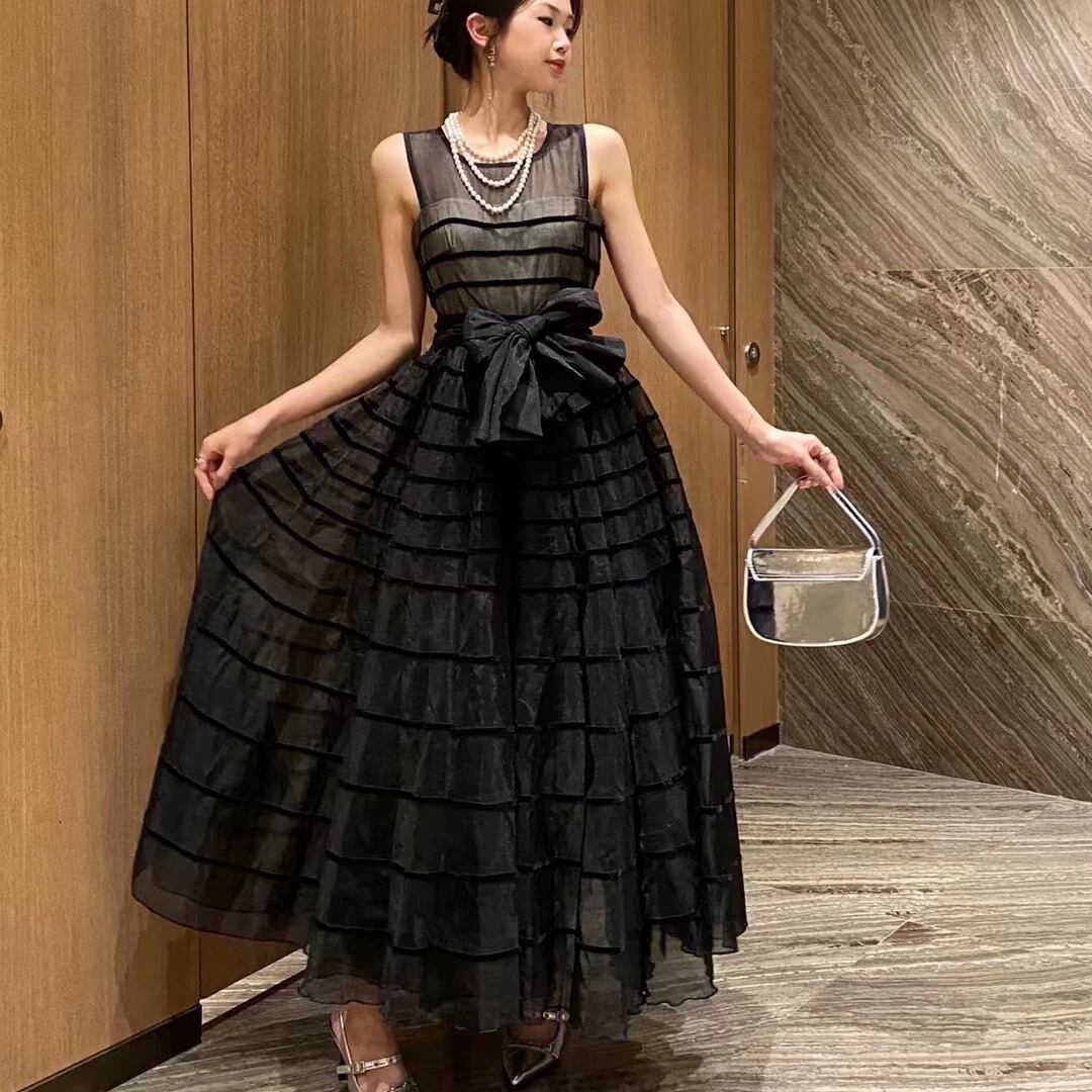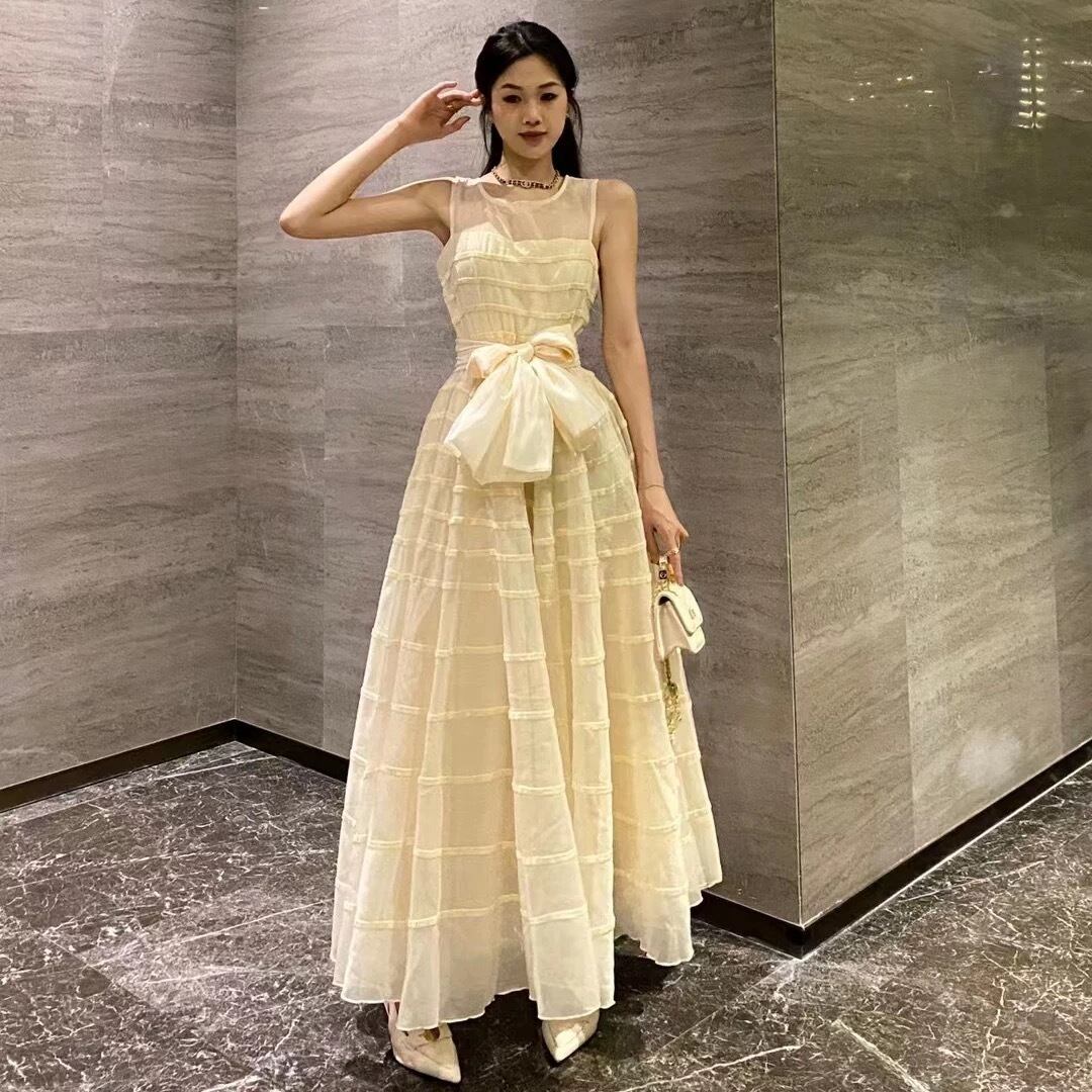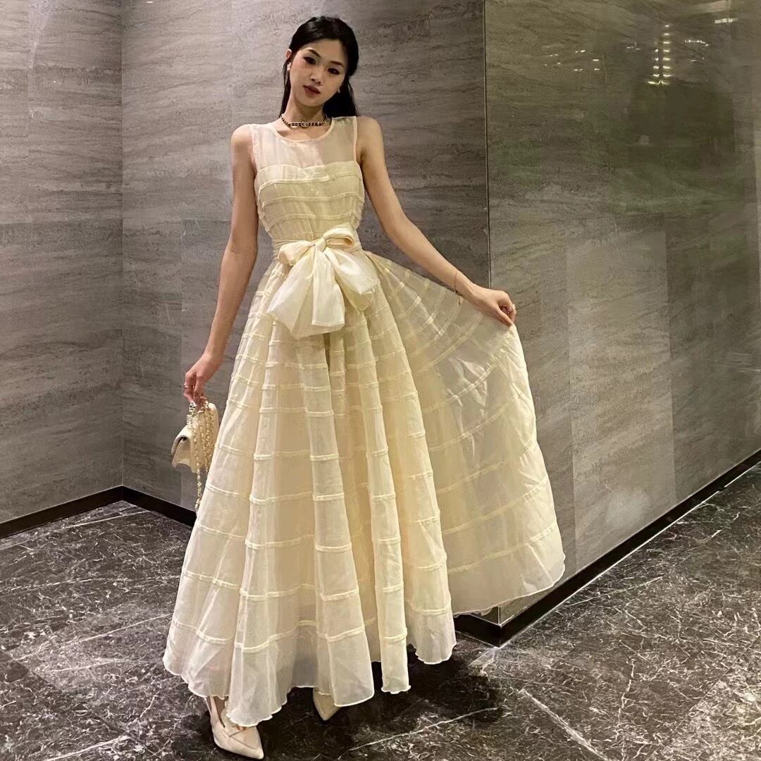 ワンピース ベージュ ホワイト 黒 リボン XL マキシ ワンピース ドレス