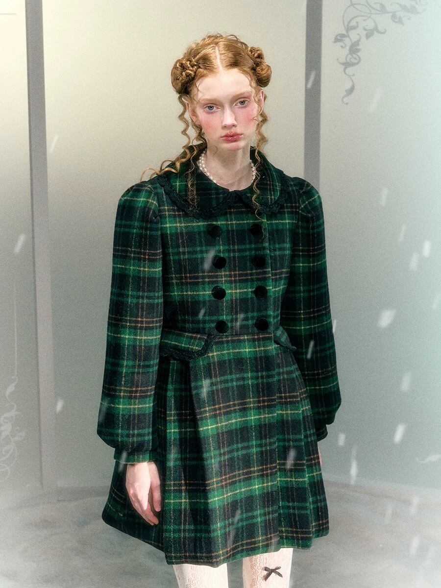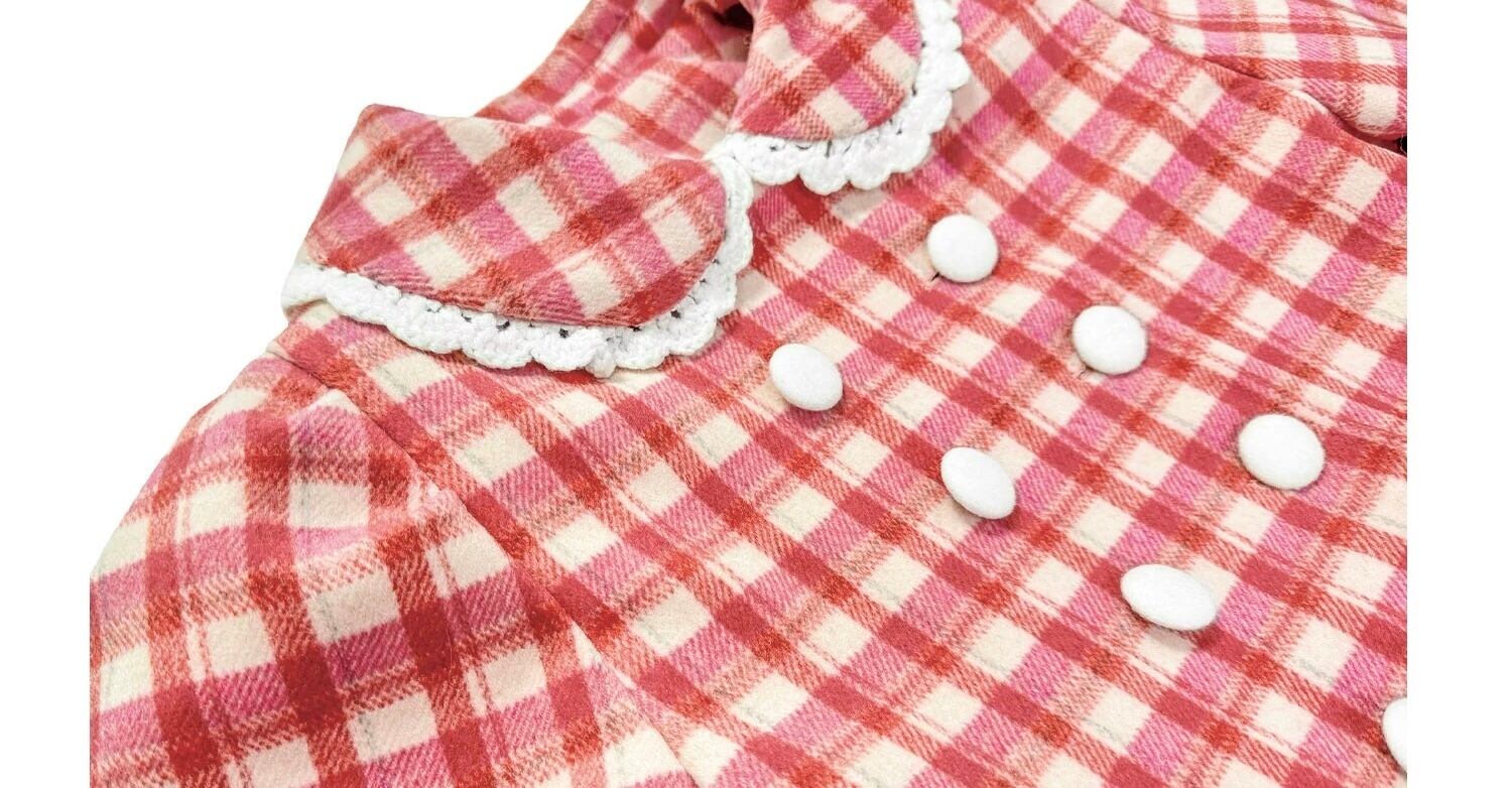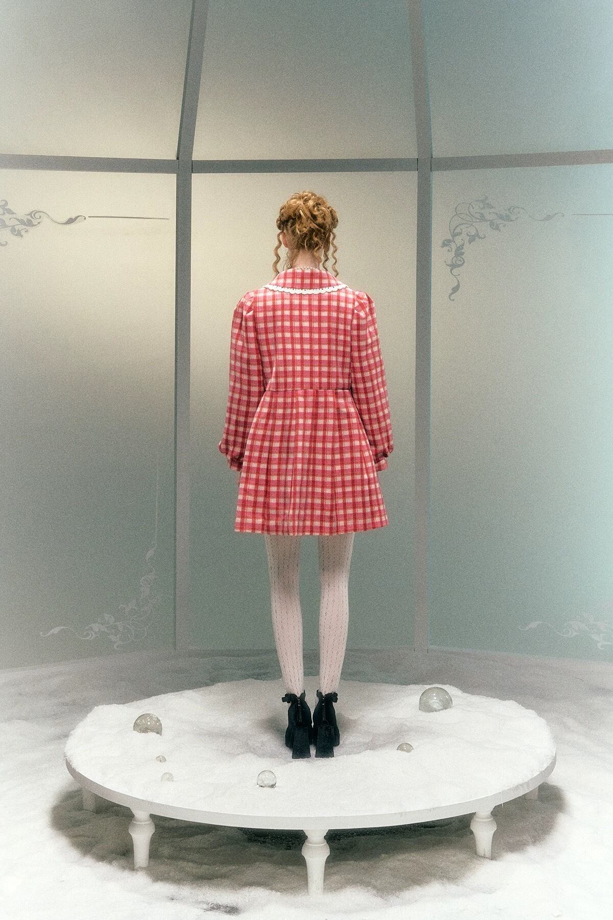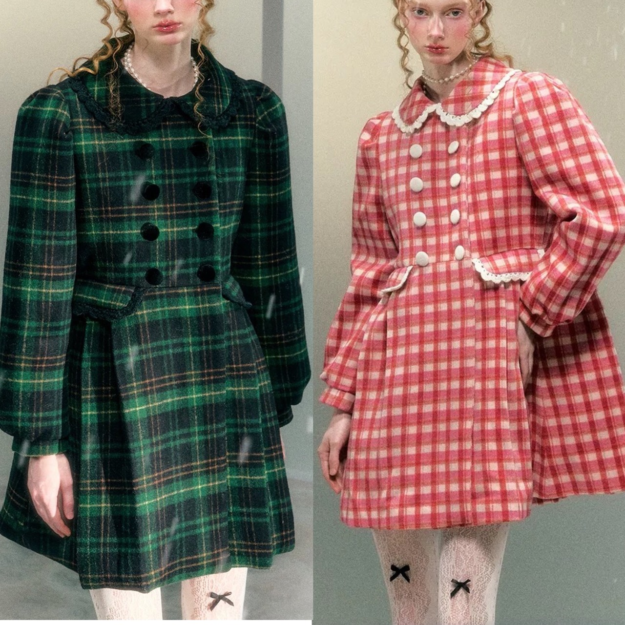 チェック 赤 スーツ アウター 丸襟 緑 ジャケット コート ガーリー