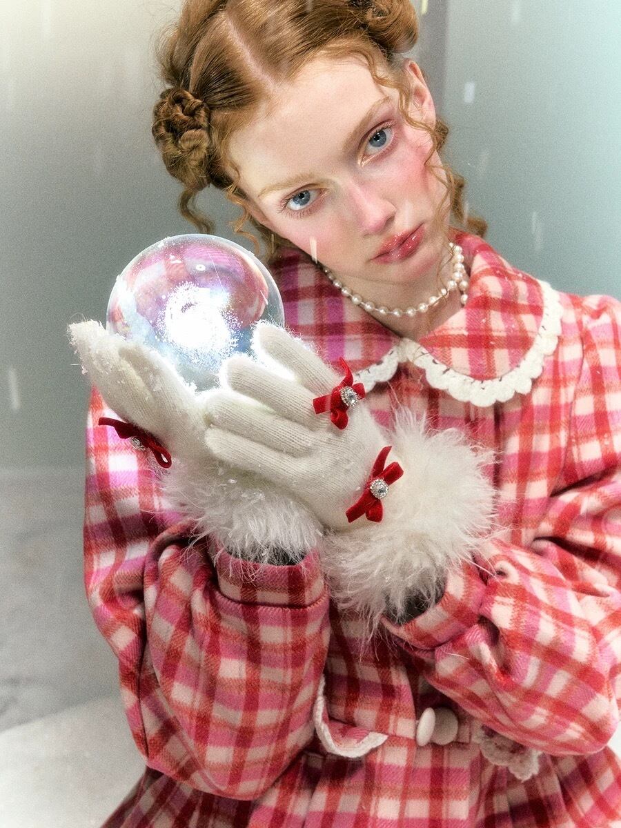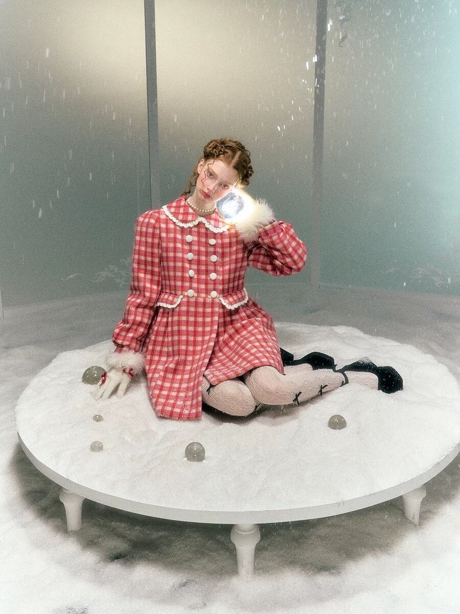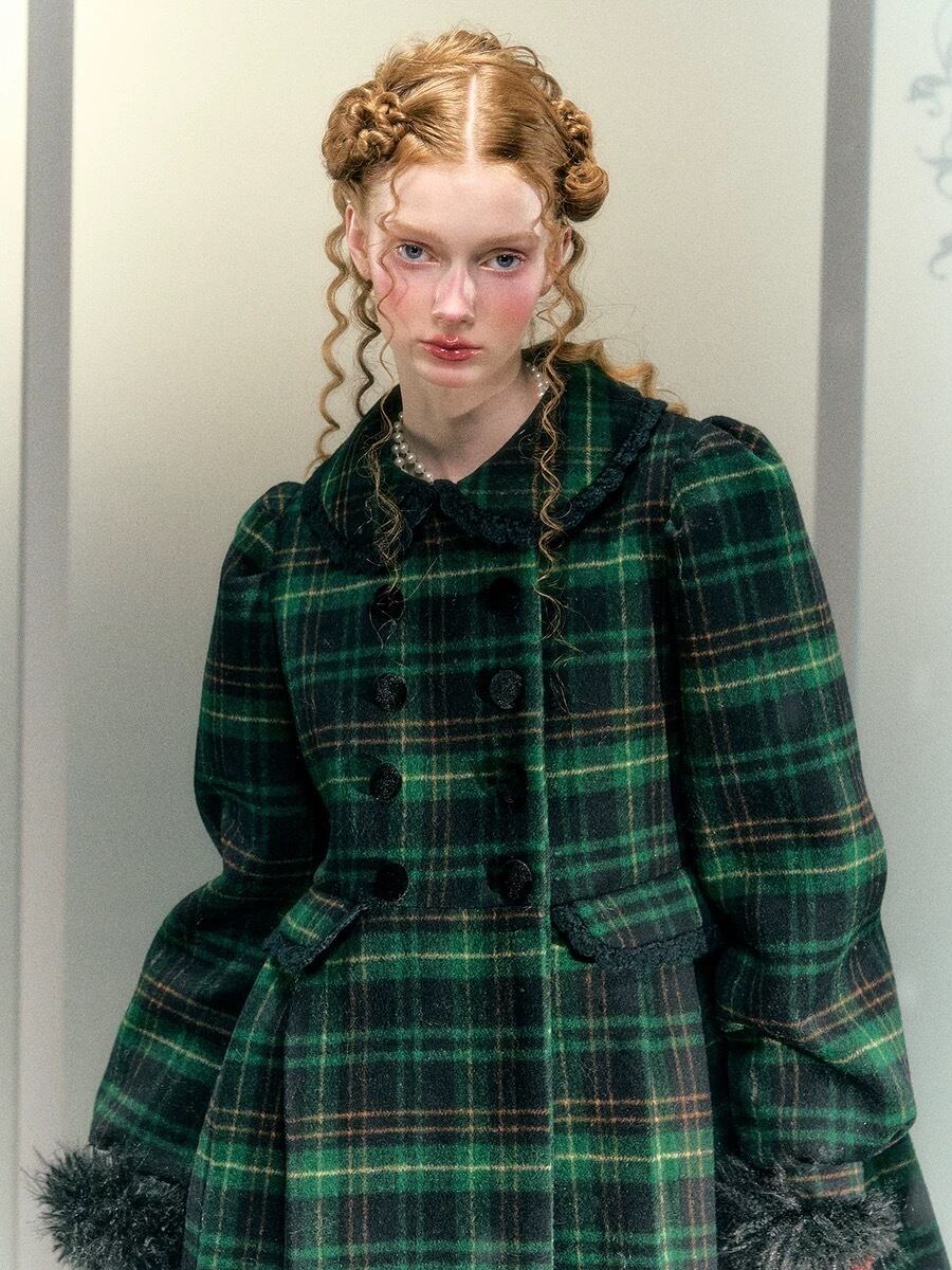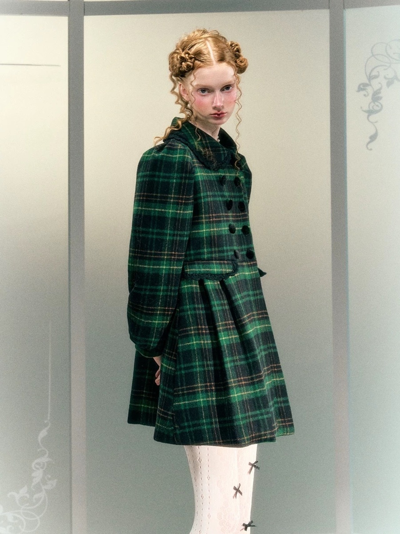 チェック 赤 スーツ アウター 丸襟 緑 ジャケット コート ガーリー