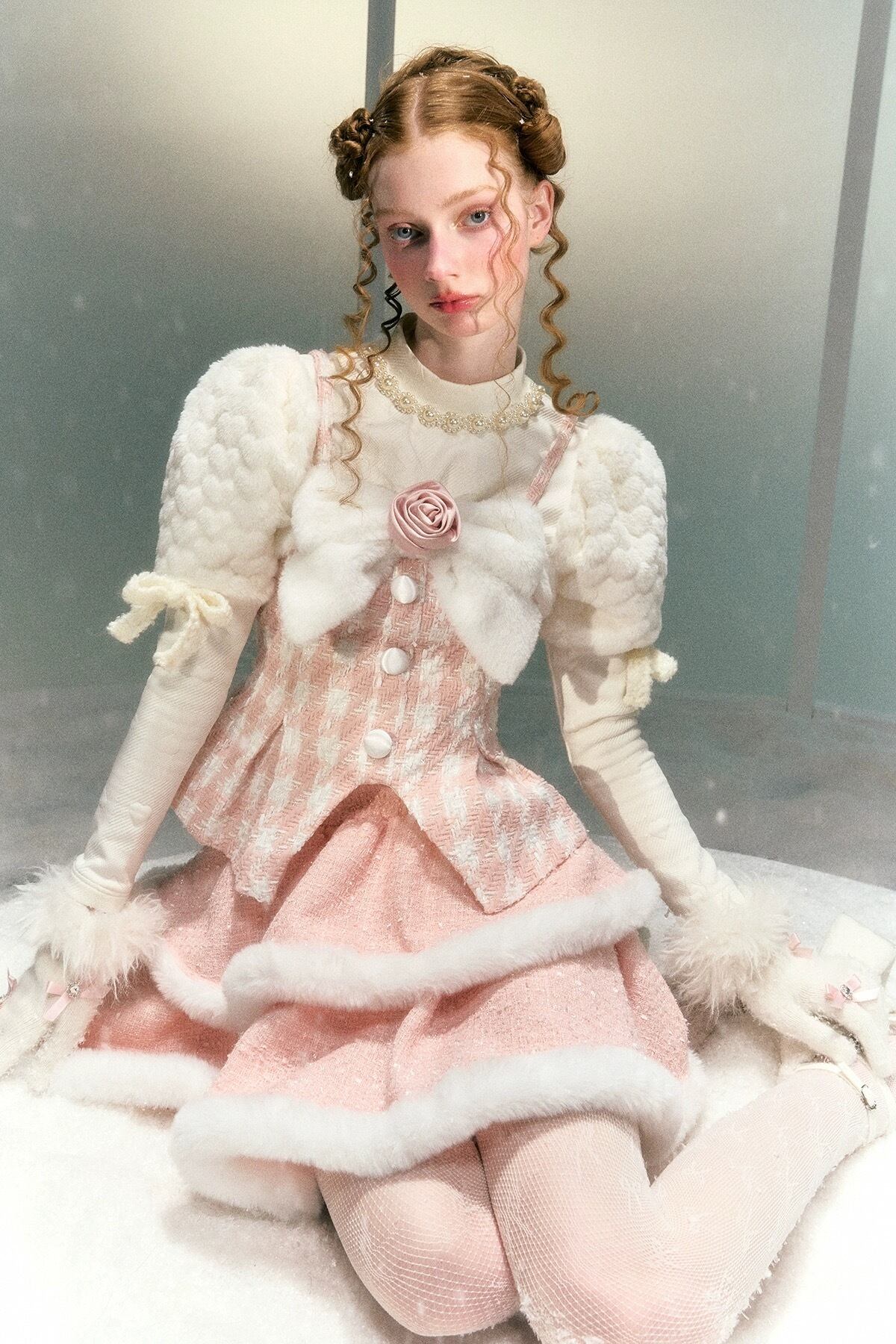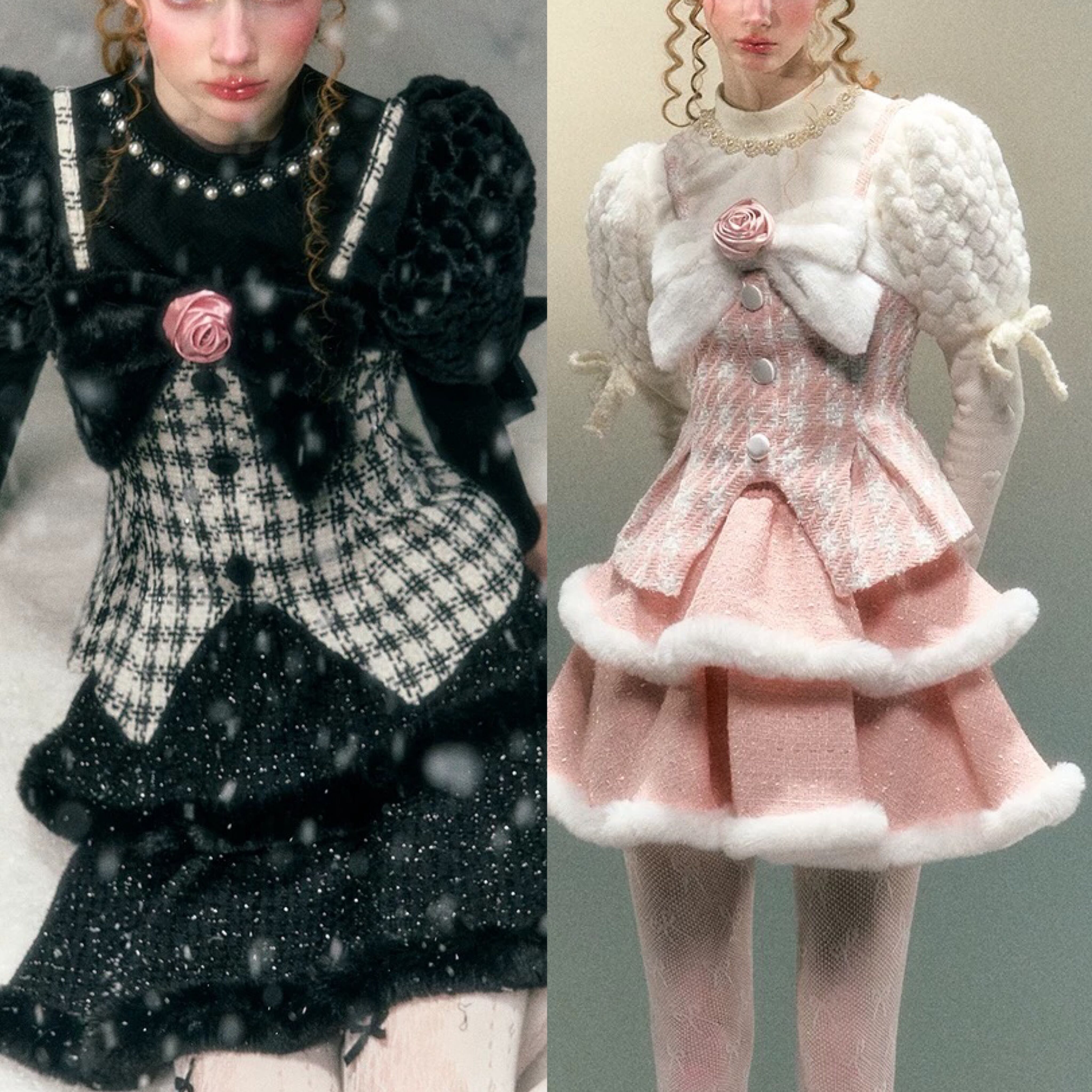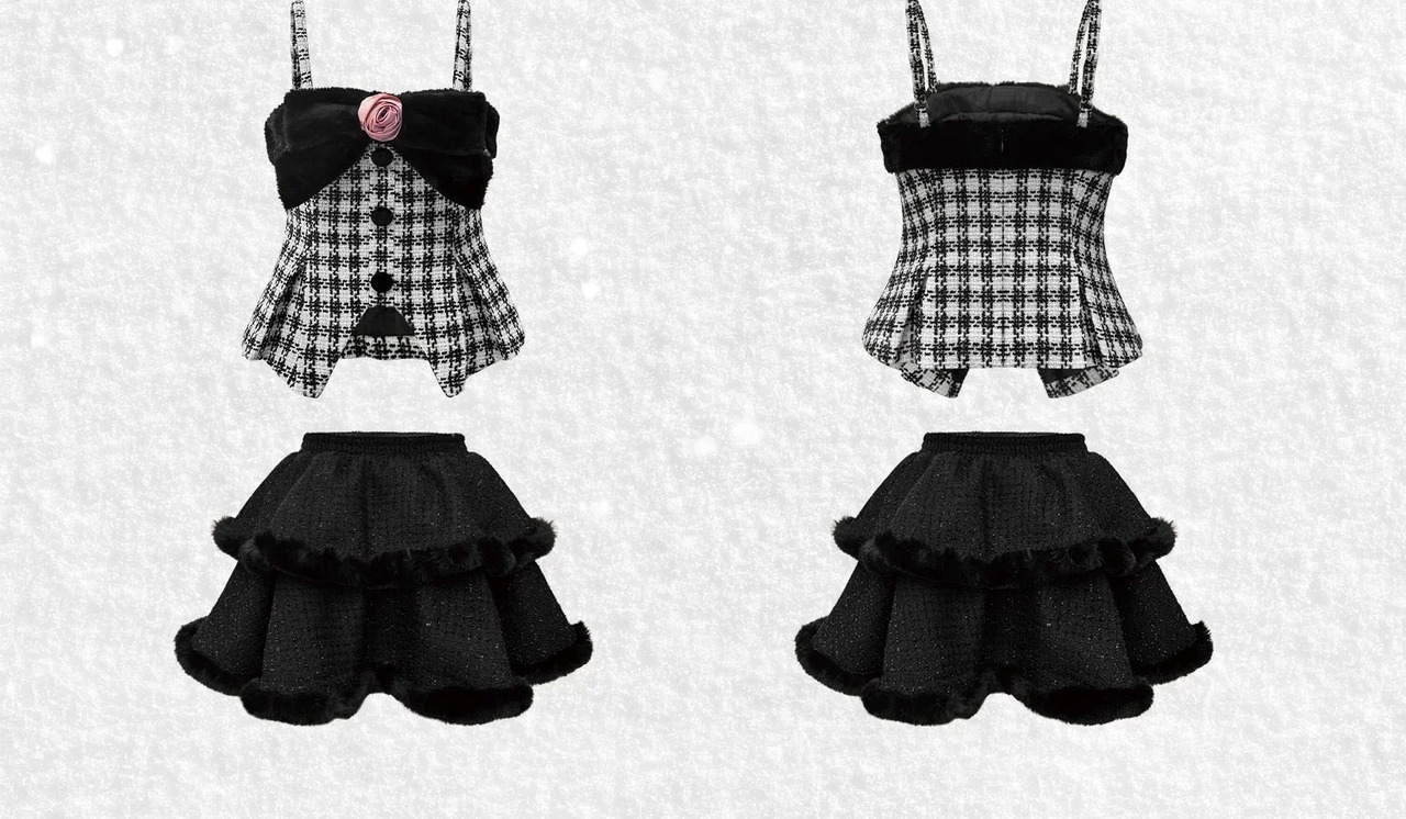 【トップス】ピンク 黒 ブラウス キャミソール チェック カメリア ブラウス