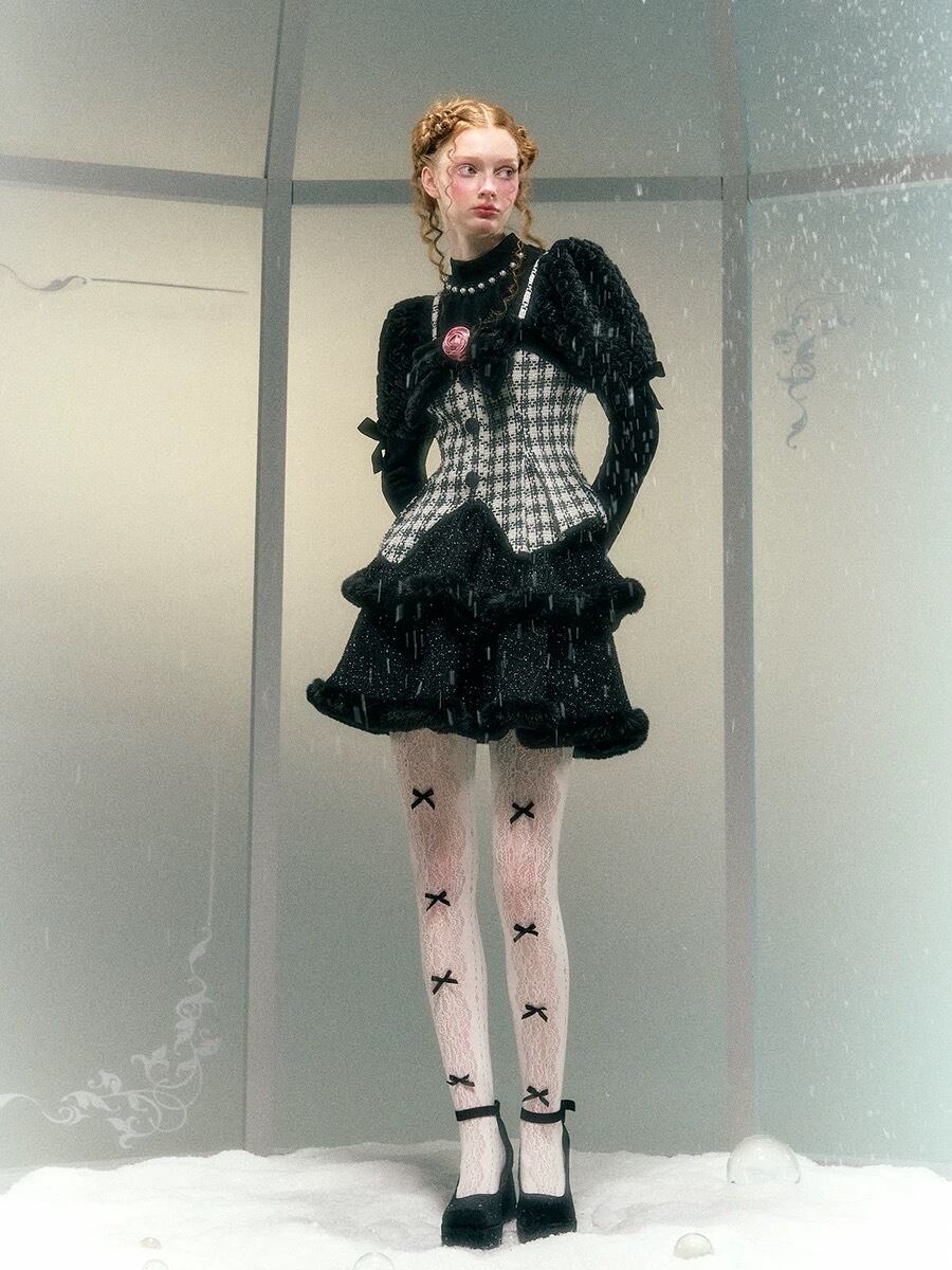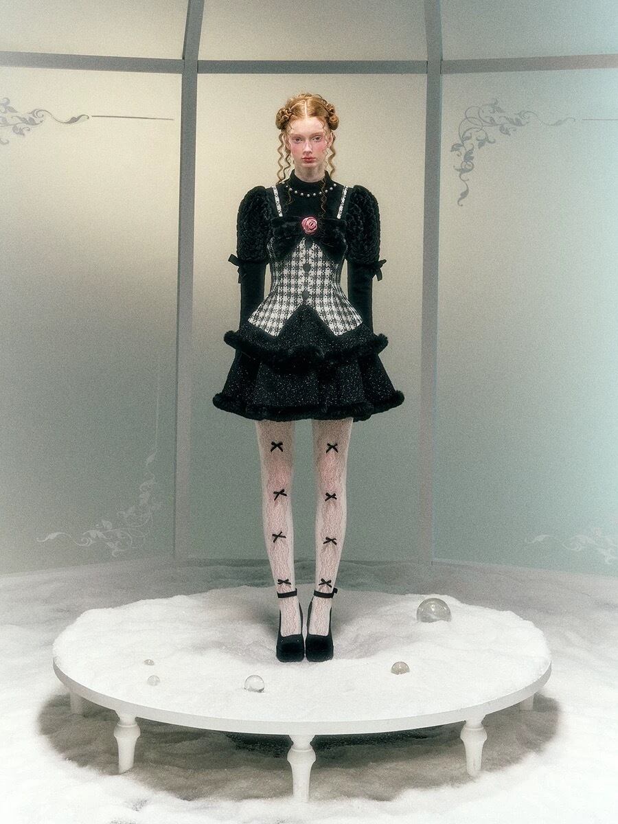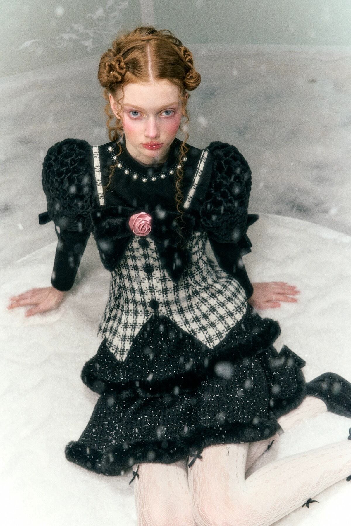 【トップス】ピンク 黒 ブラウス キャミソール チェック カメリア ブラウス