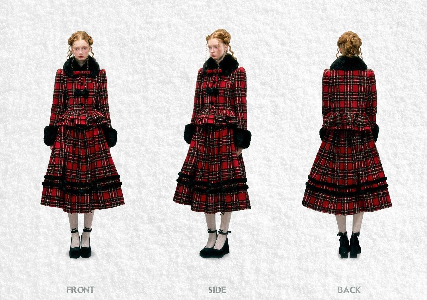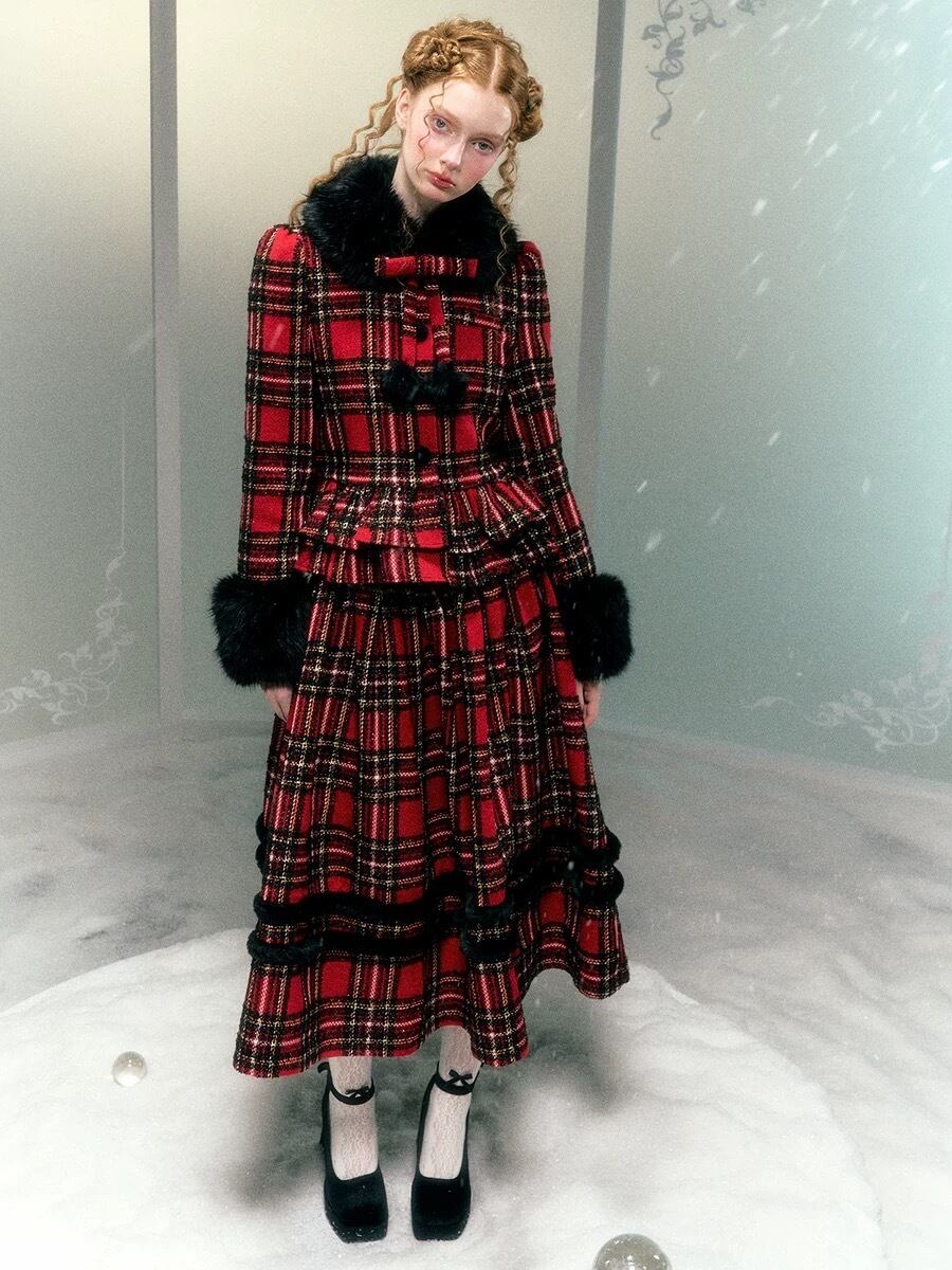 【ジャケット】赤 チェック アウター コート カーディガン ジャケット