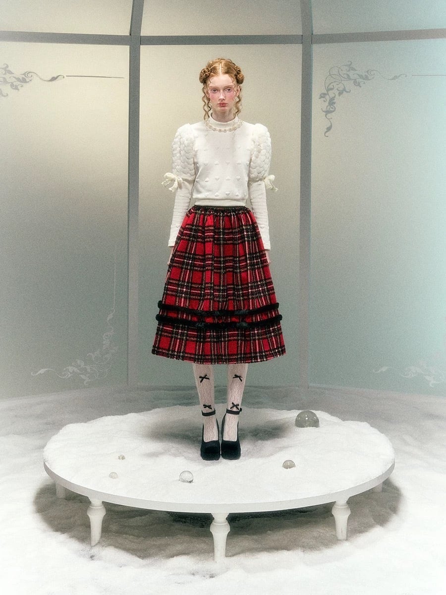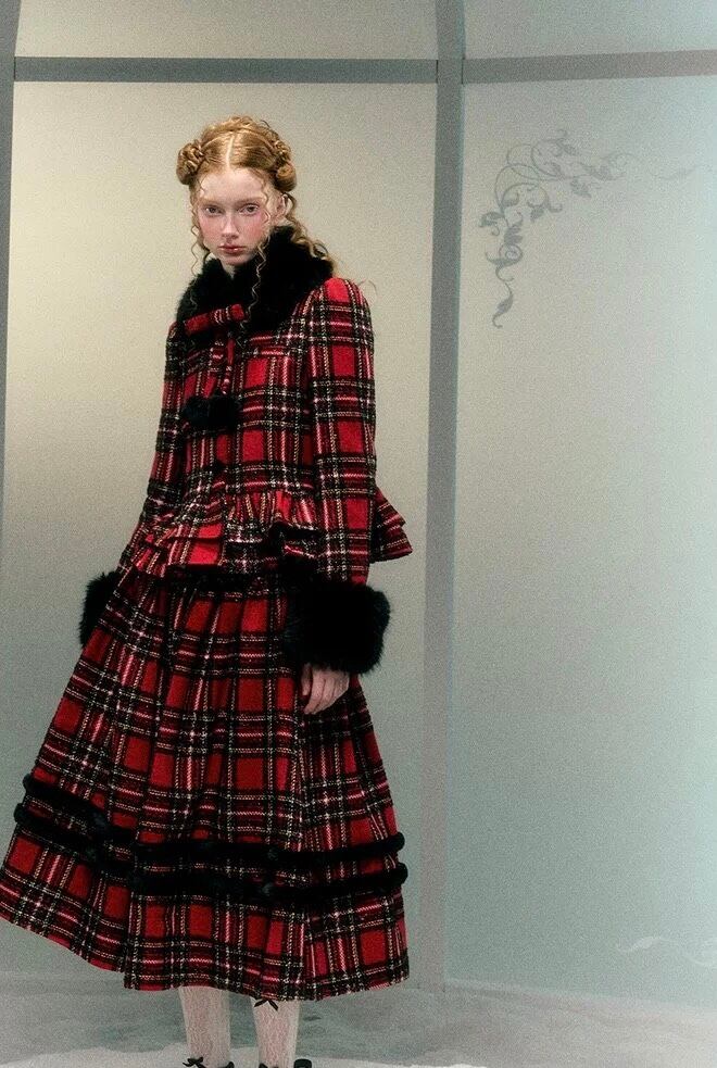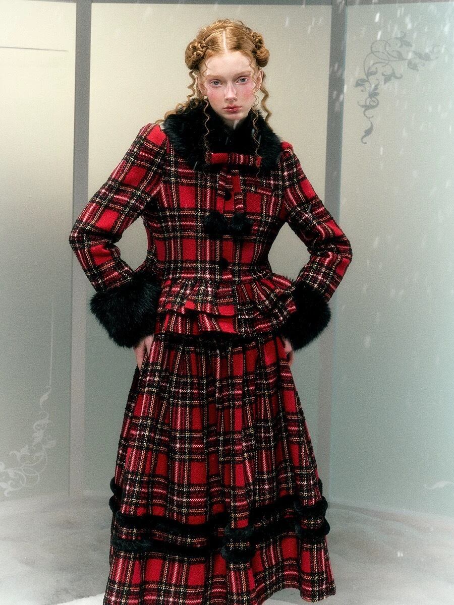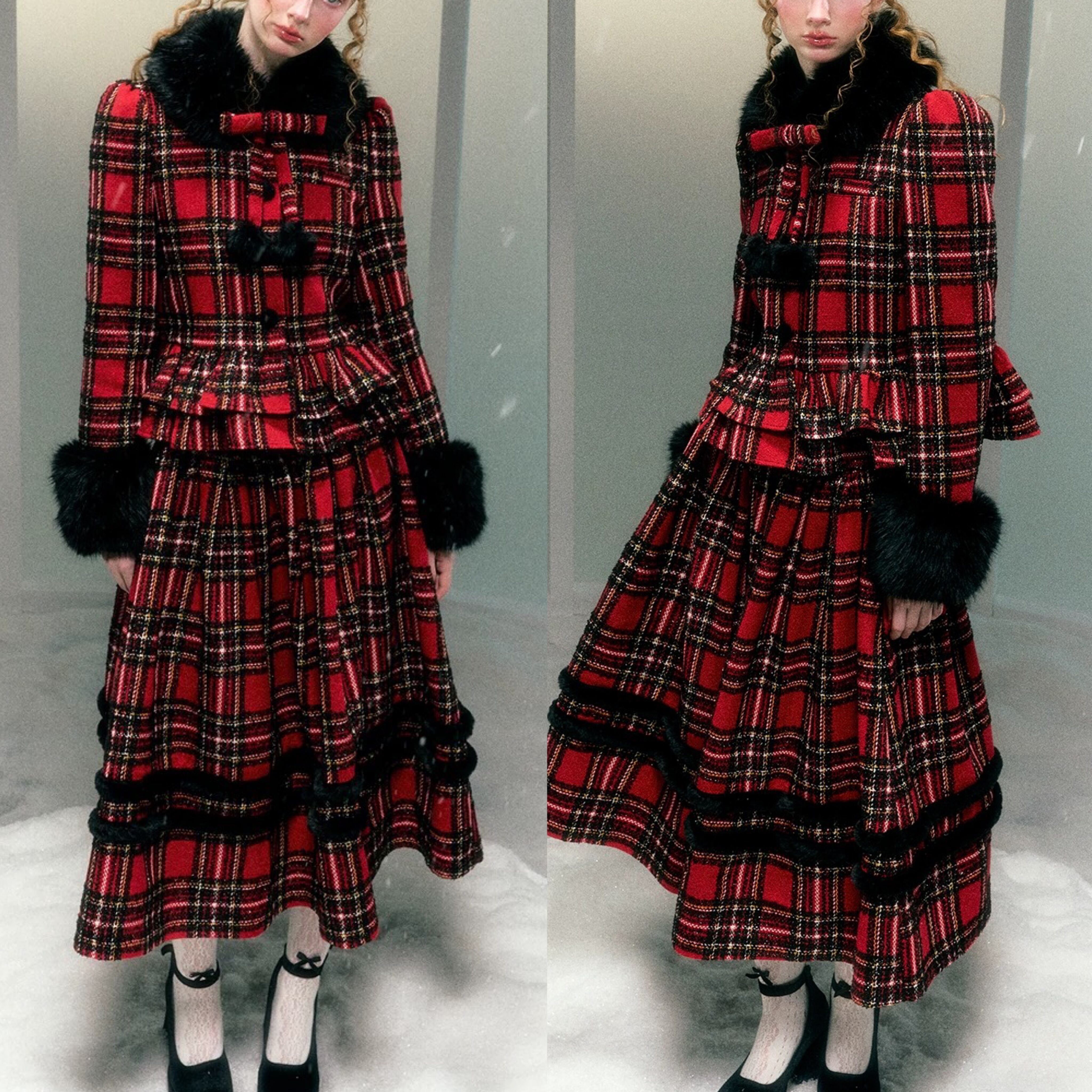 【スカート】赤 黒 ボトムス チェック スカート スーツ ツーピース