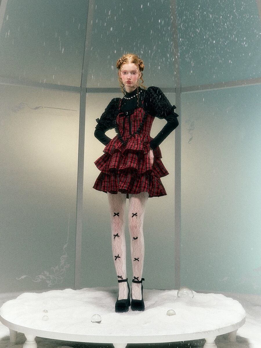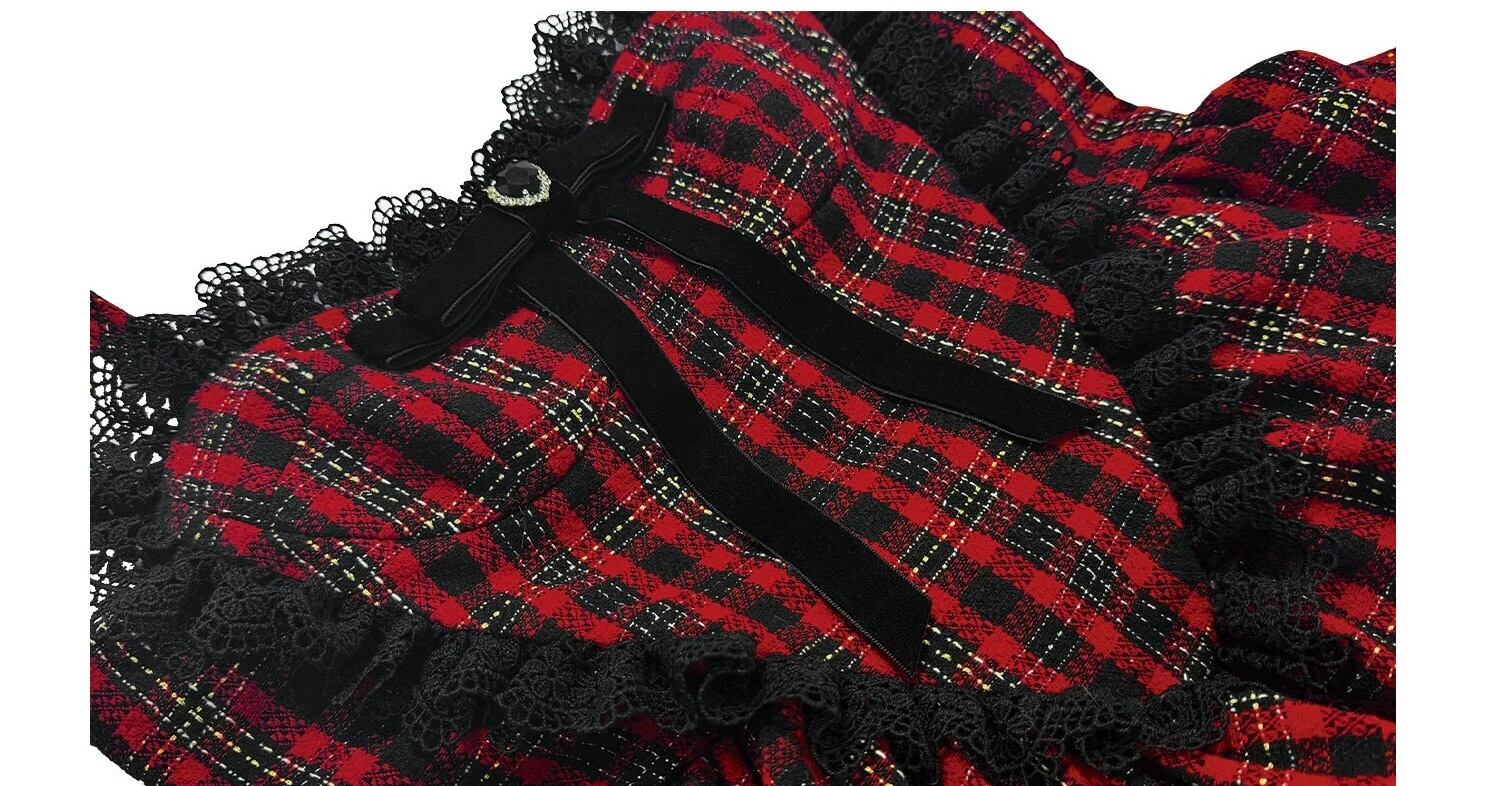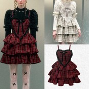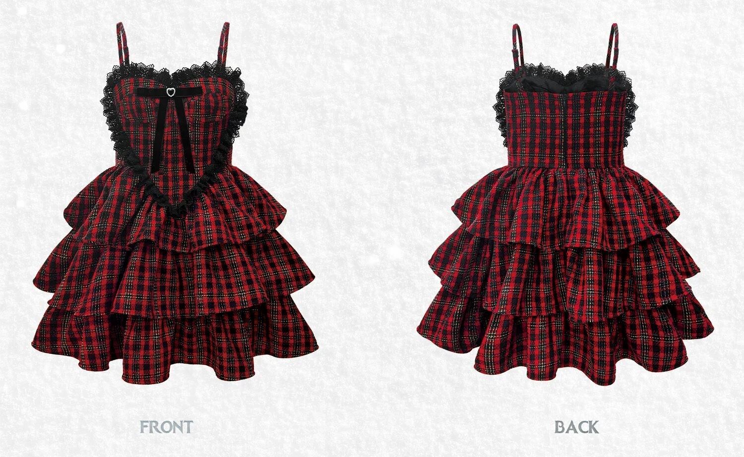 チェック グレー 赤 ワンピース キャミソール ミニスカート リボン