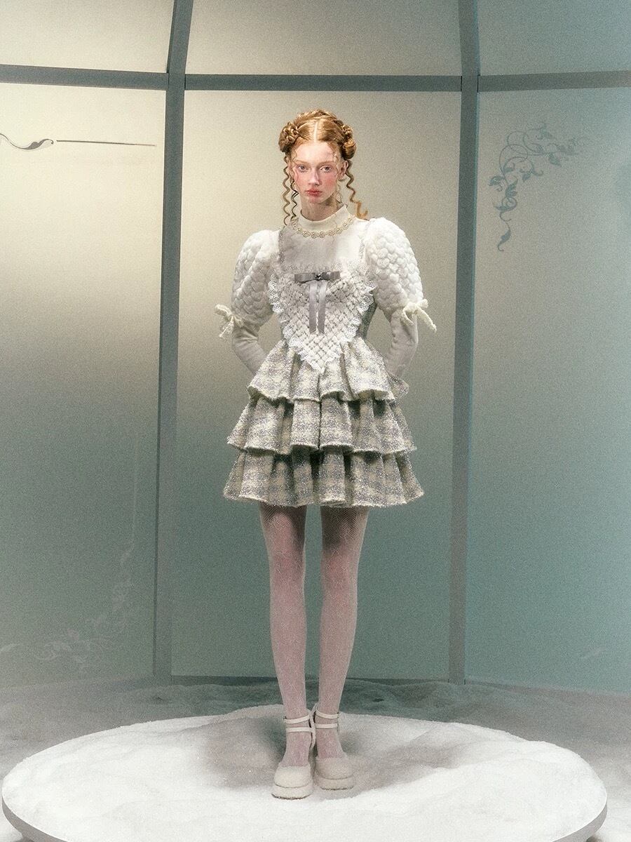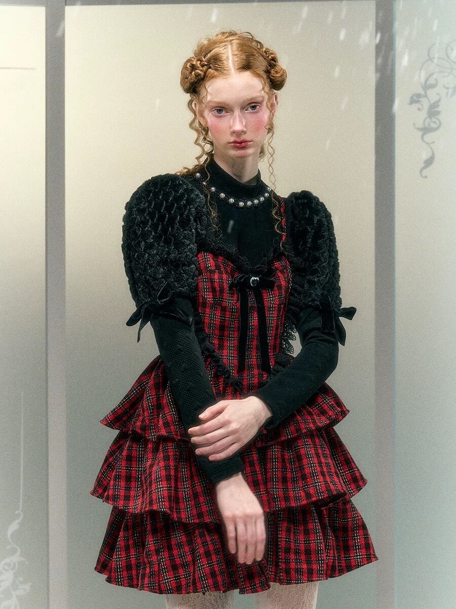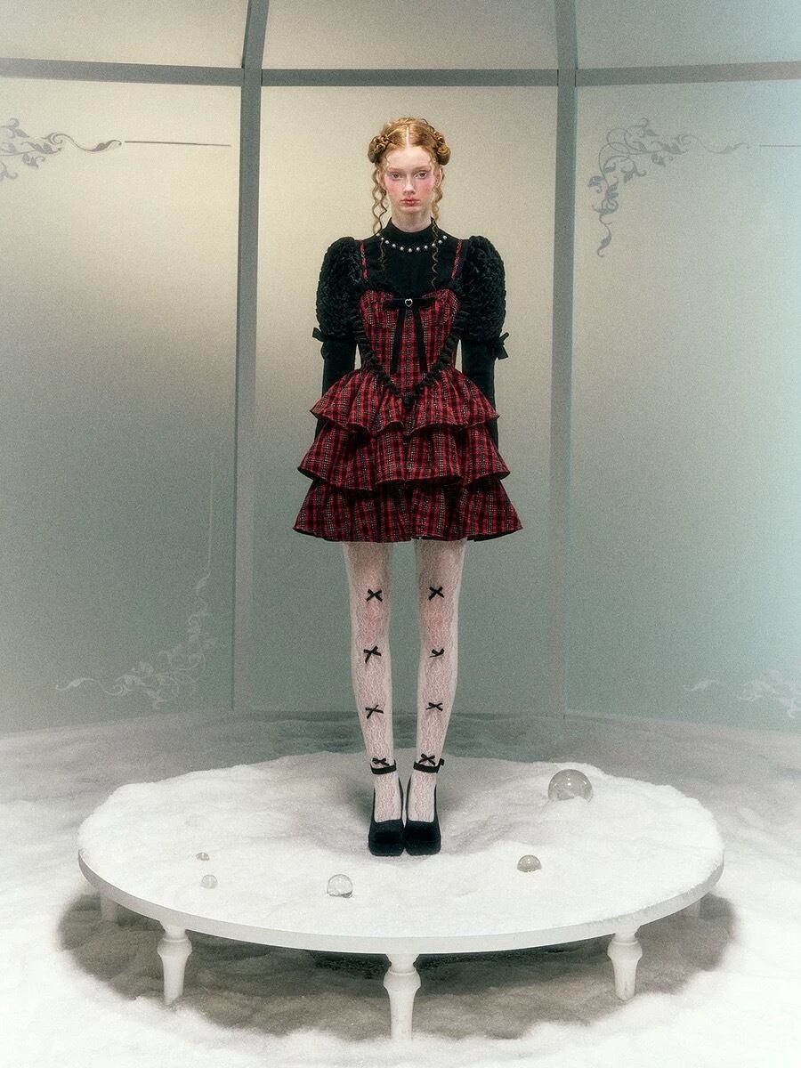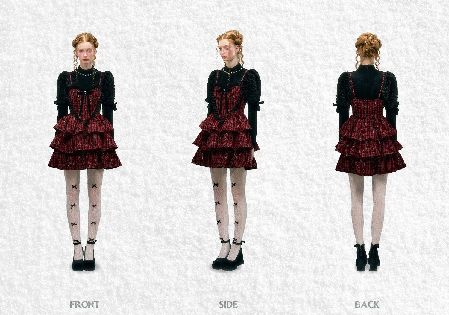 チェック グレー 赤 ワンピース キャミソール ミニスカート リボン