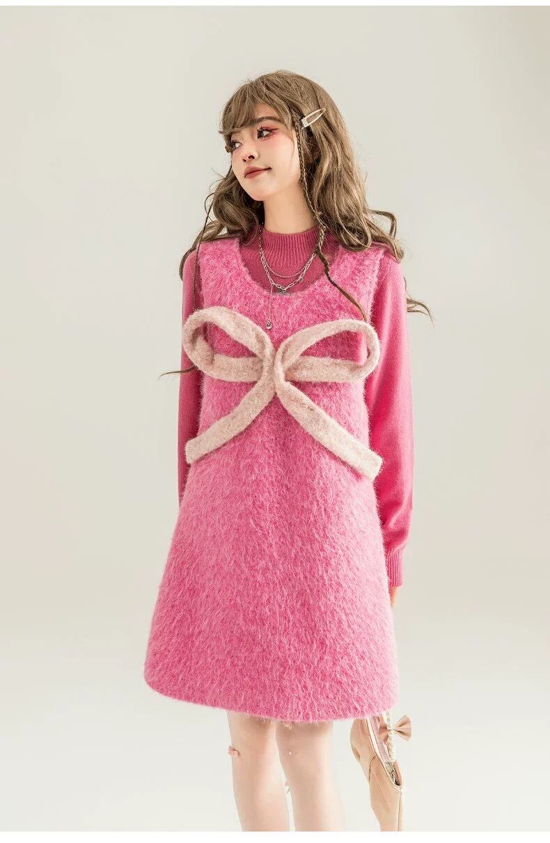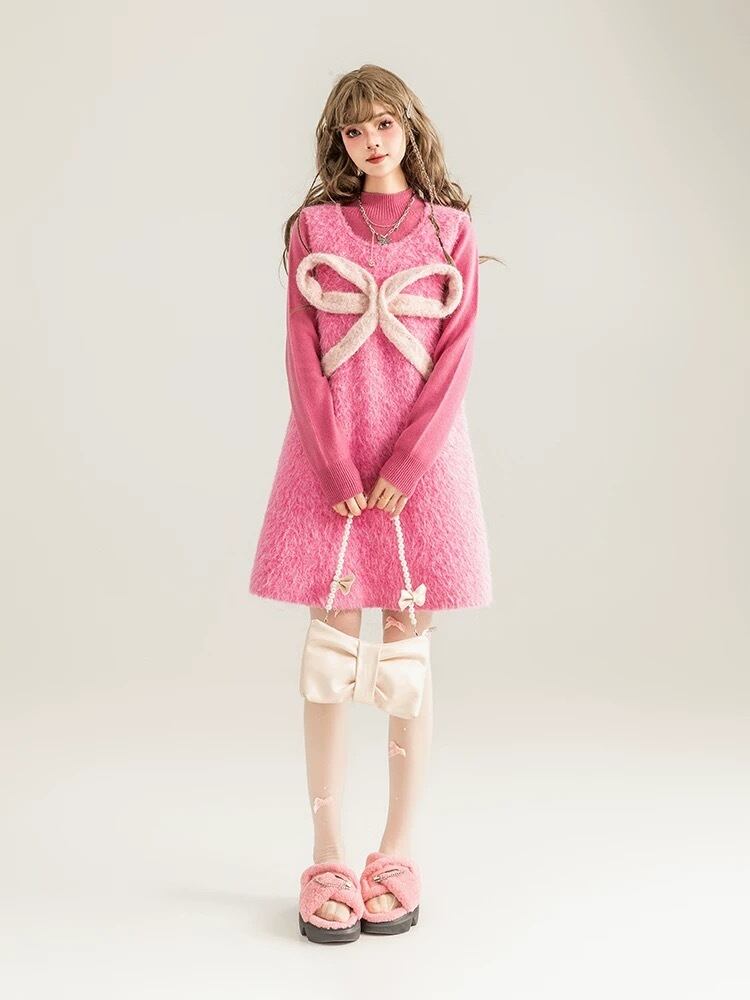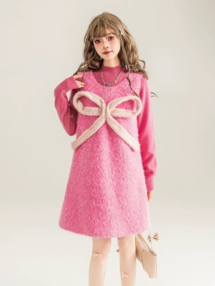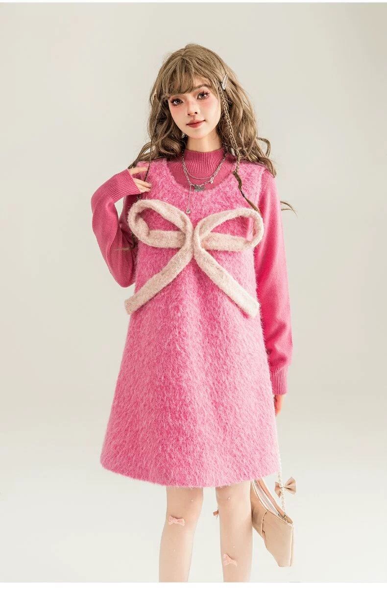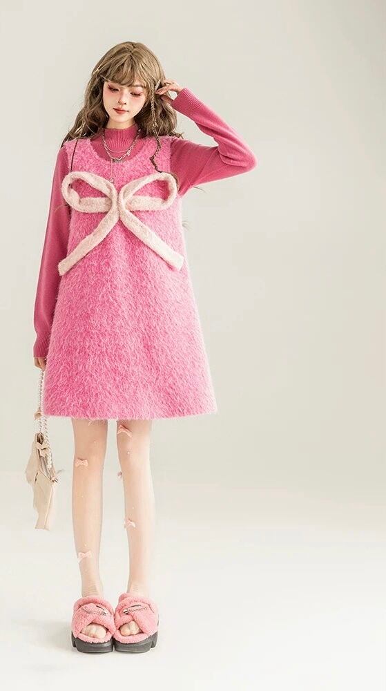 ワンピース リボン カジュアル ガーリー 可愛い エレガント お嬢様 XL セーター ニット