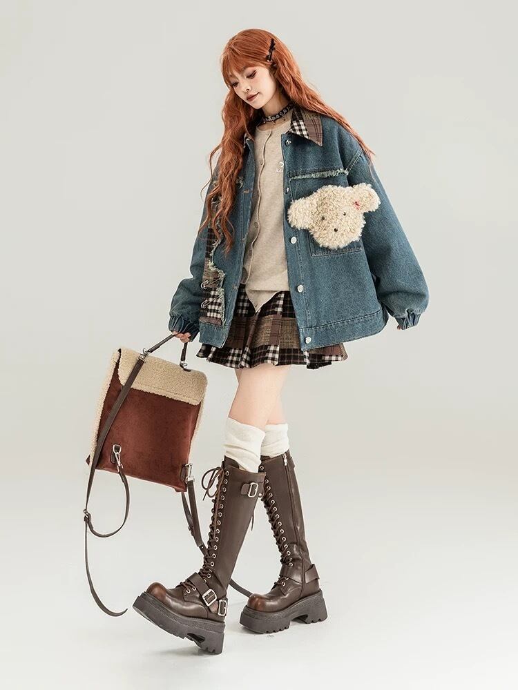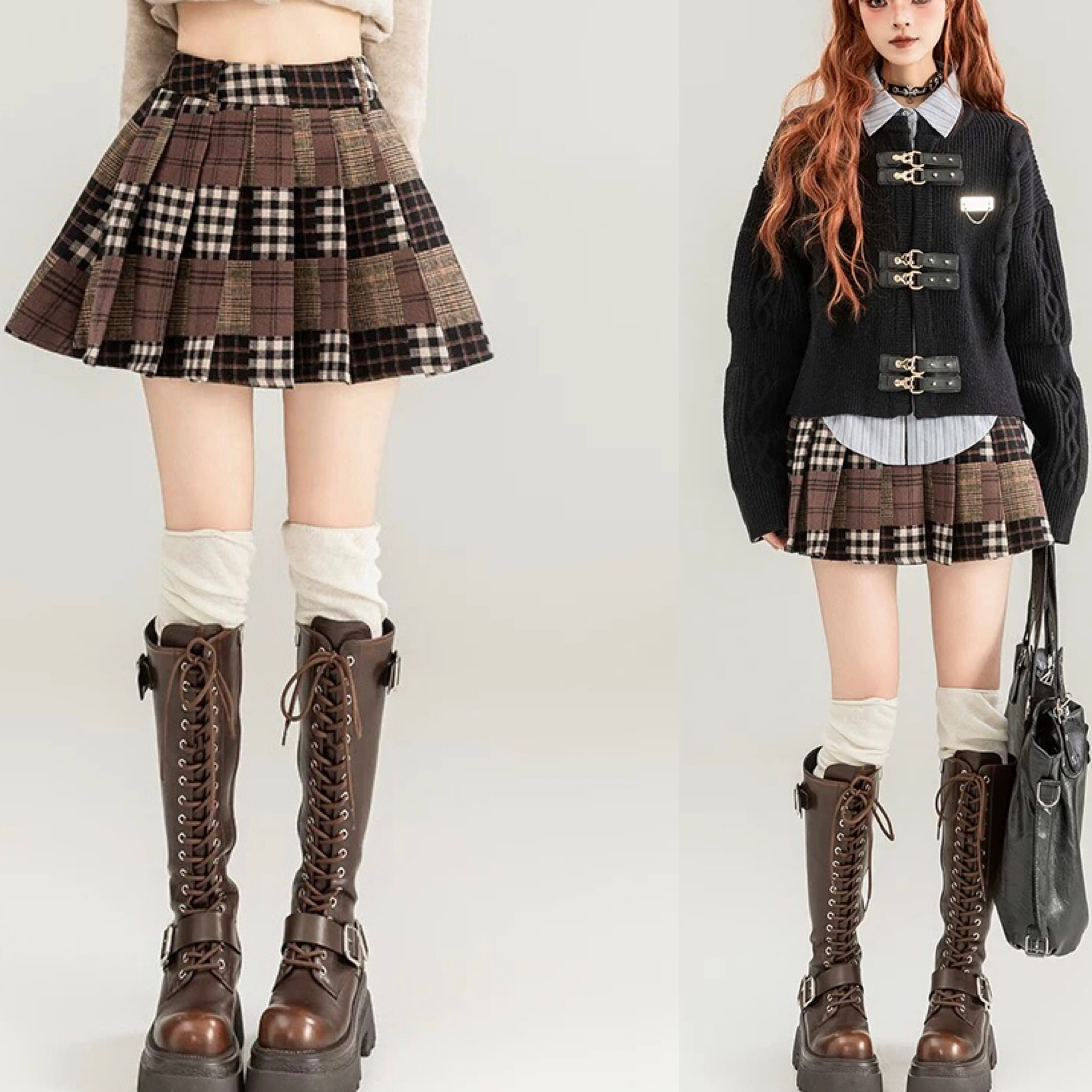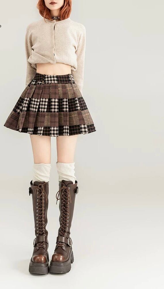 スカート 茶色 パッチワーク XLボトムス ガーリー 可愛い
