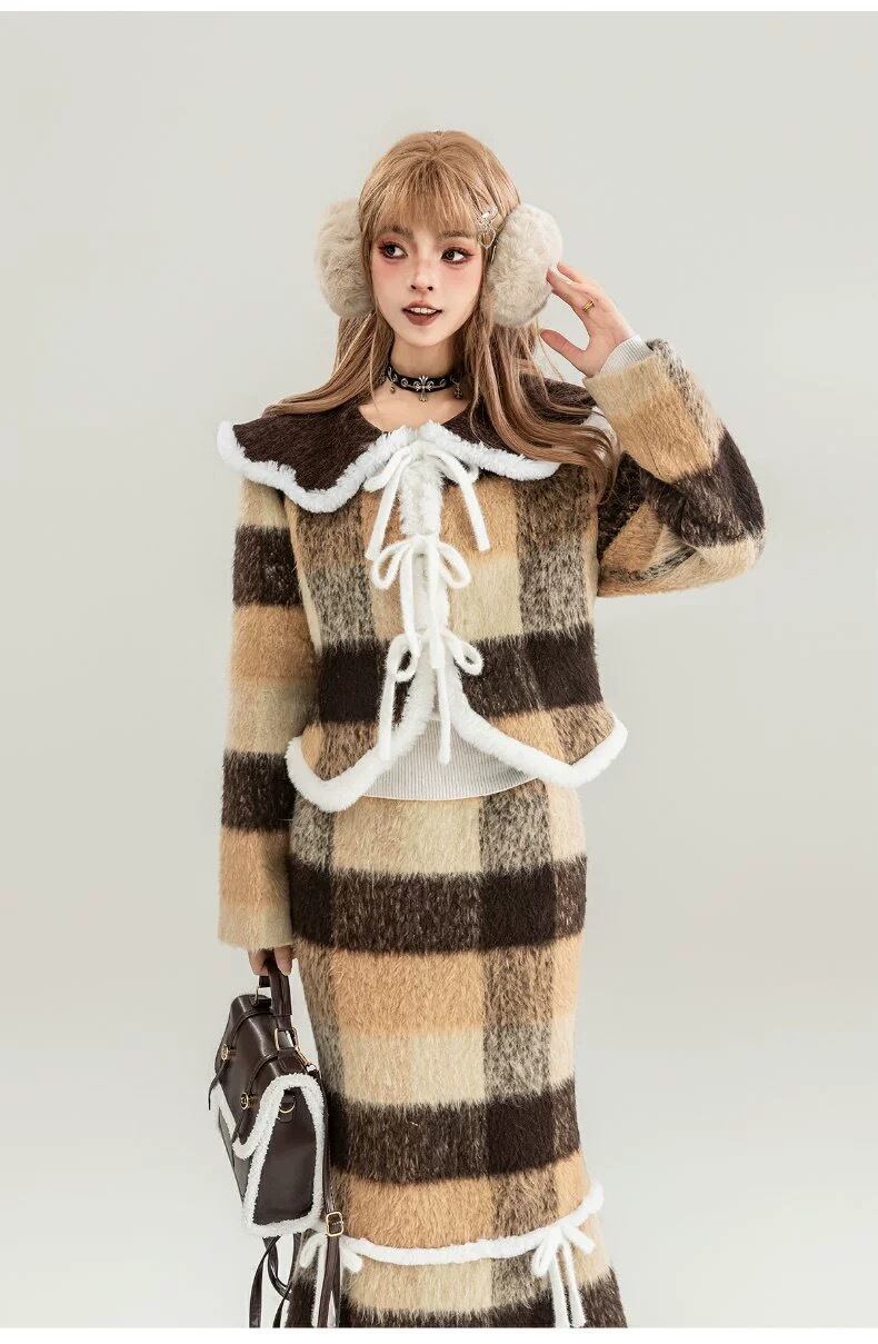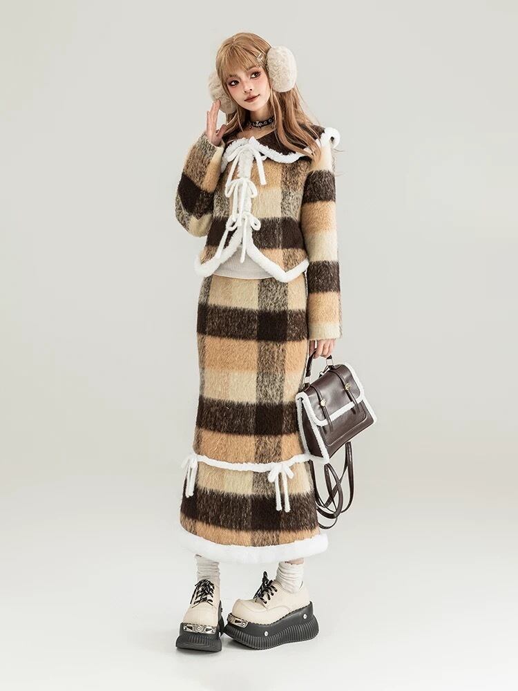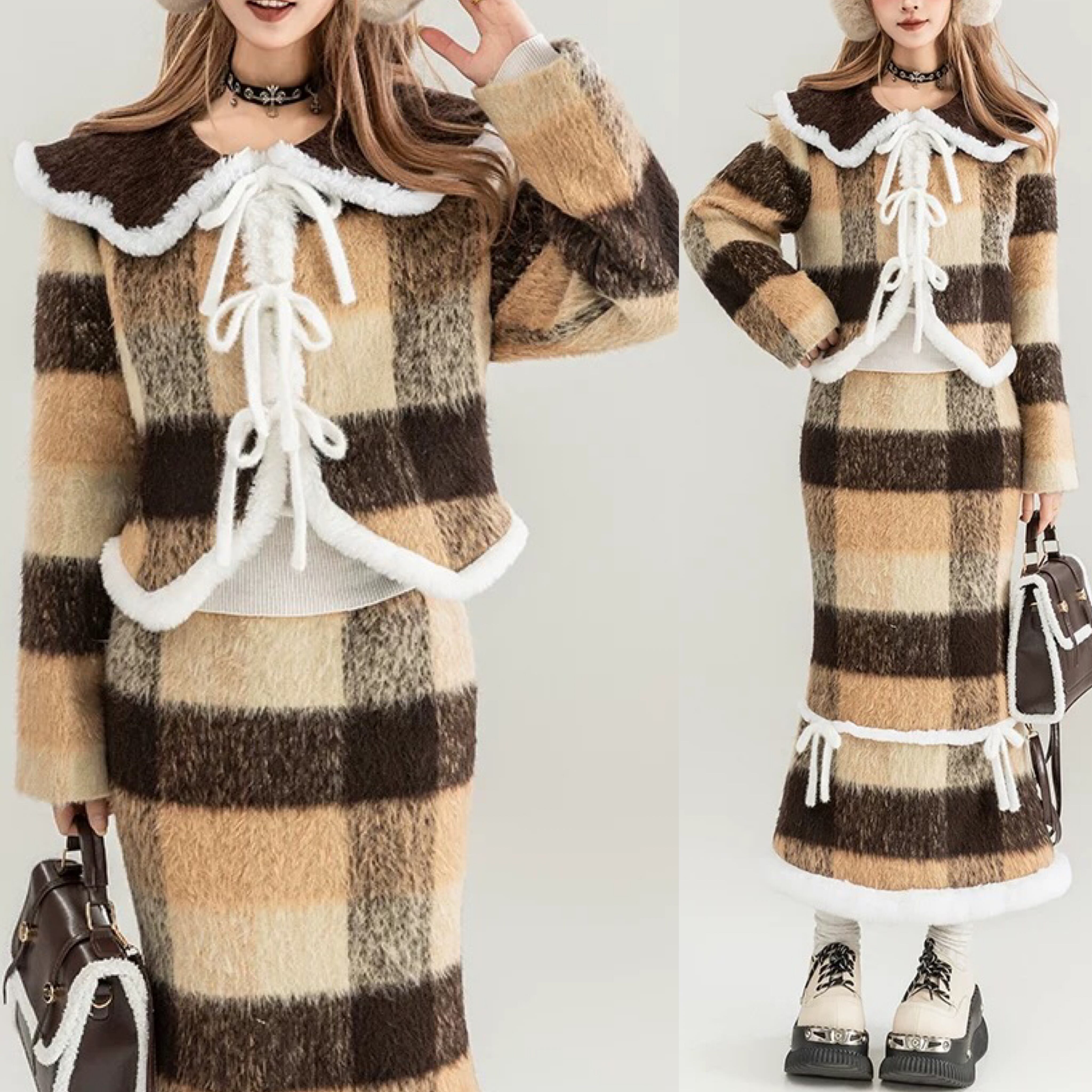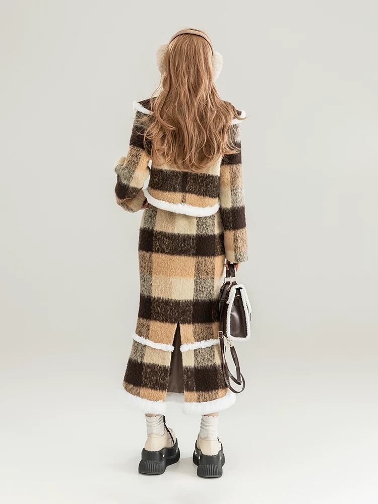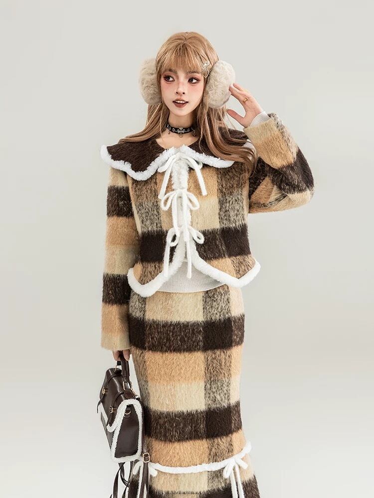 【ジャケット】チェック 茶色 アウター カーディガン アウター コート スーツ ツーピース