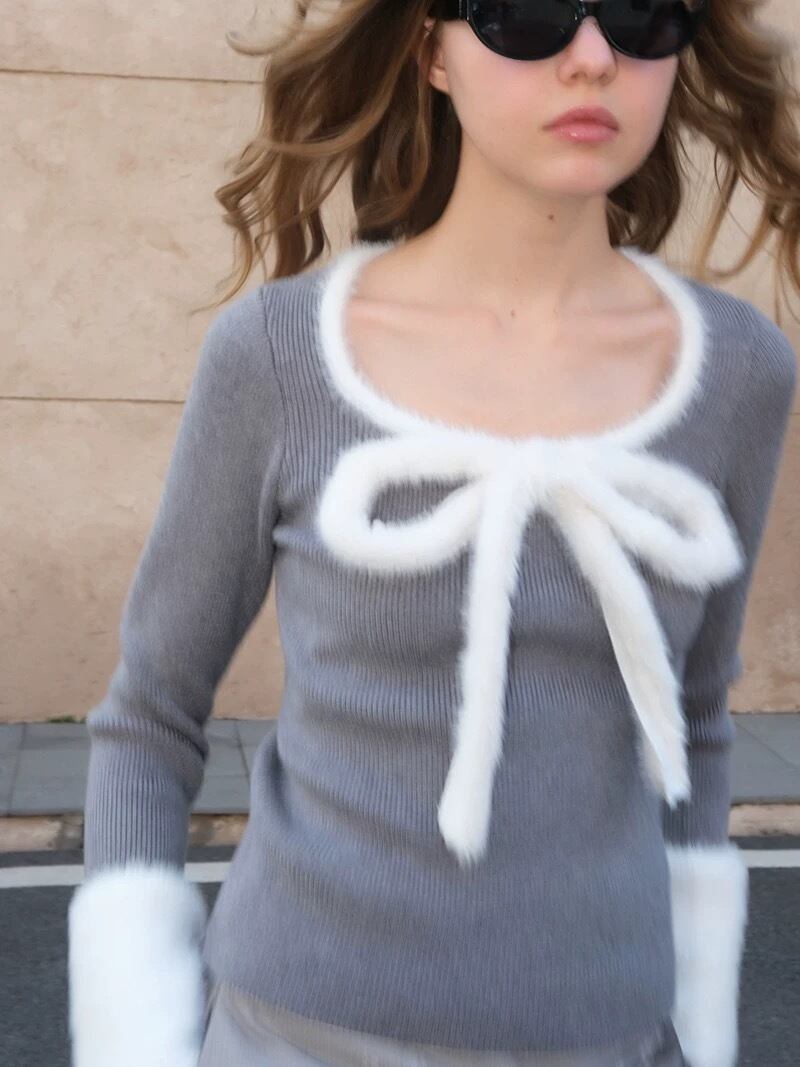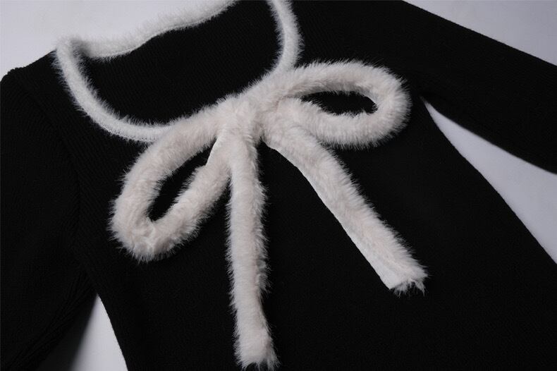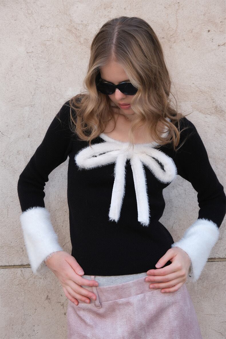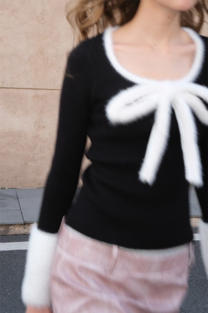 トップス 黒 グレー リボン ブラウス カーディガン セーター ニット モヘア