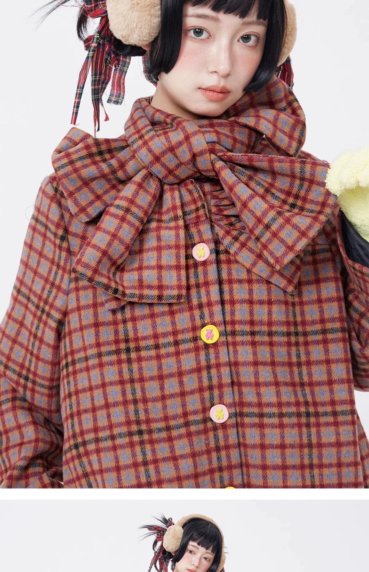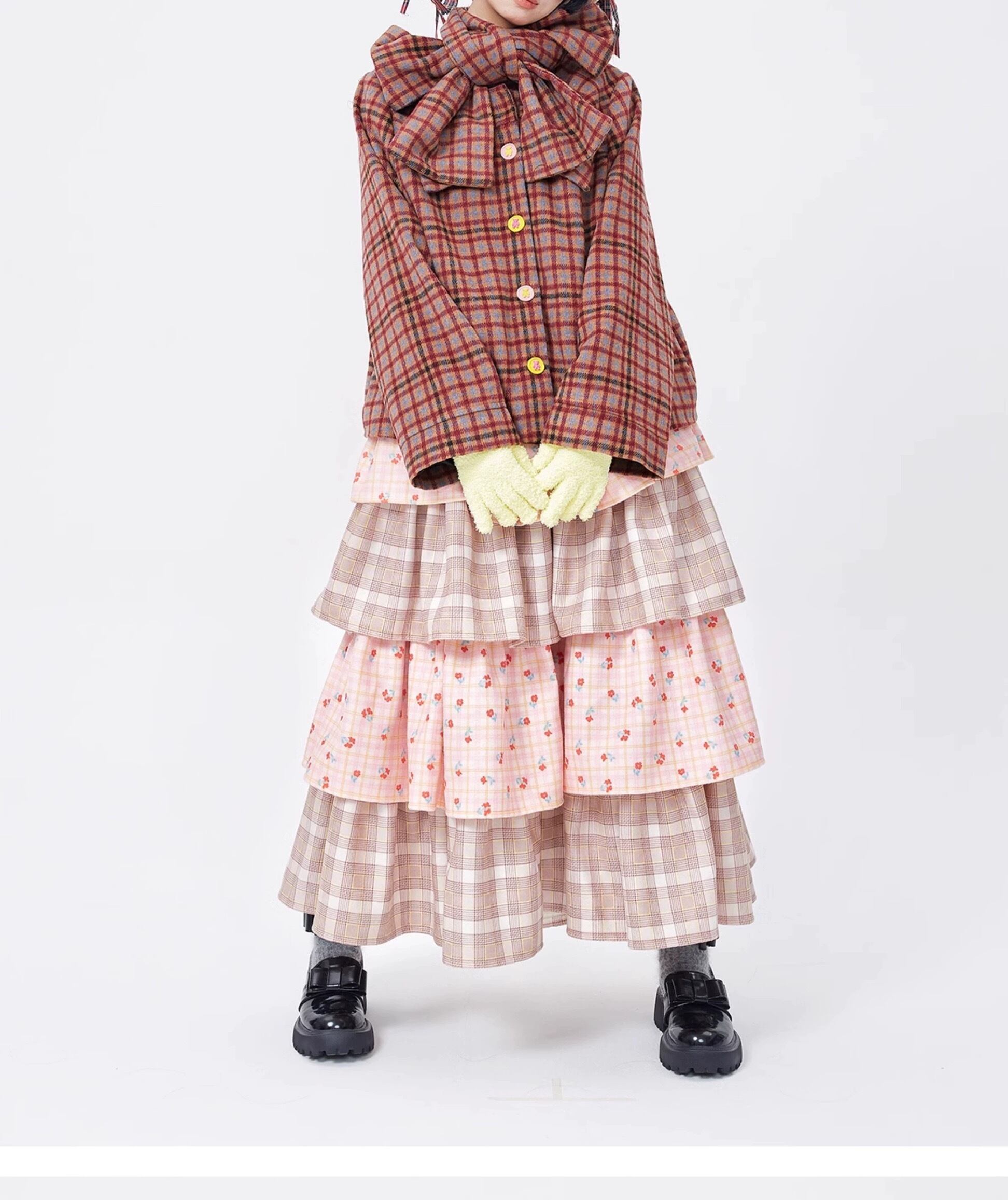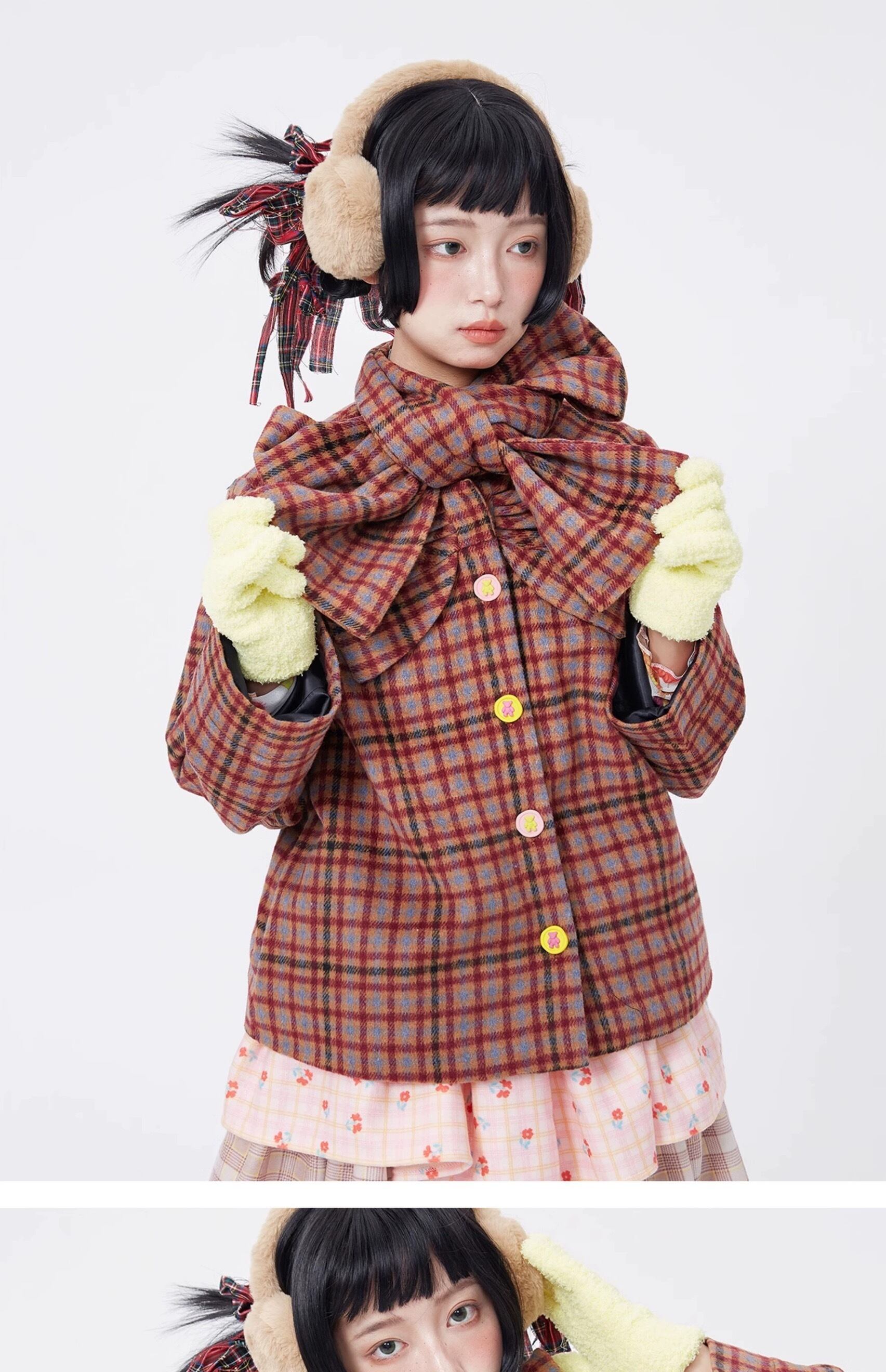 ジャケット アウター カーディガン チェックガーリー コート アウター 茶色 赤 黄色