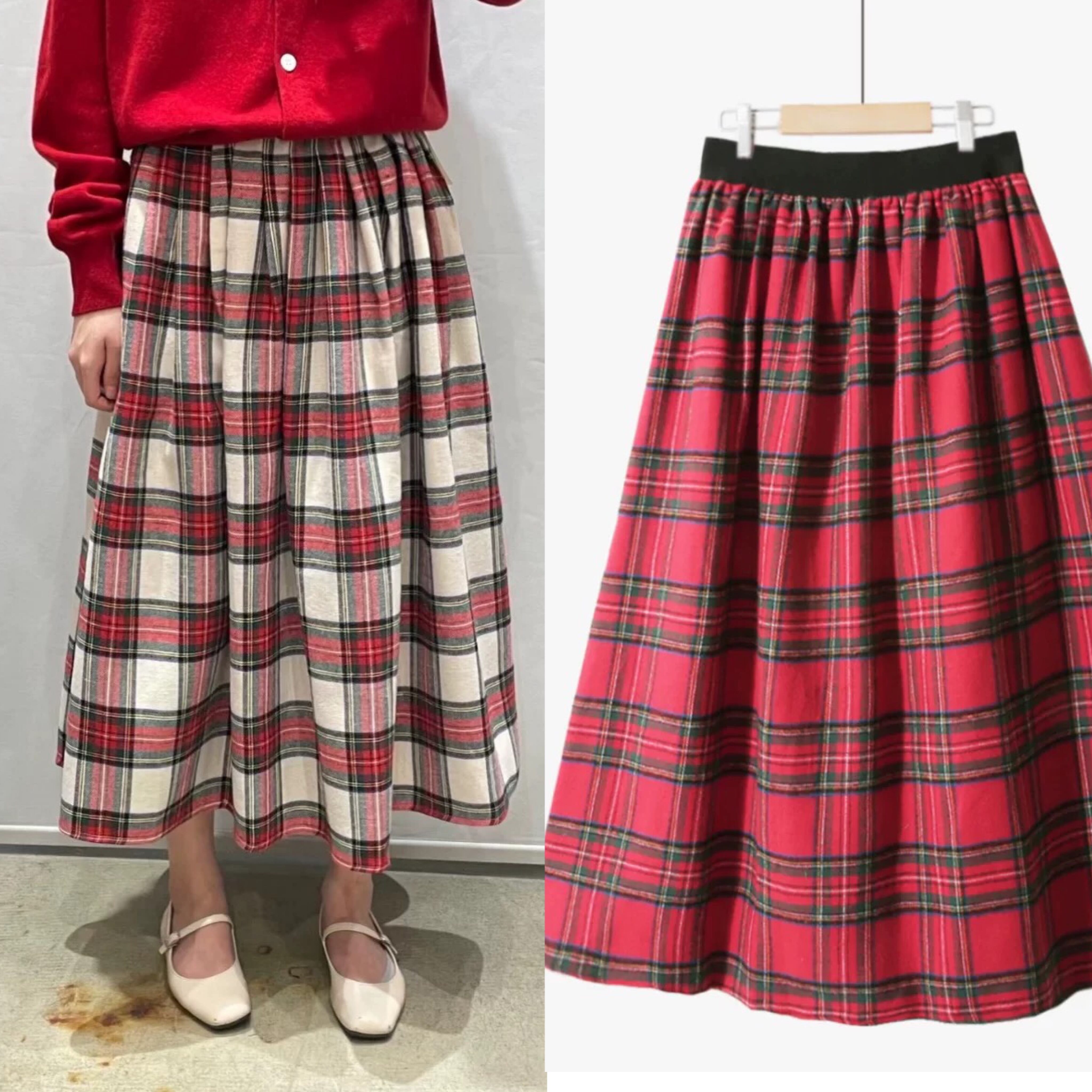 スカート 白 赤 チェック ボトムス シンプル ガーリー
