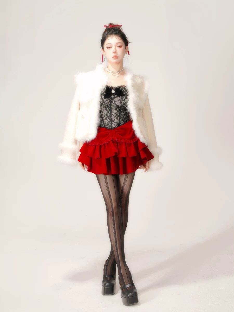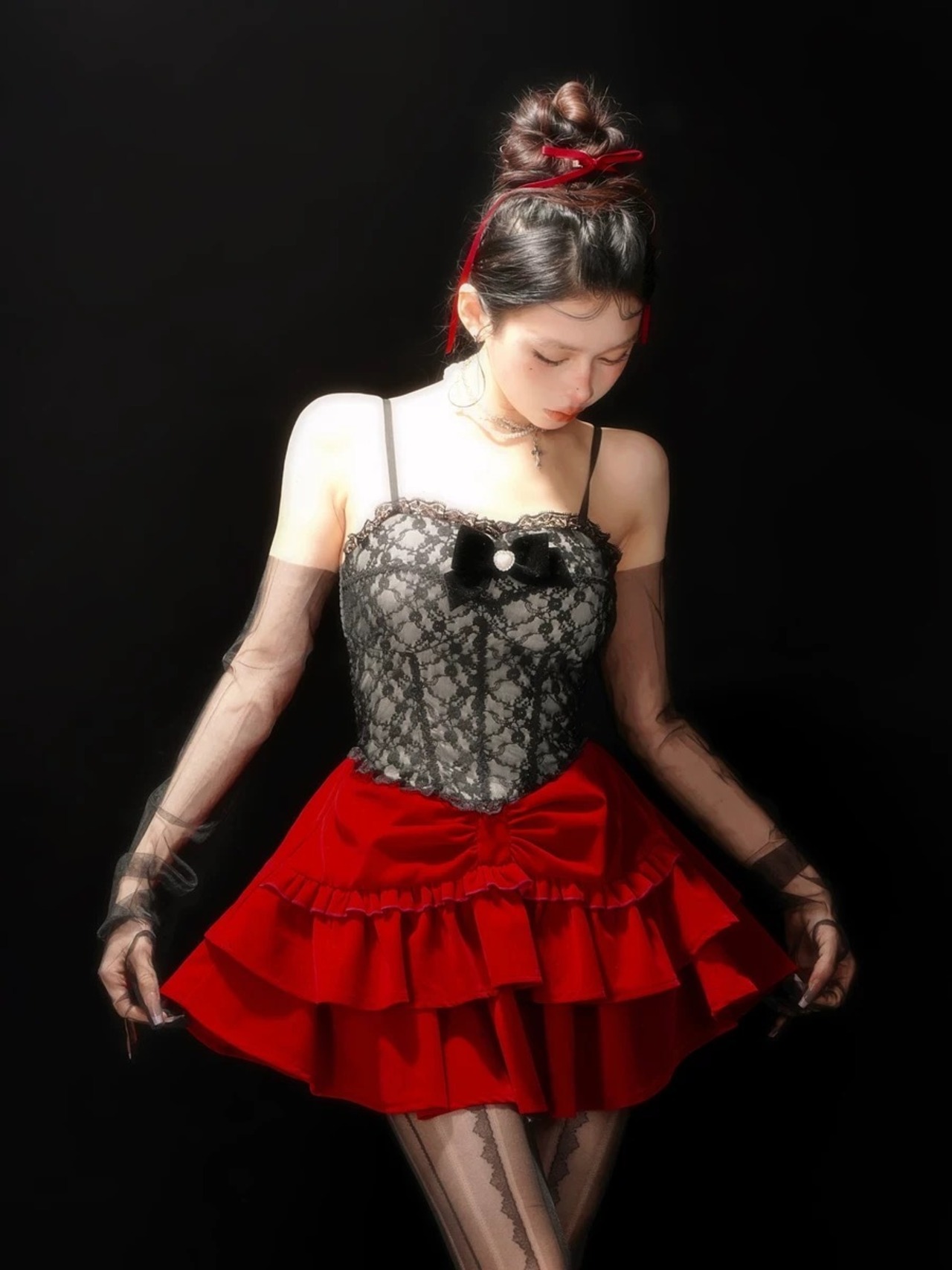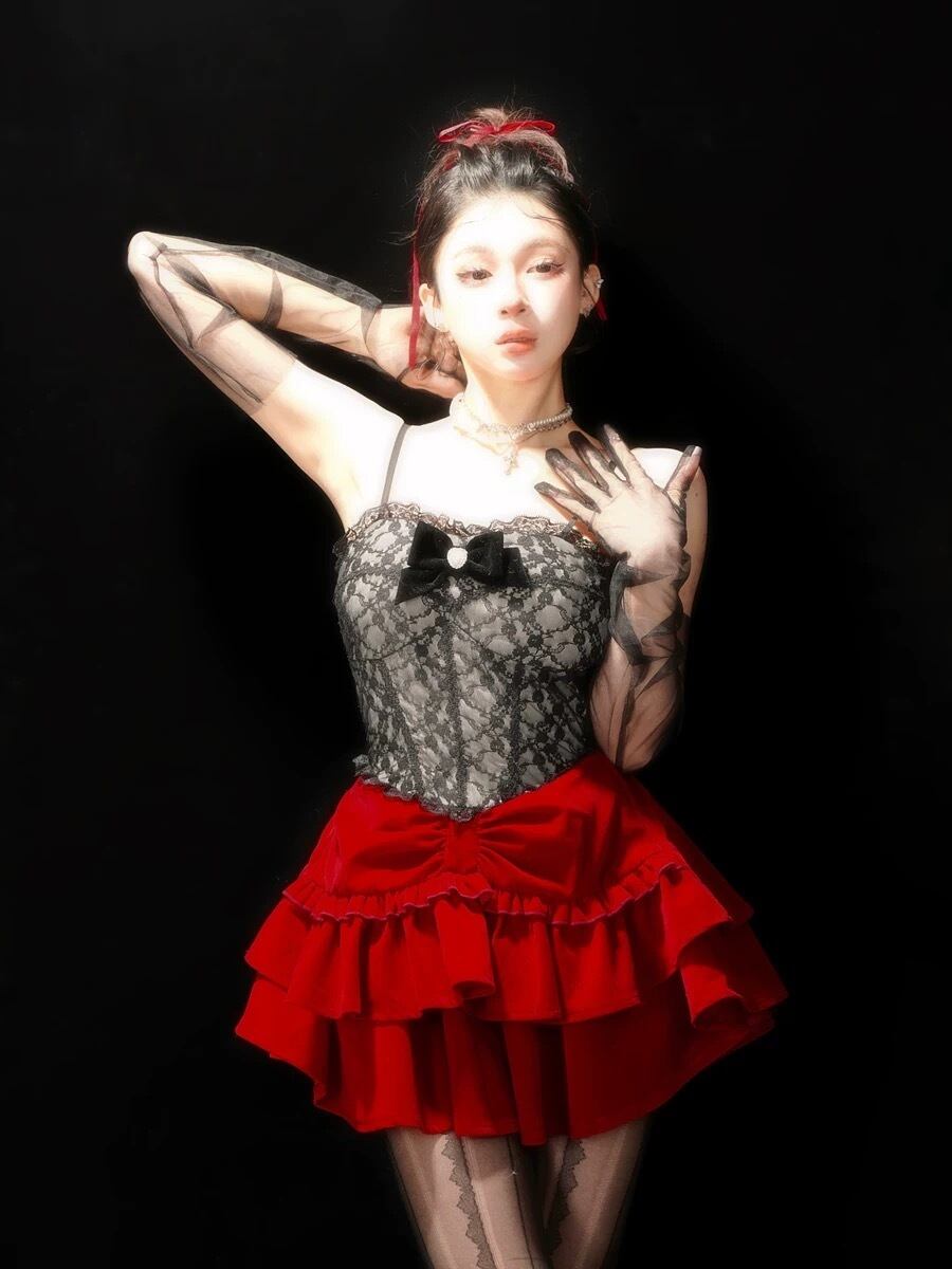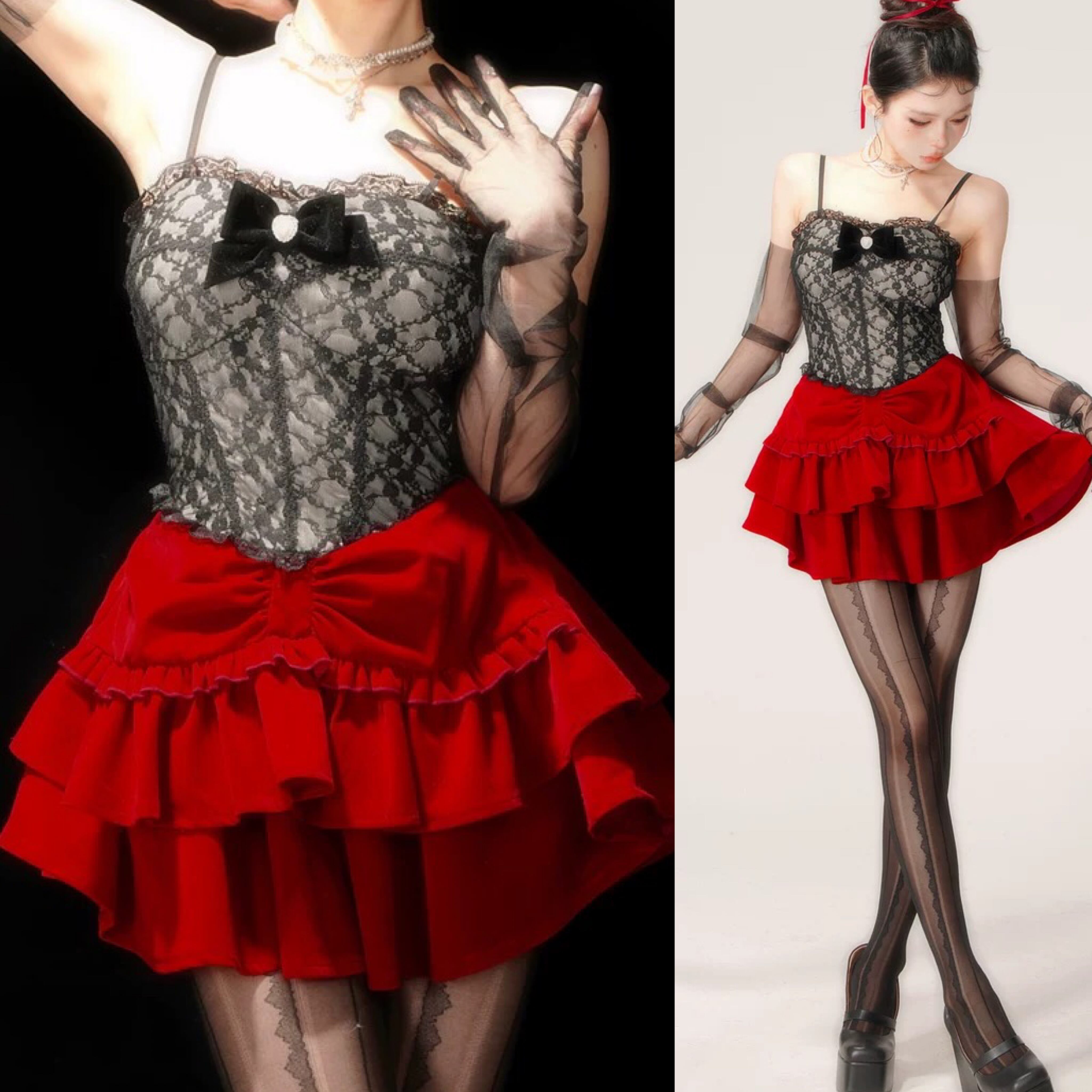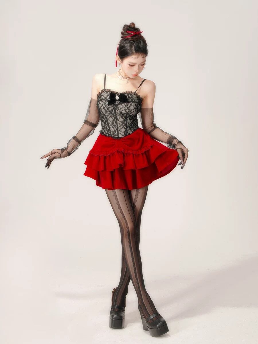 ワンピース 赤 ミニスカート レース ガーリー セクシー ドレス