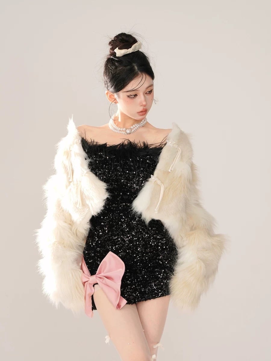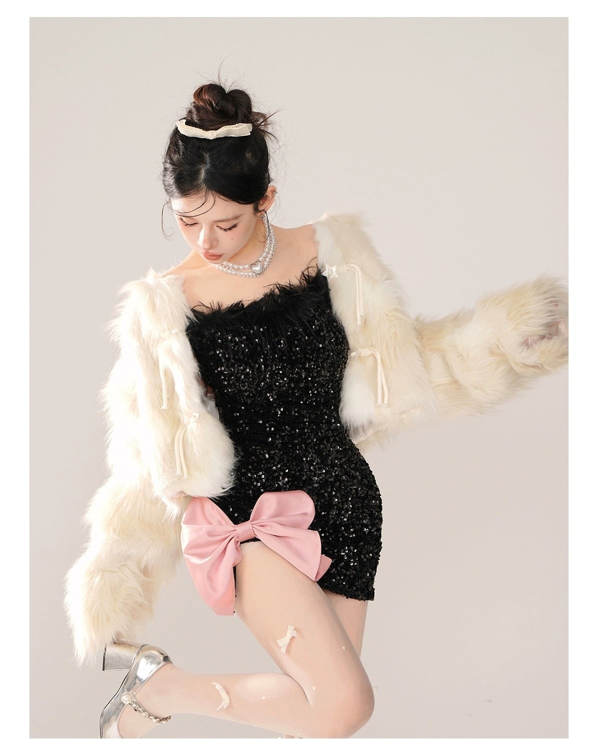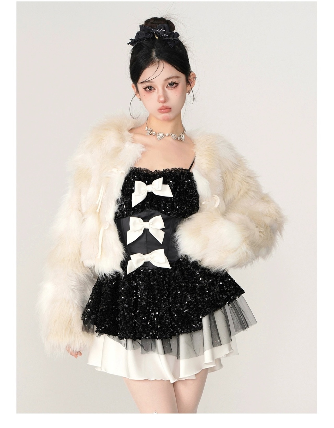 ワンピース スパンコール キラキラ リボン 黒 リボン 白 ピンク キラキラ パーティー ドレス