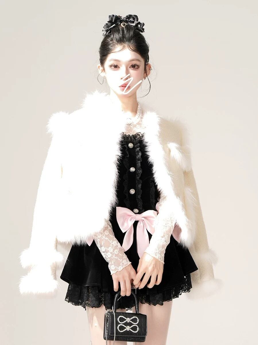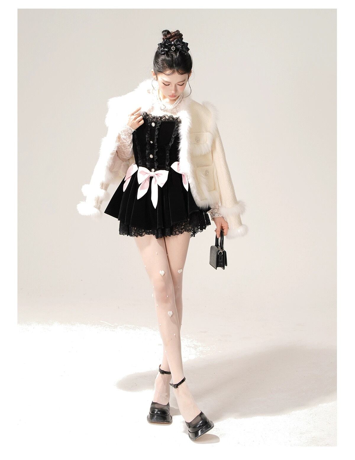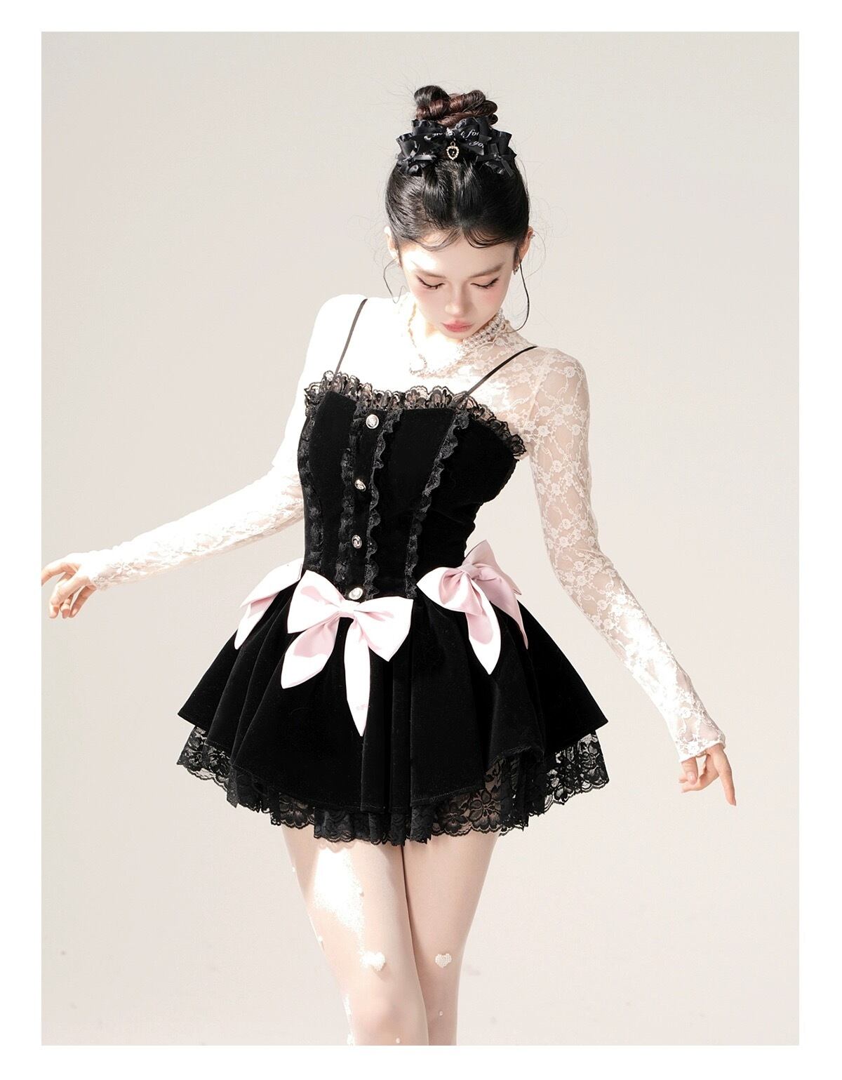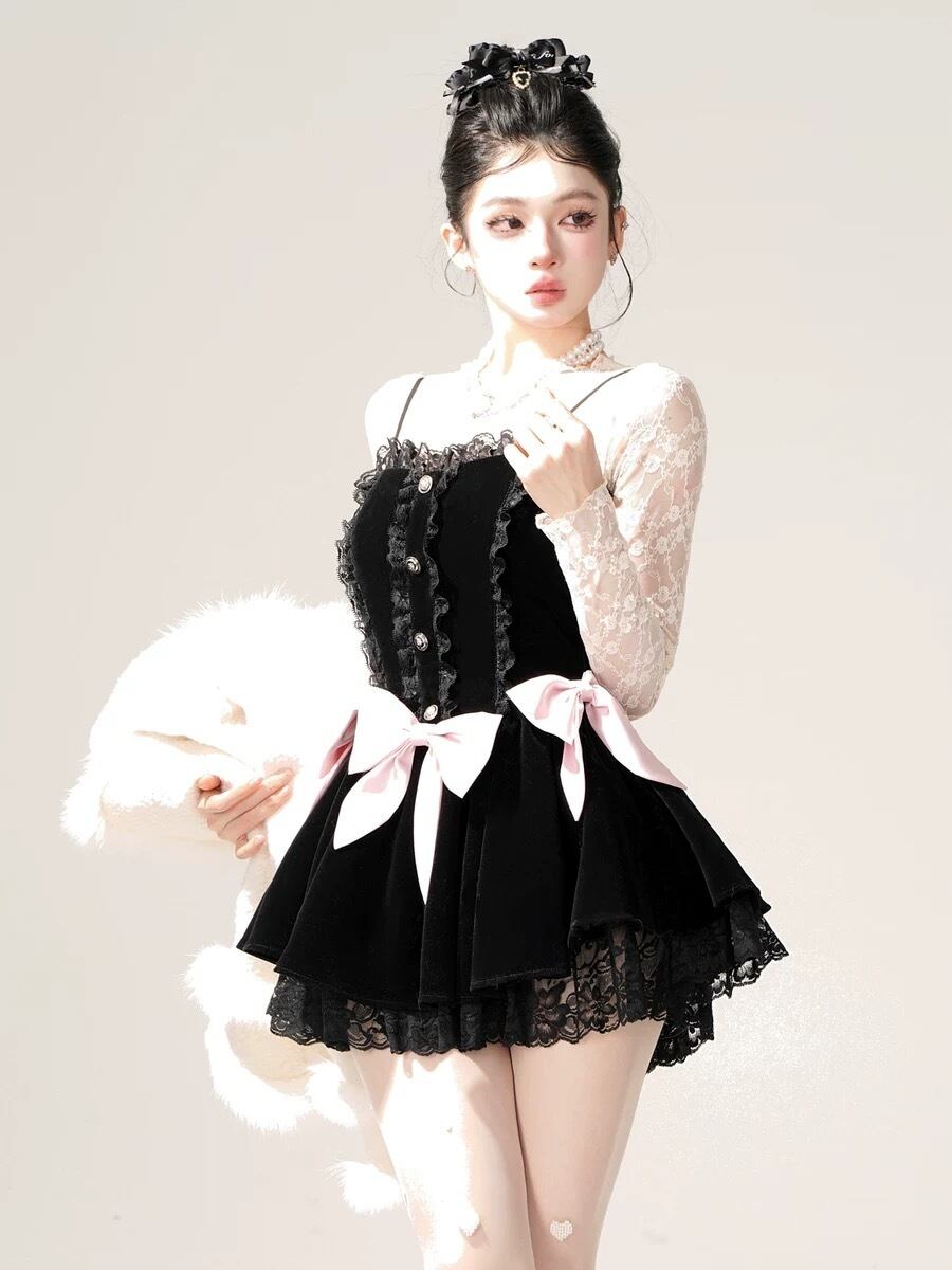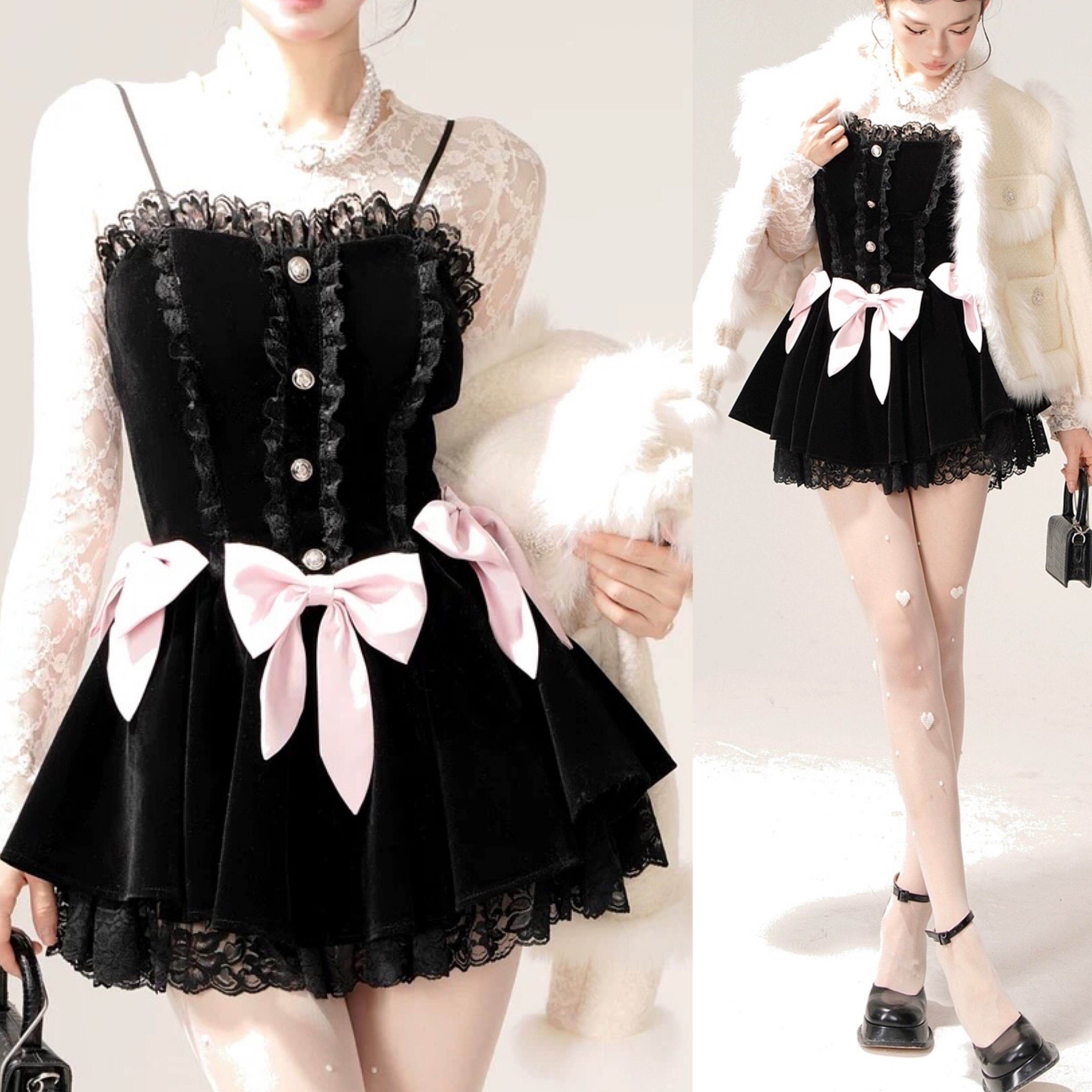 ワンピース 黒 ピンク リボン ガーリー 姫 可愛い キャミソール ミニスカート