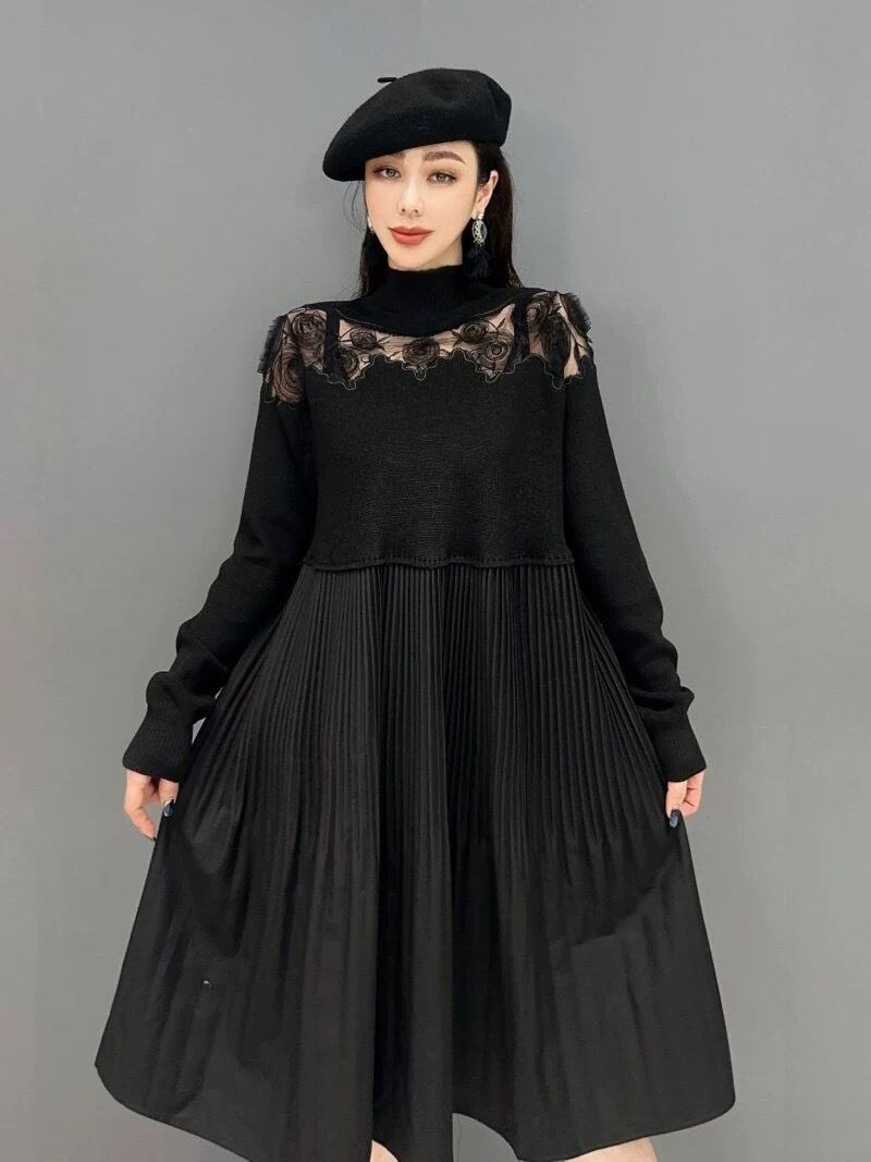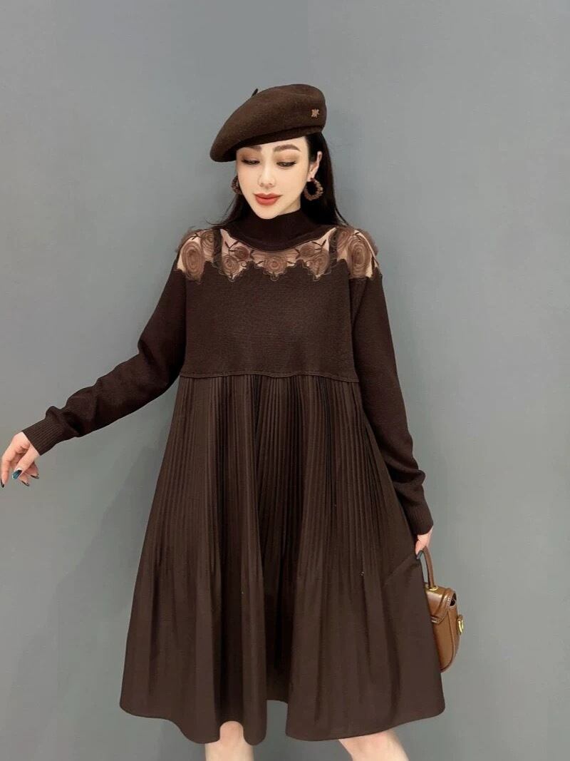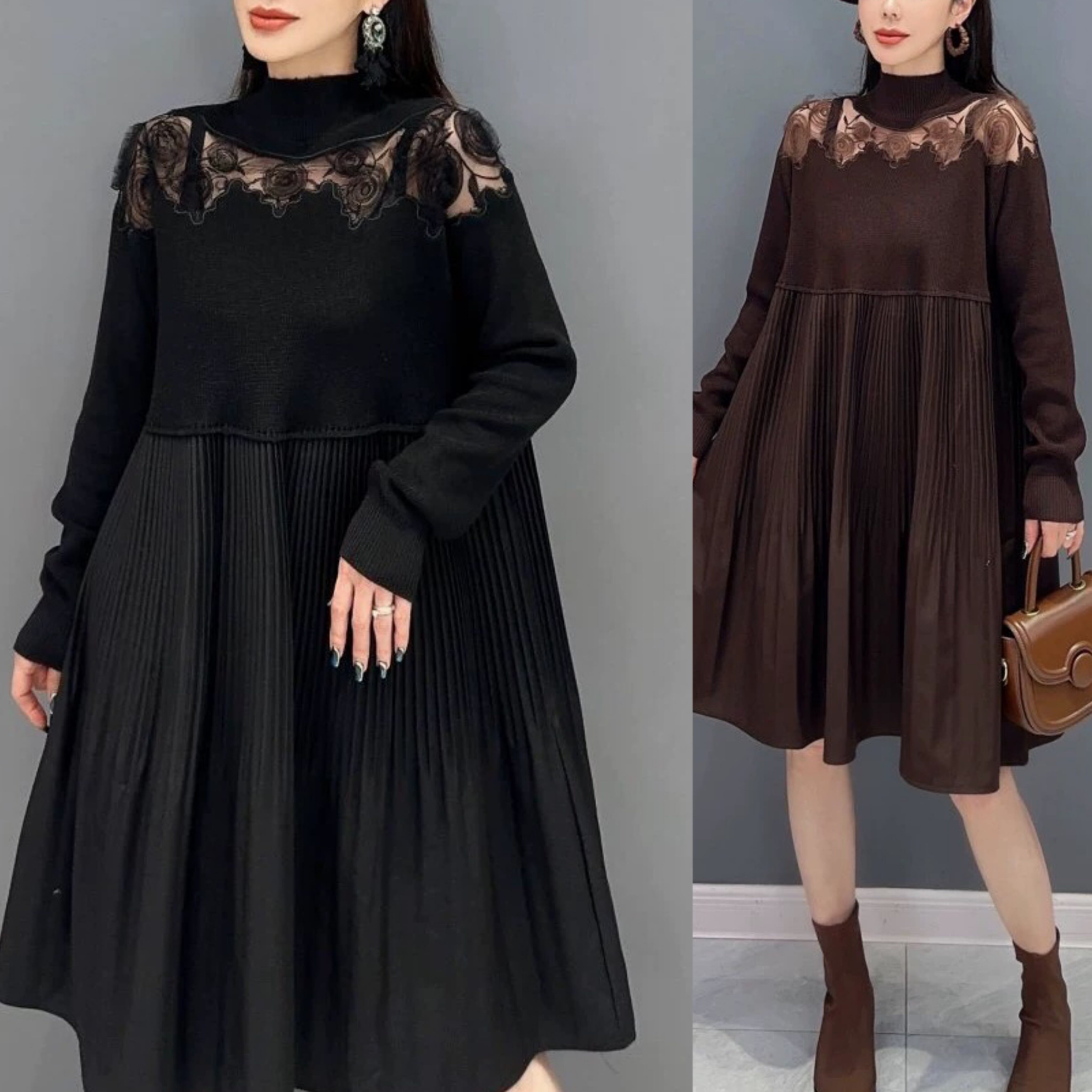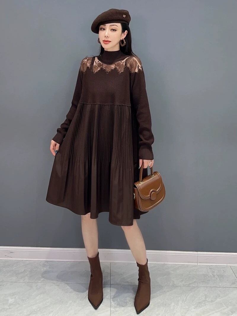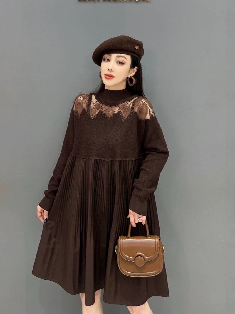 ニット ワンピース 黒 茶色 セーター ゆったり ポンチョ XL ガーリー カジュアル ニット カーディガン
