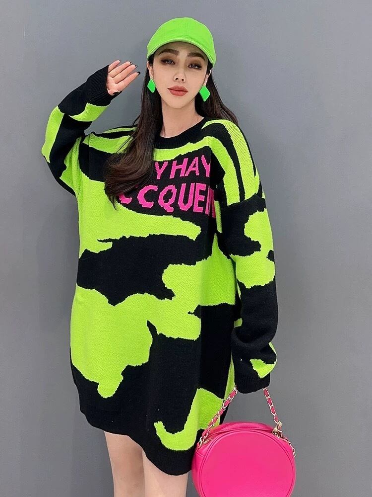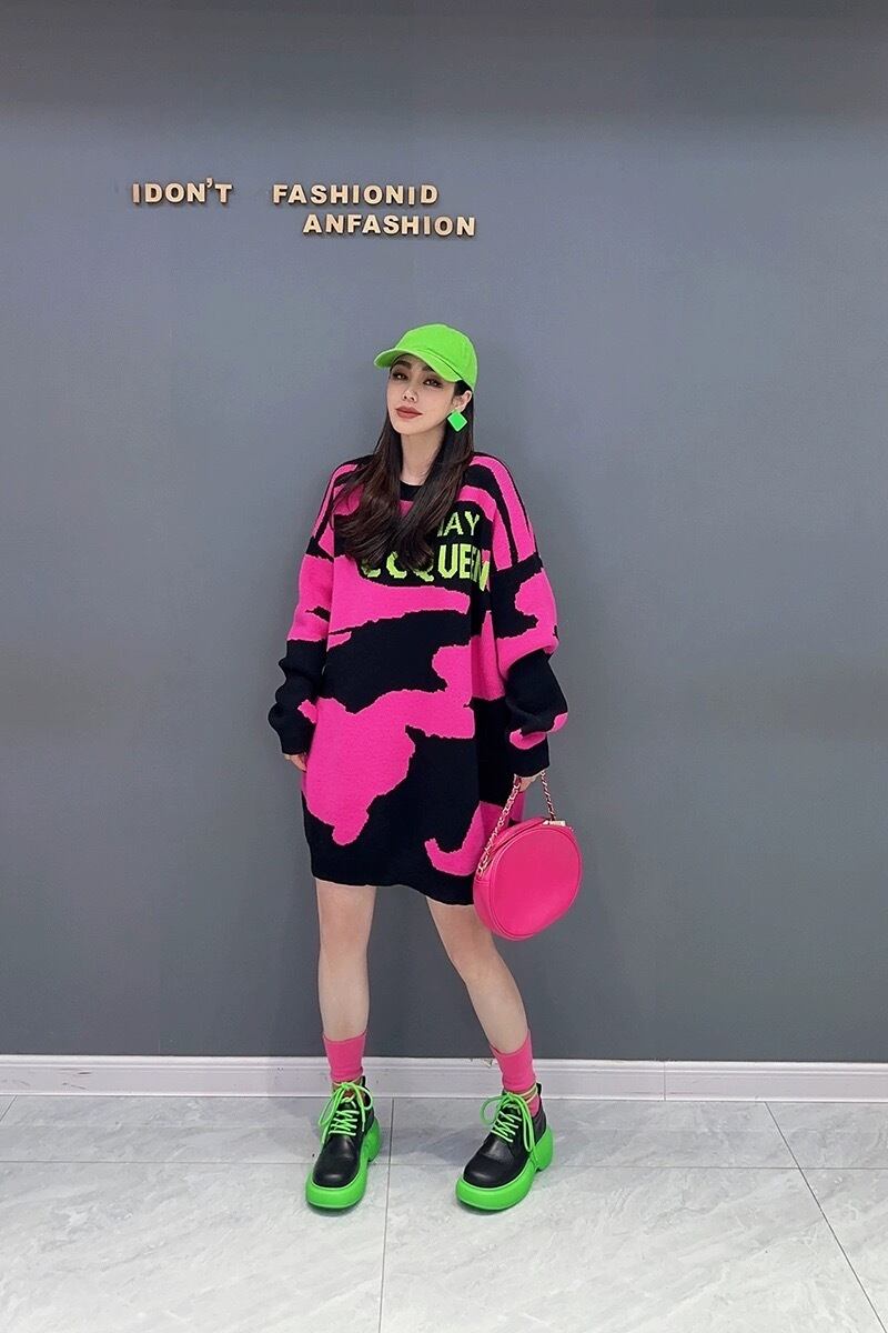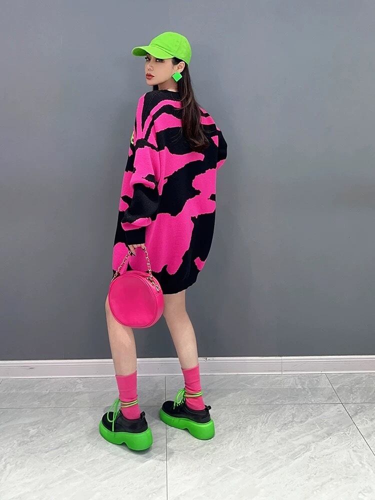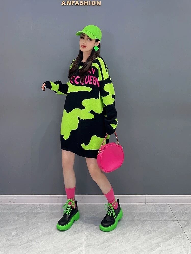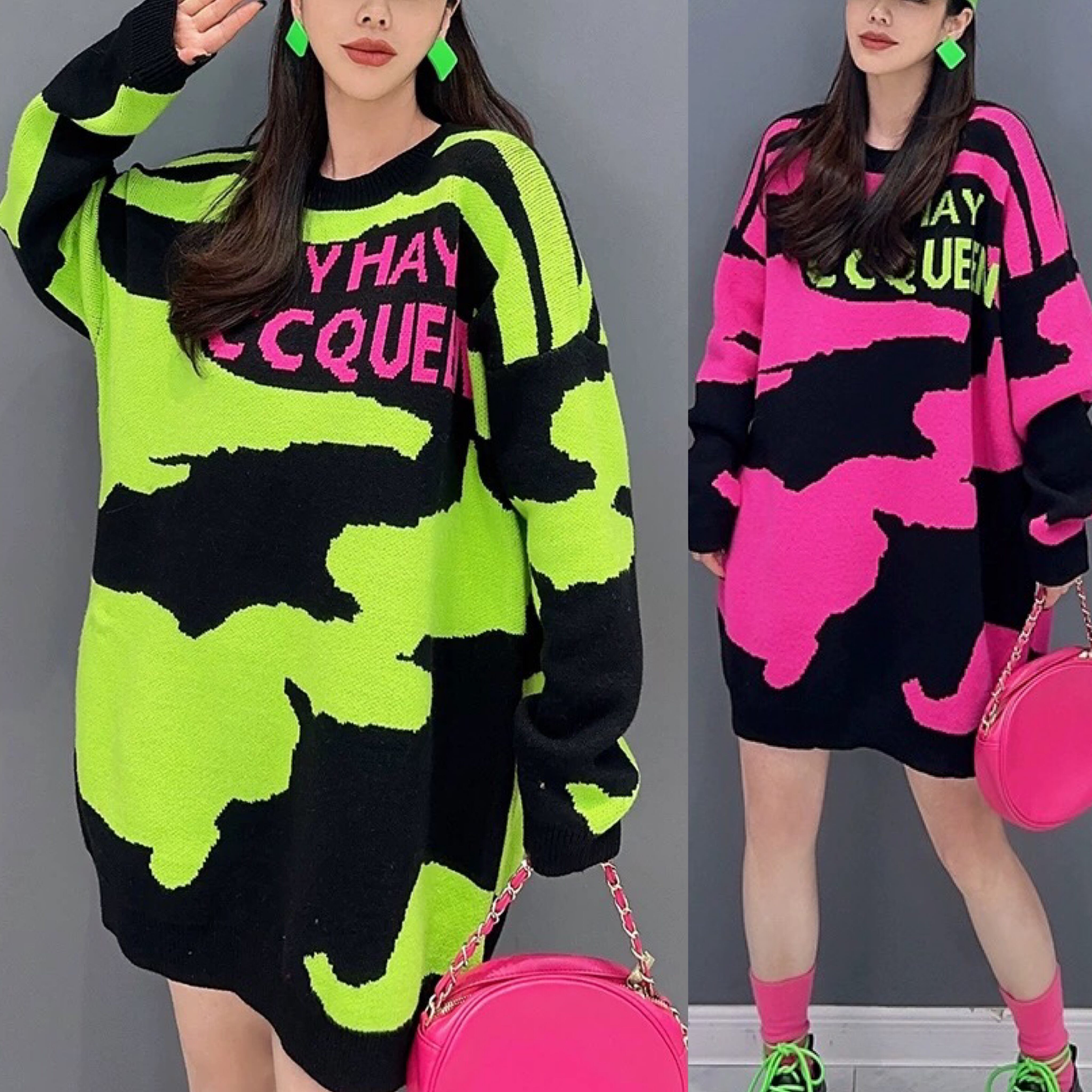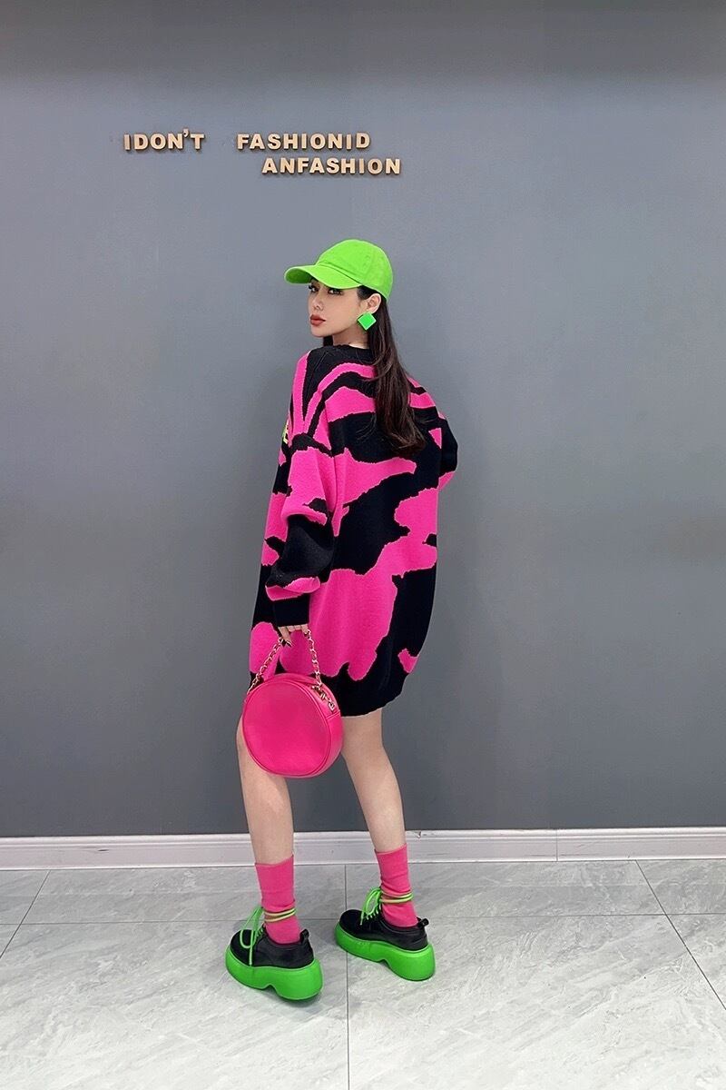 ニット 蛍光 ネオンカラー 黄色 ピンク セーター ワンピース