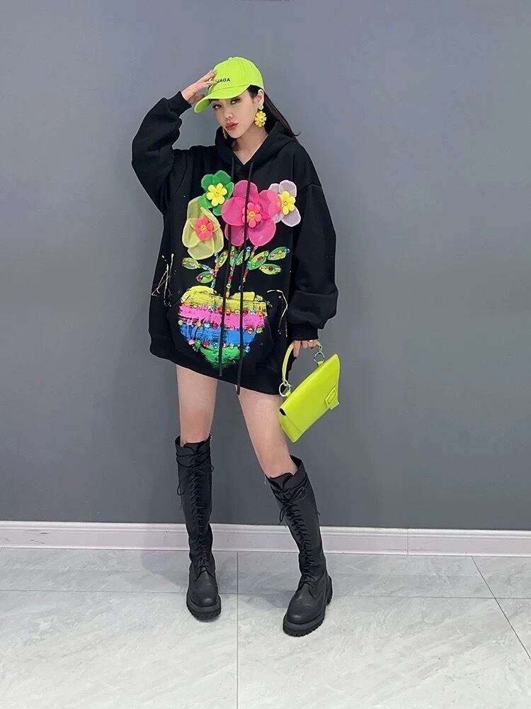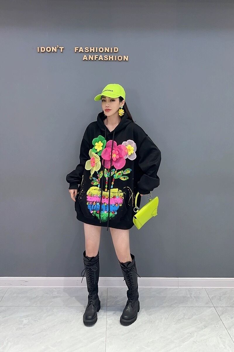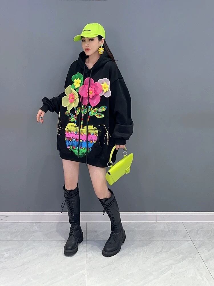 スウェット パーカー 花柄 デコ デコレーション フラワー スウェット カジュアル XL ストリート 原宿