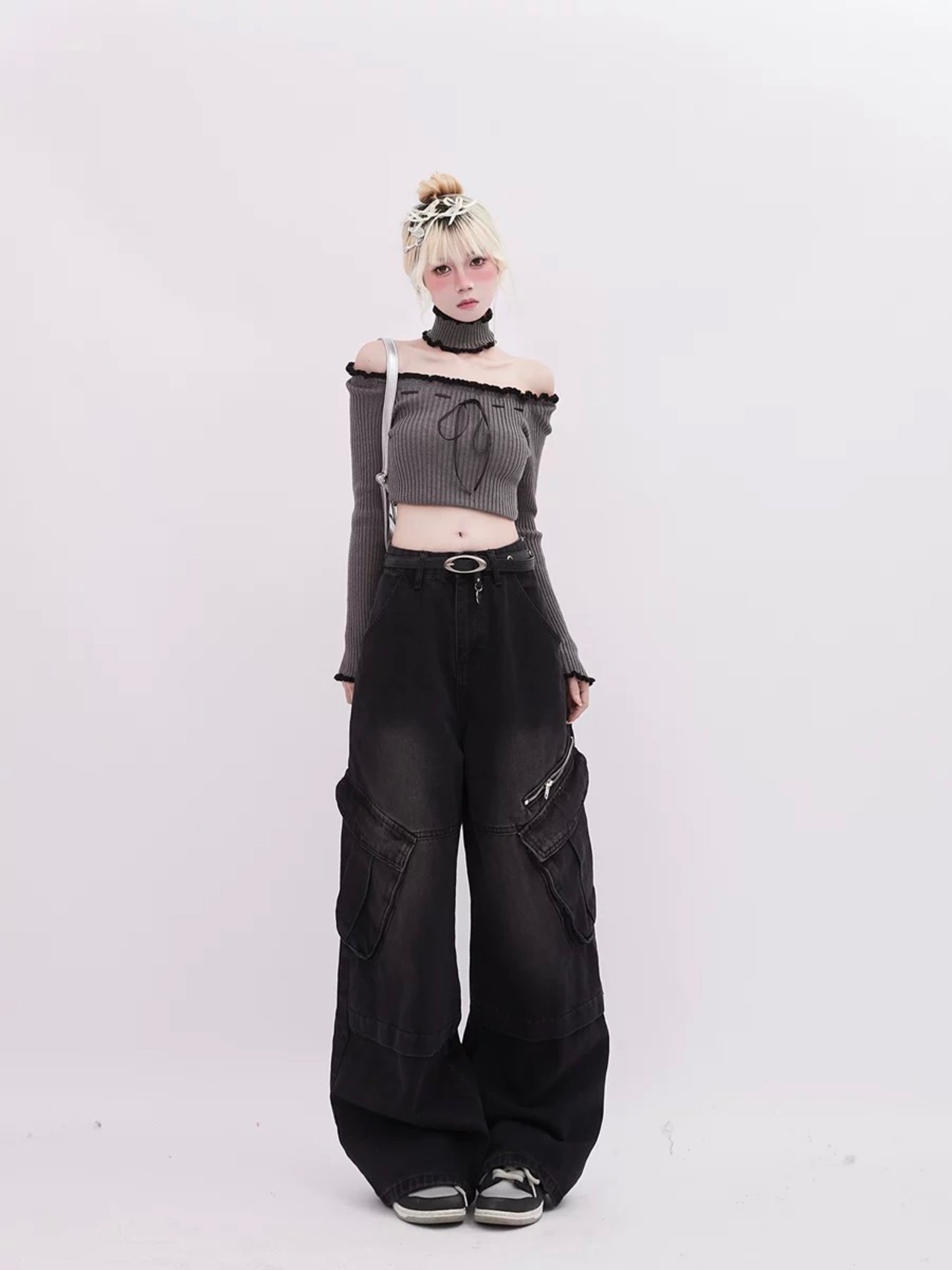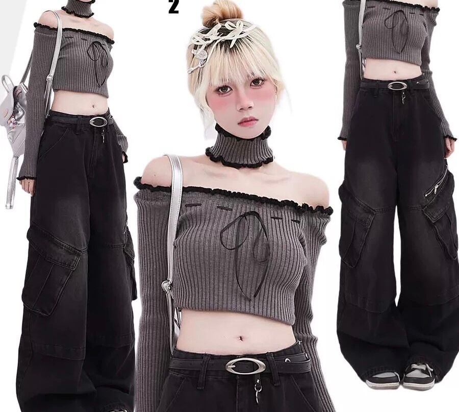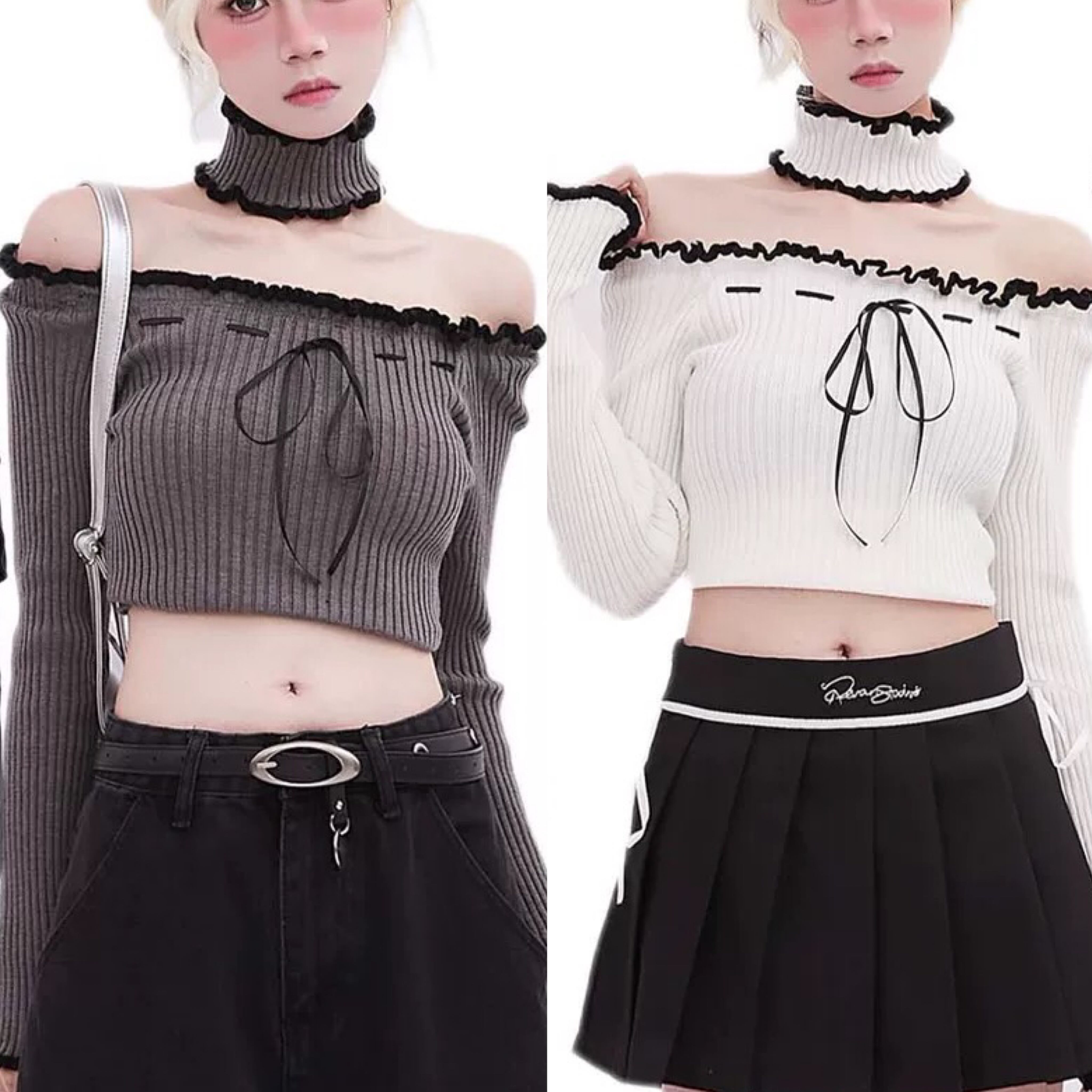 ハイネック グレー 白 セーター カーディガン トップス セーター カジュアル ブラウス