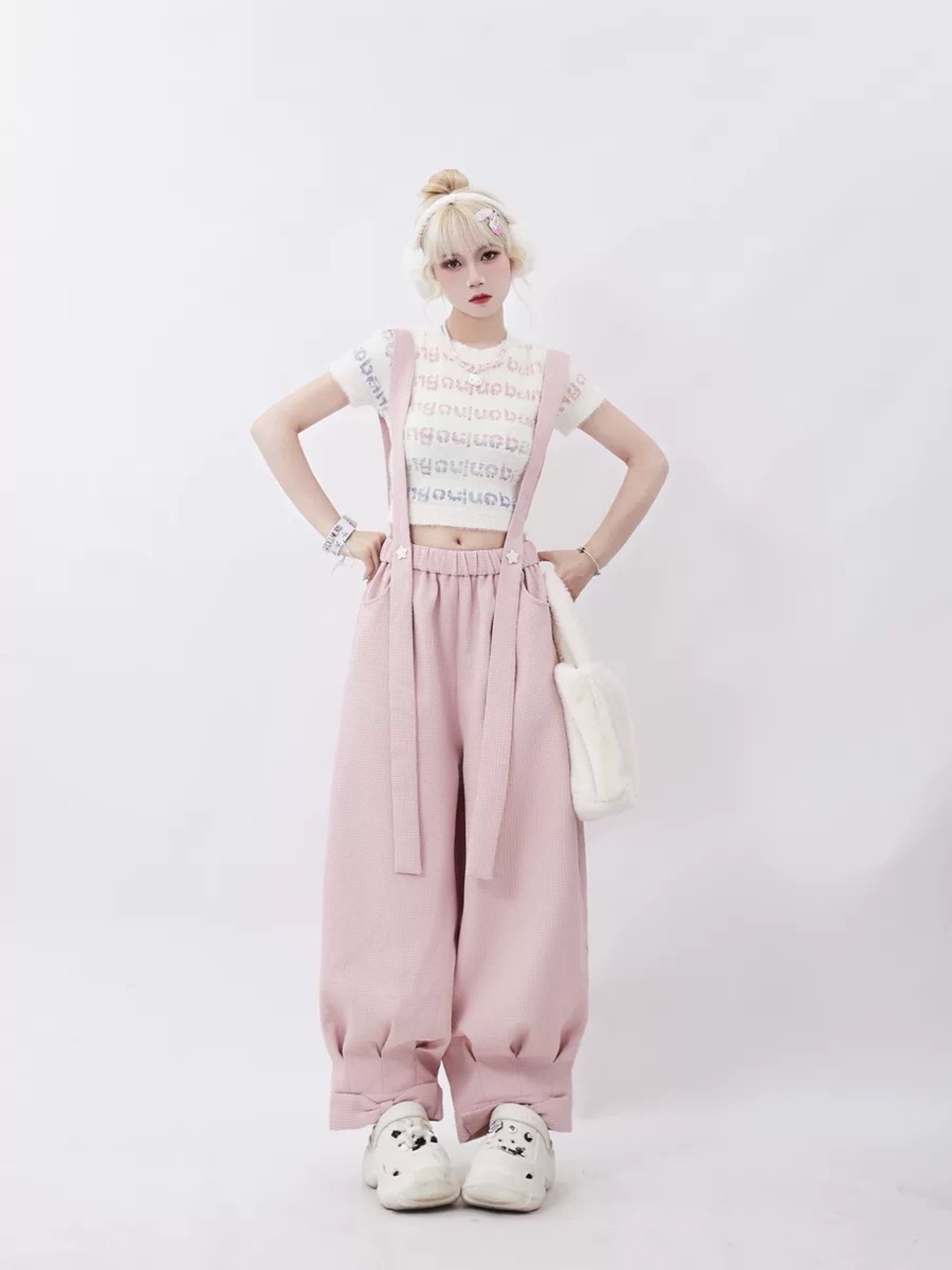 ピンク スウェット カジュアル ボトムス ズボン つなぎ ジャンパー オーバーオール