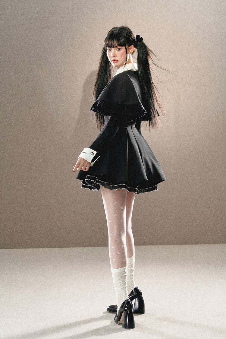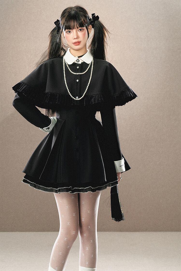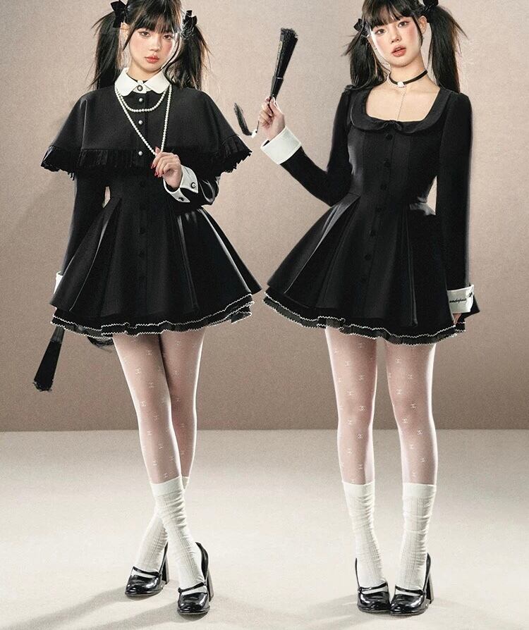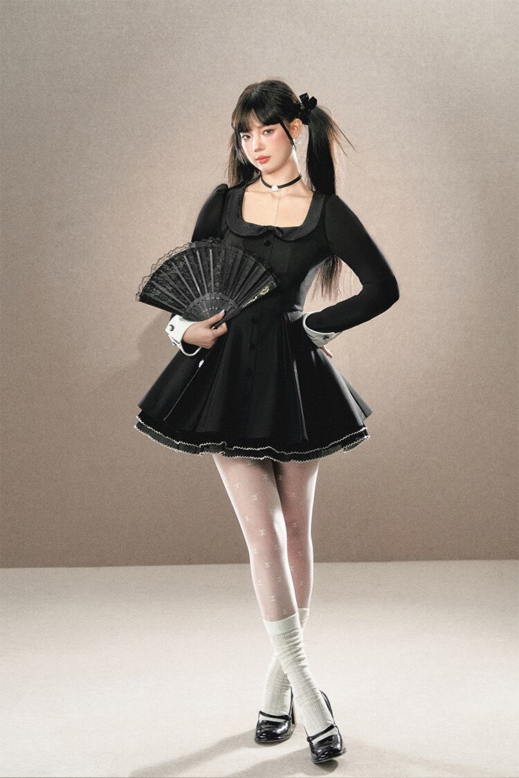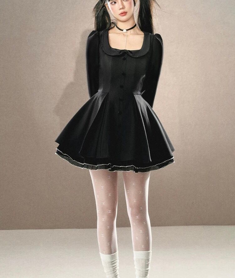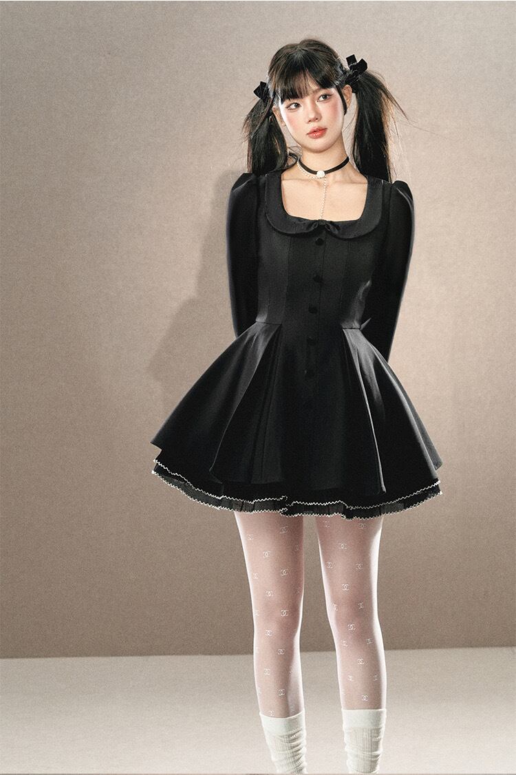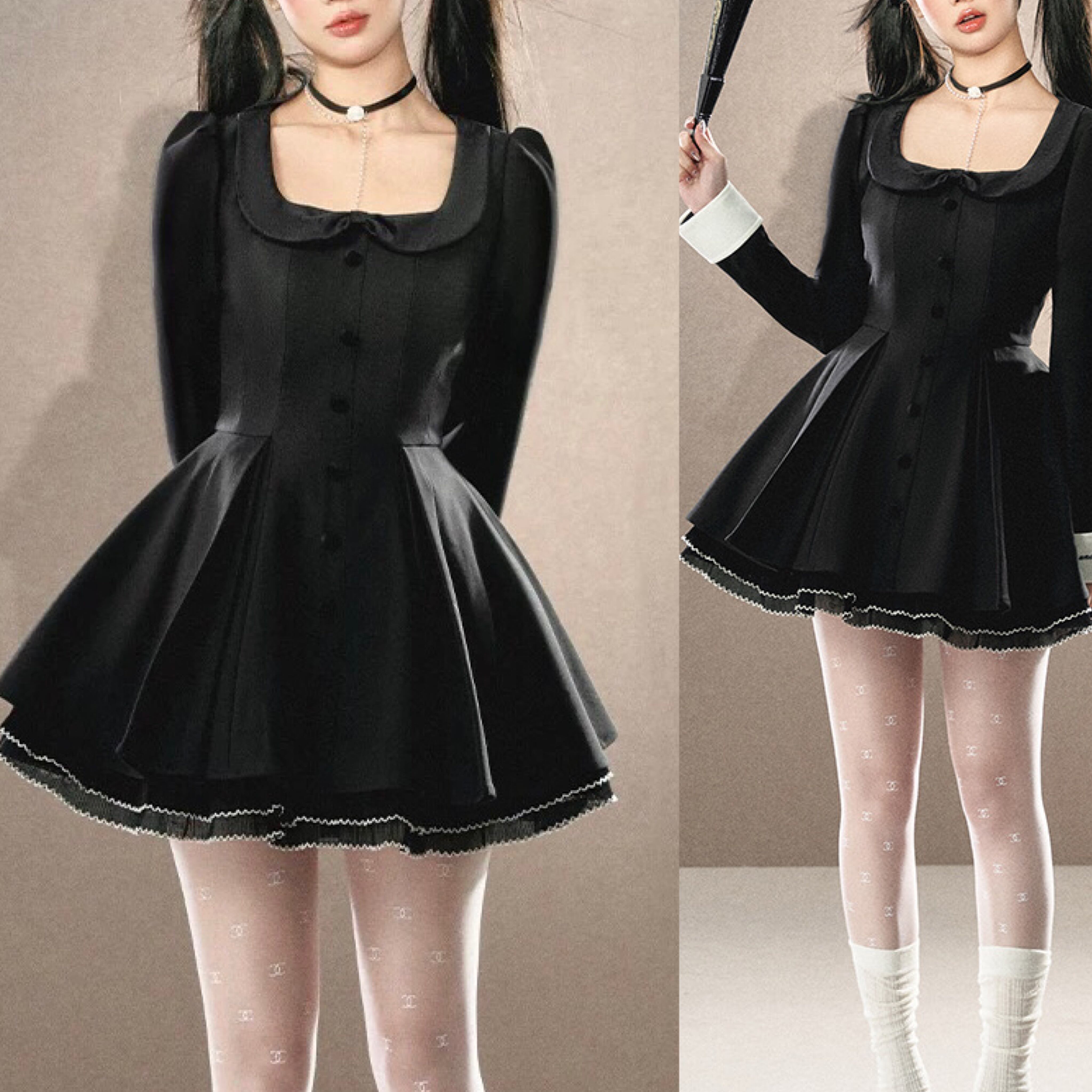 【ワンピース】お嬢様 ガーリー ワンピース 黒 ブラック ブラウス