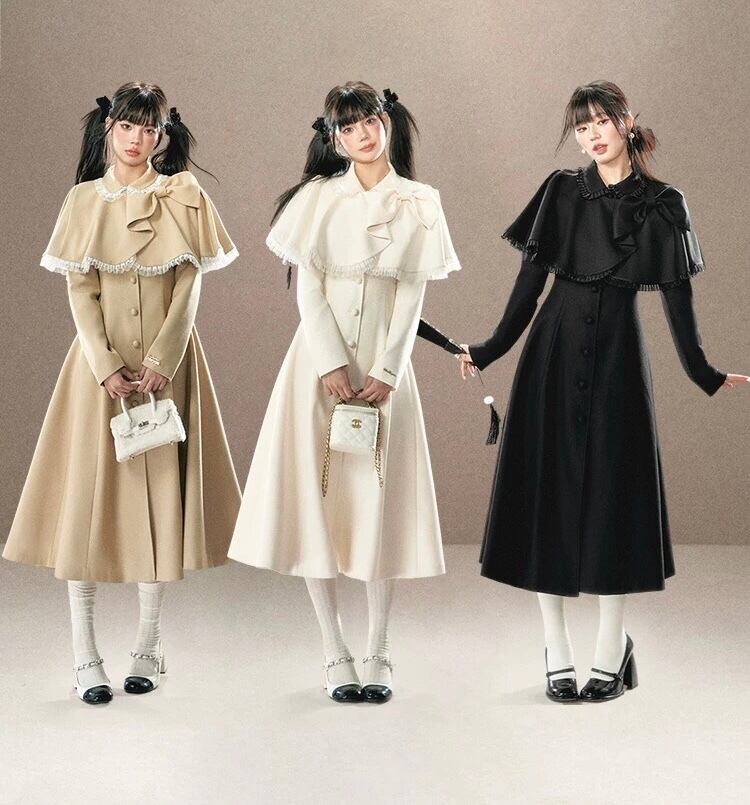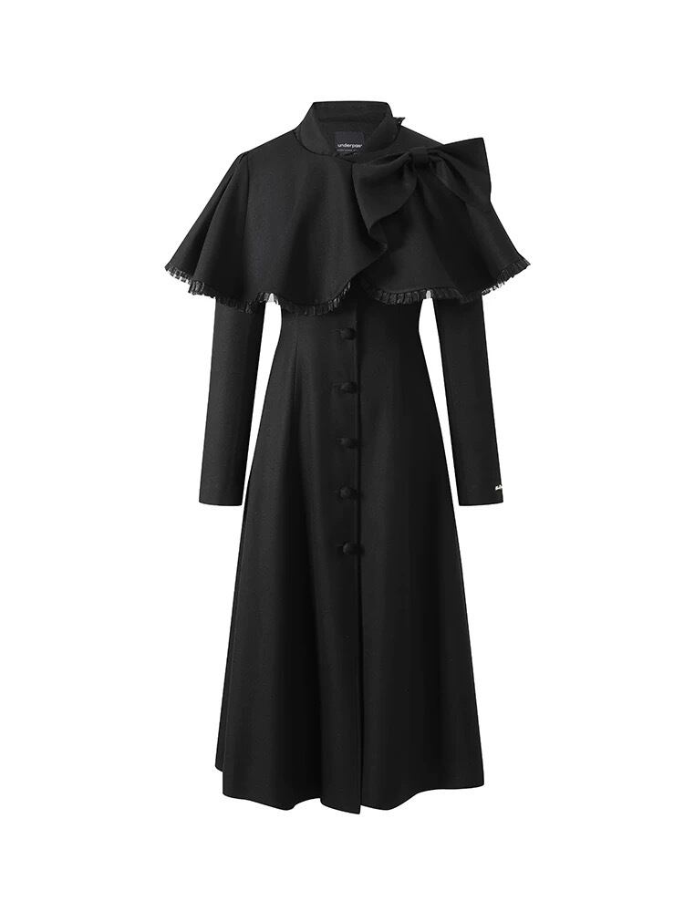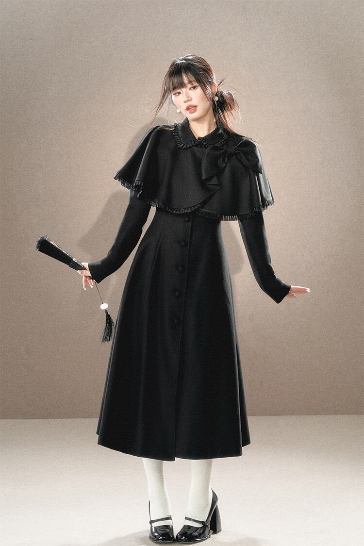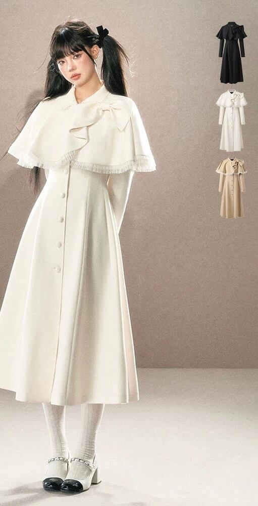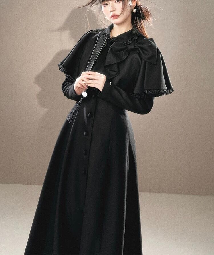 アウター ベージュ 黒 リボン ガーリー お嬢様 ワンピース マント リボン ワンピース コート