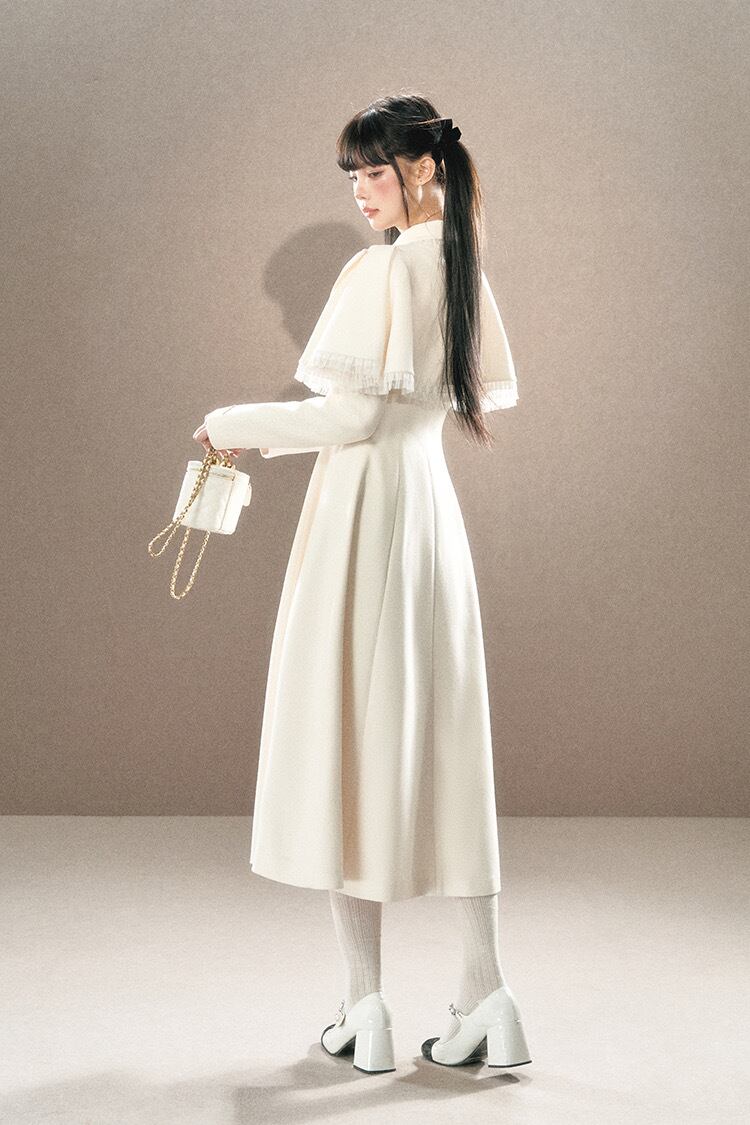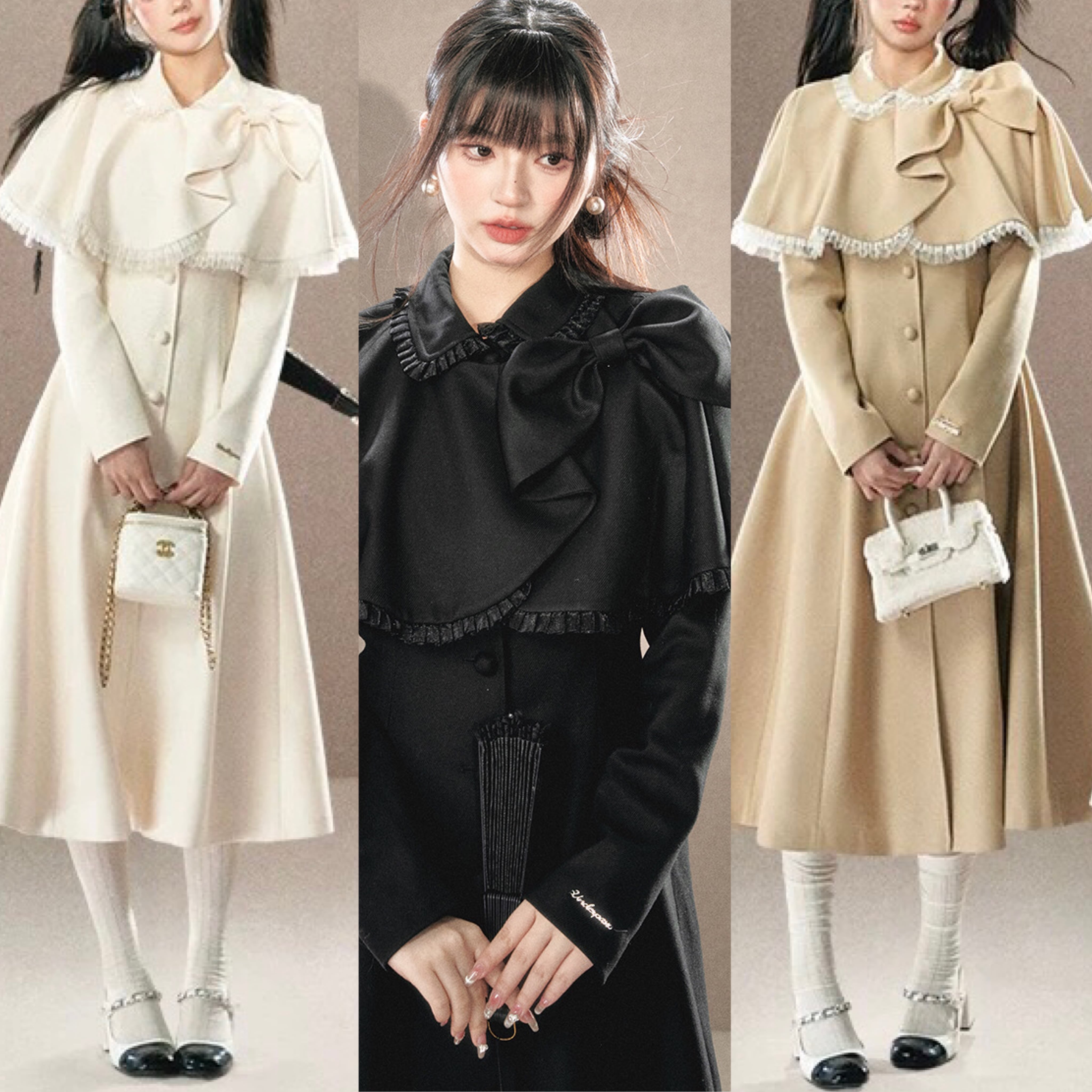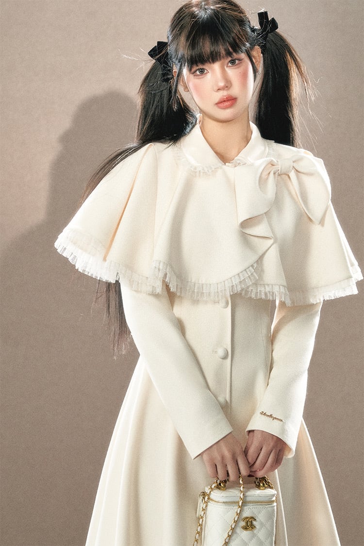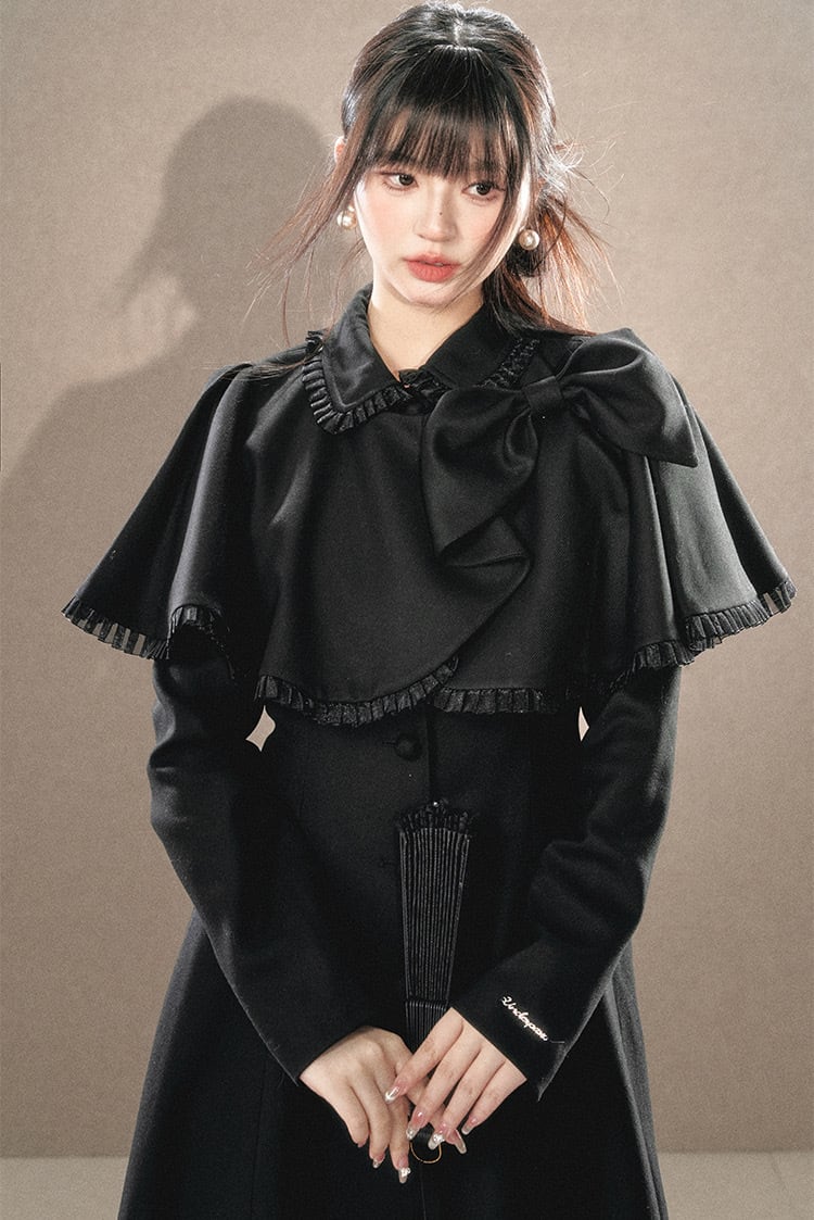 アウター ベージュ 黒 リボン ガーリー お嬢様 ワンピース マント リボン ワンピース コート