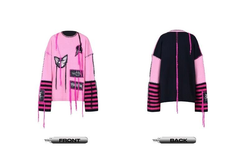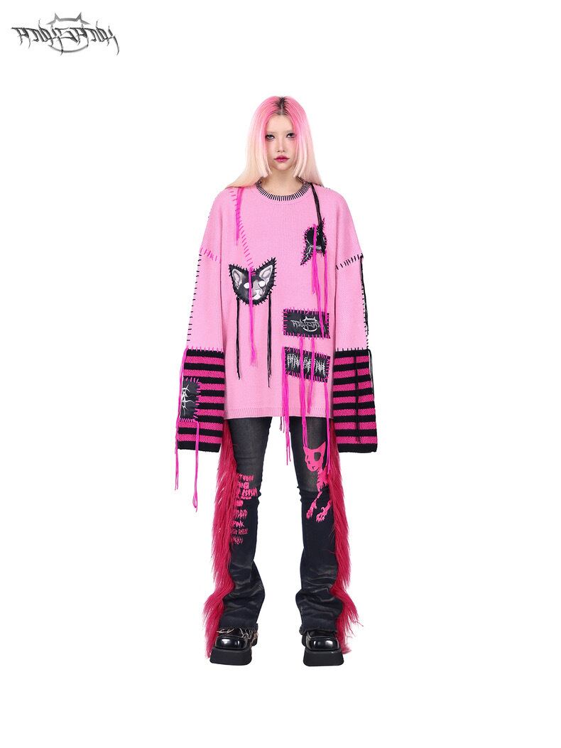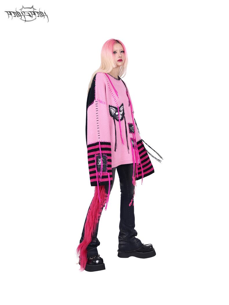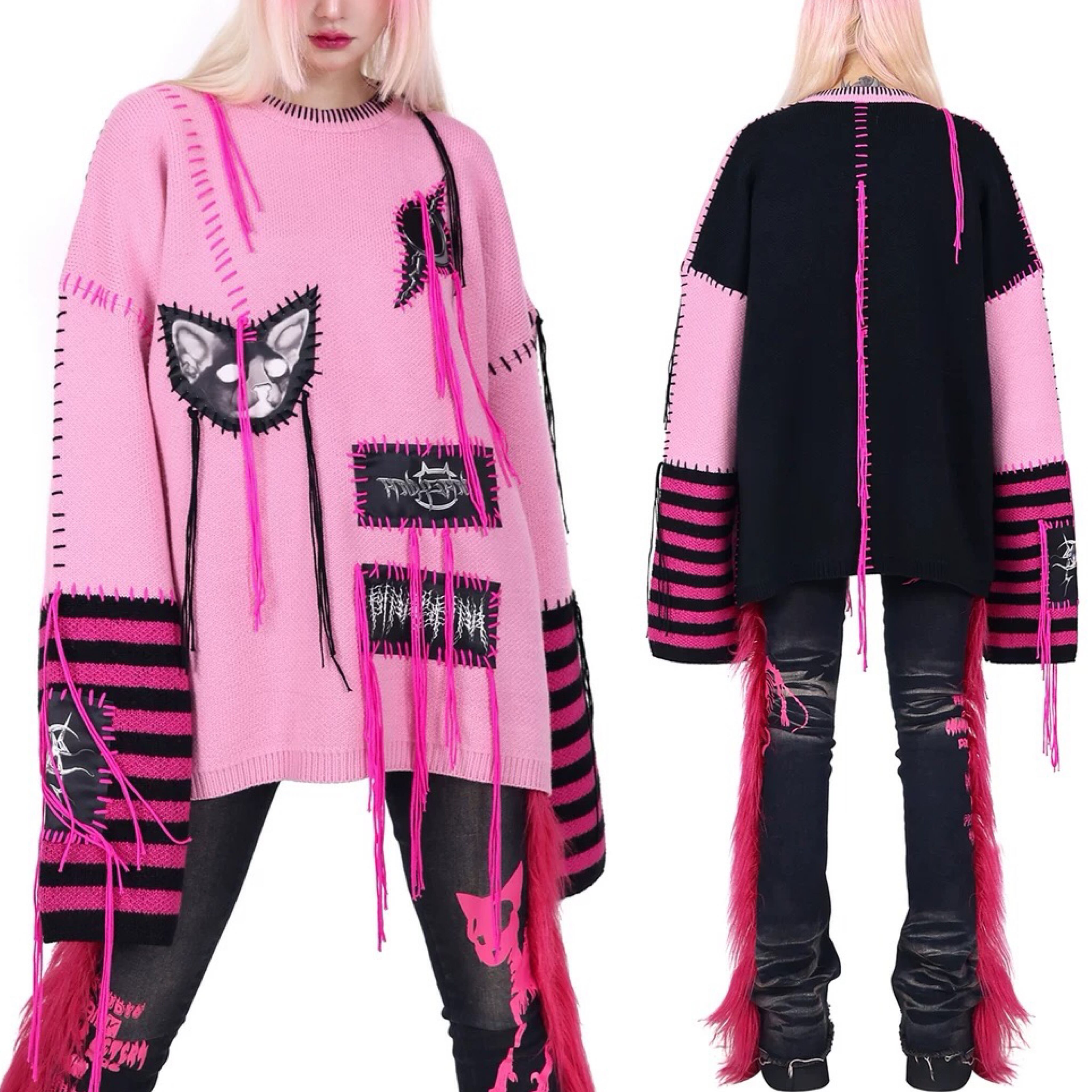 ピンク スウェット トップス チェック アウター セーター ねこ